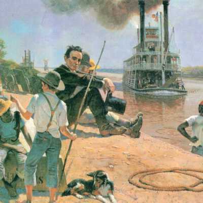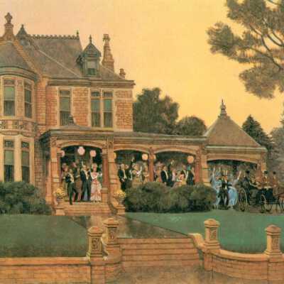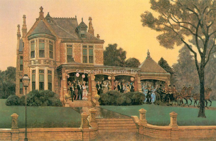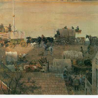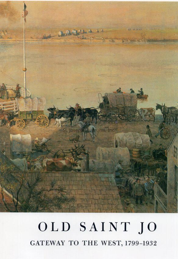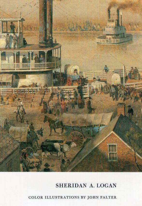 Old Saint Jo Illustrations (8) by John P. Falter, Commissioned for book by Sheridan Logan, 1979. color. 8 prints of illustrations created by artist Falter for inclusion in a history book about St. Joseph written by Sheridan Logan. They depict scenes in and around St. Joseph from 1850-1887 as below.