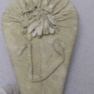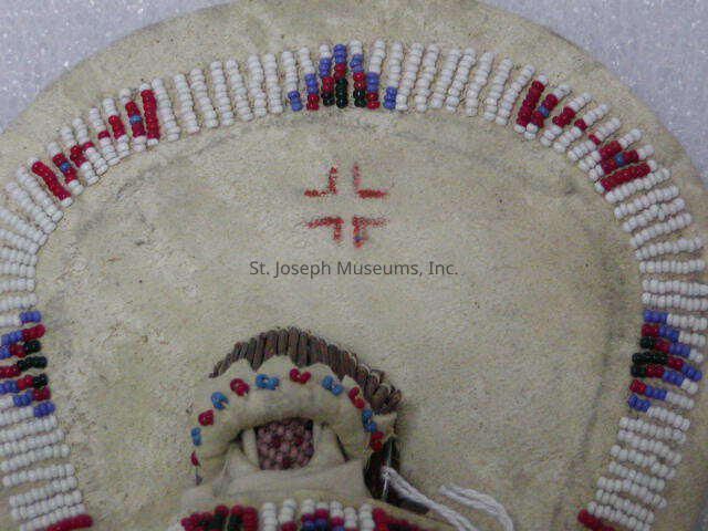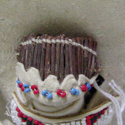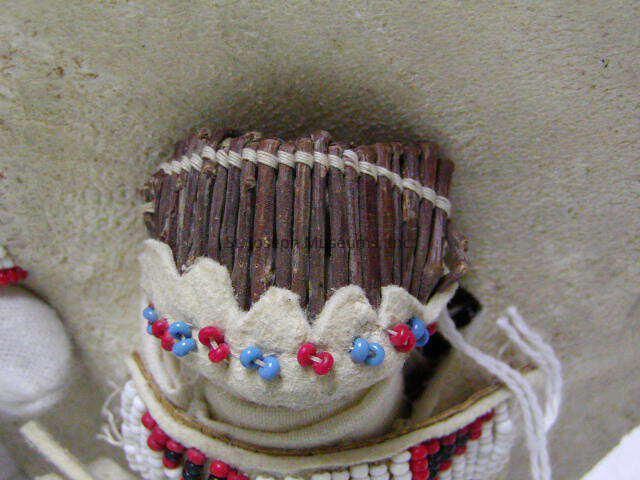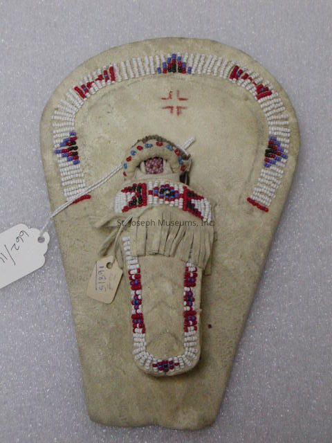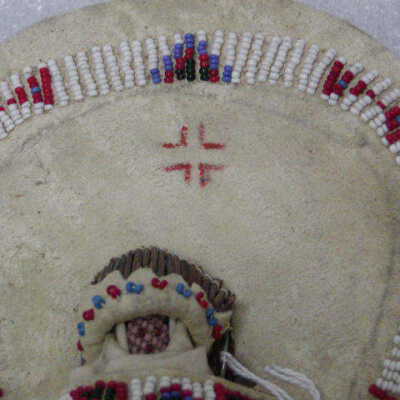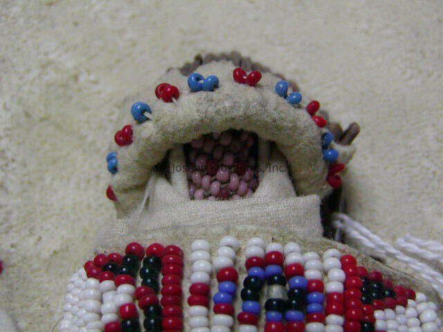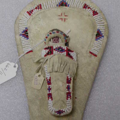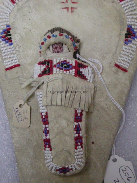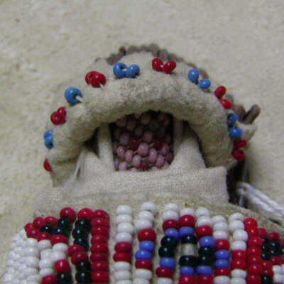 PAPOOSE/BEADED/WHITE BUCKSKIN WITH RED, WHITE, AND BLUE BEADS