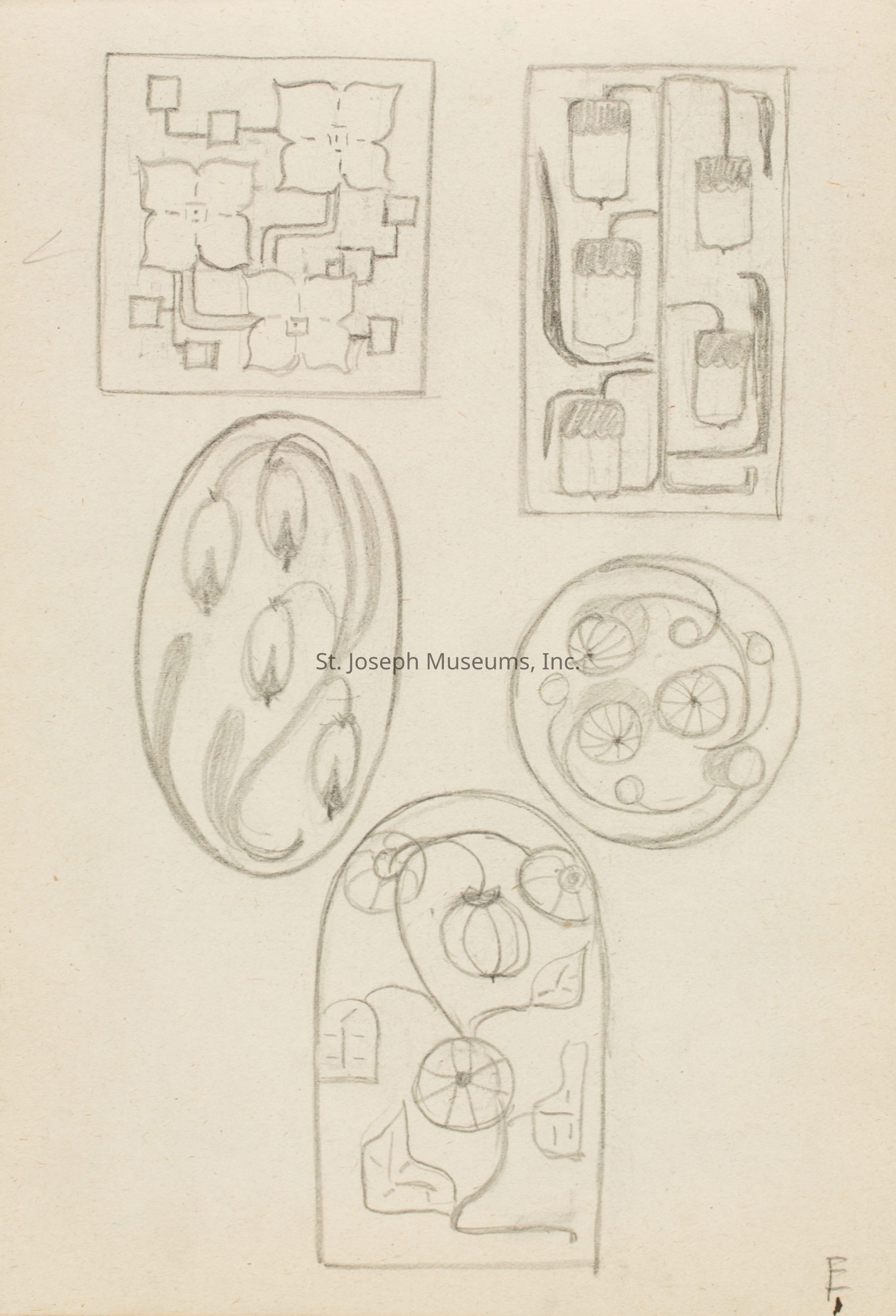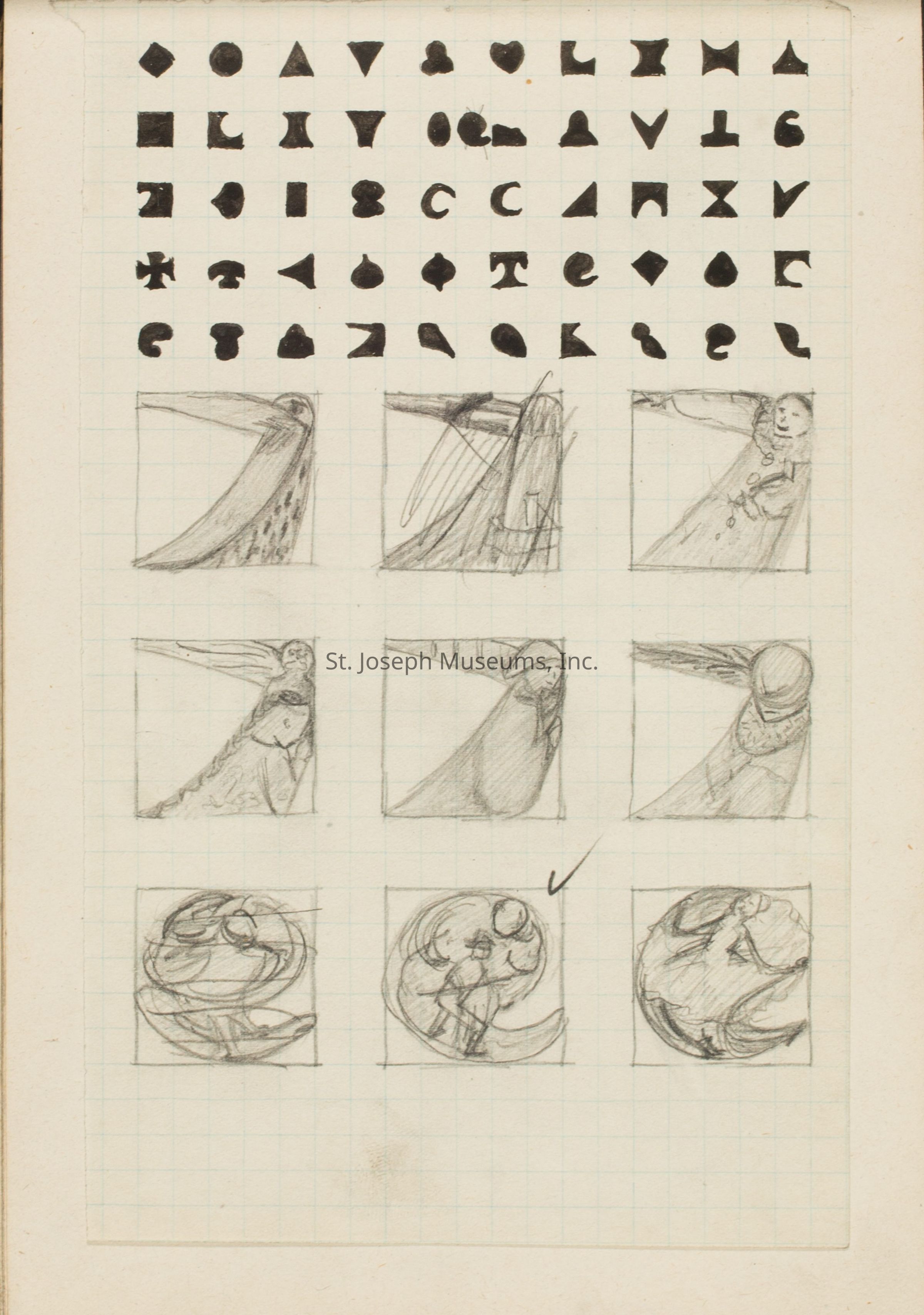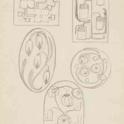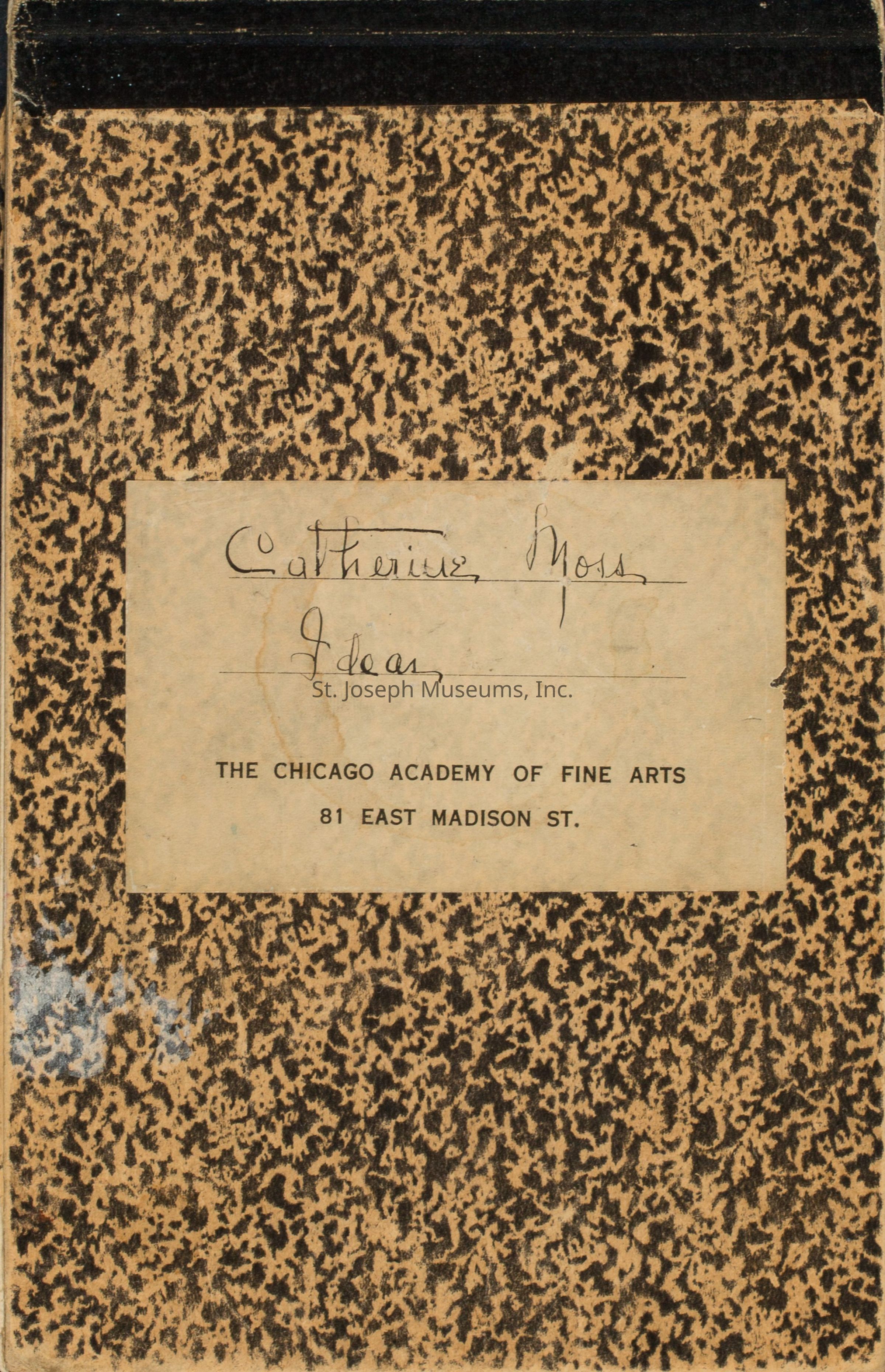 A notebook with designs by Catherine C. Moss during her time at the Chicago Academy of Fine Arts.