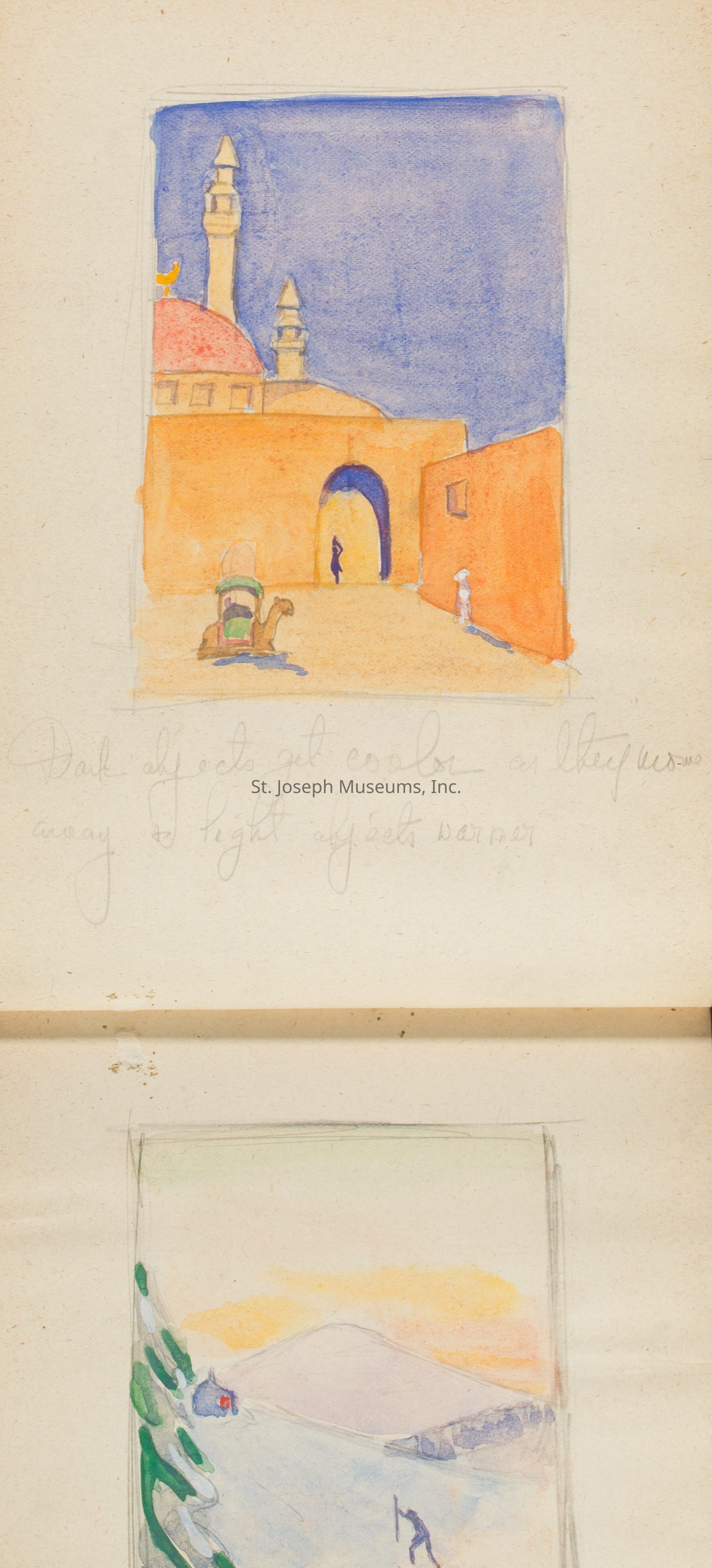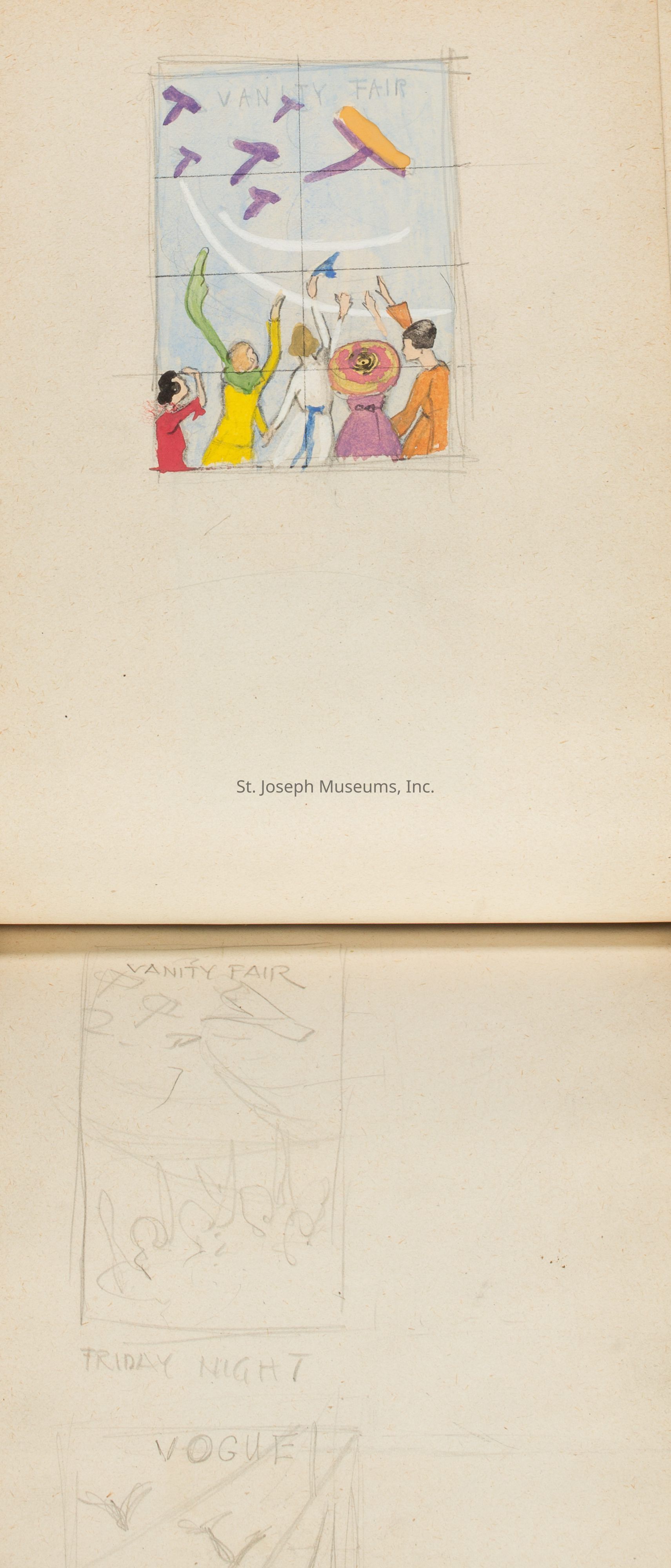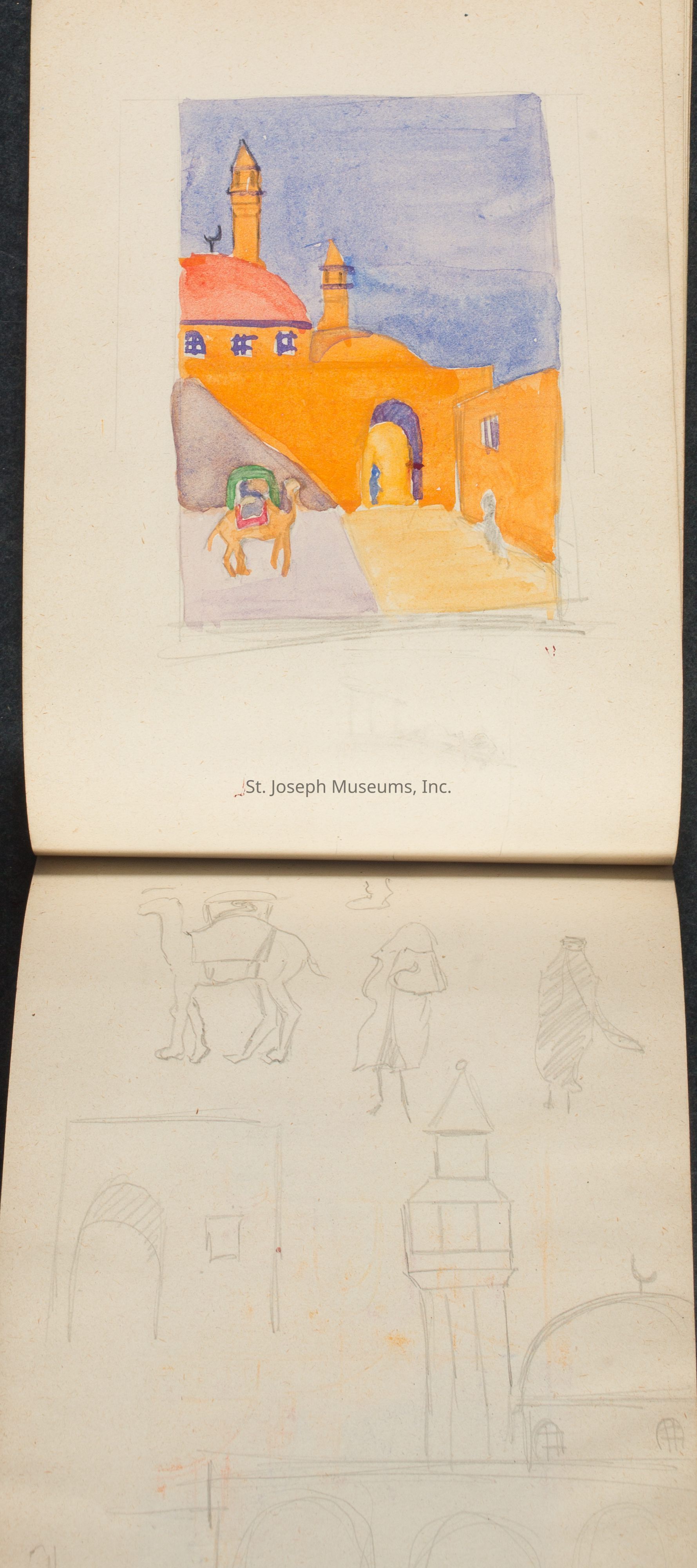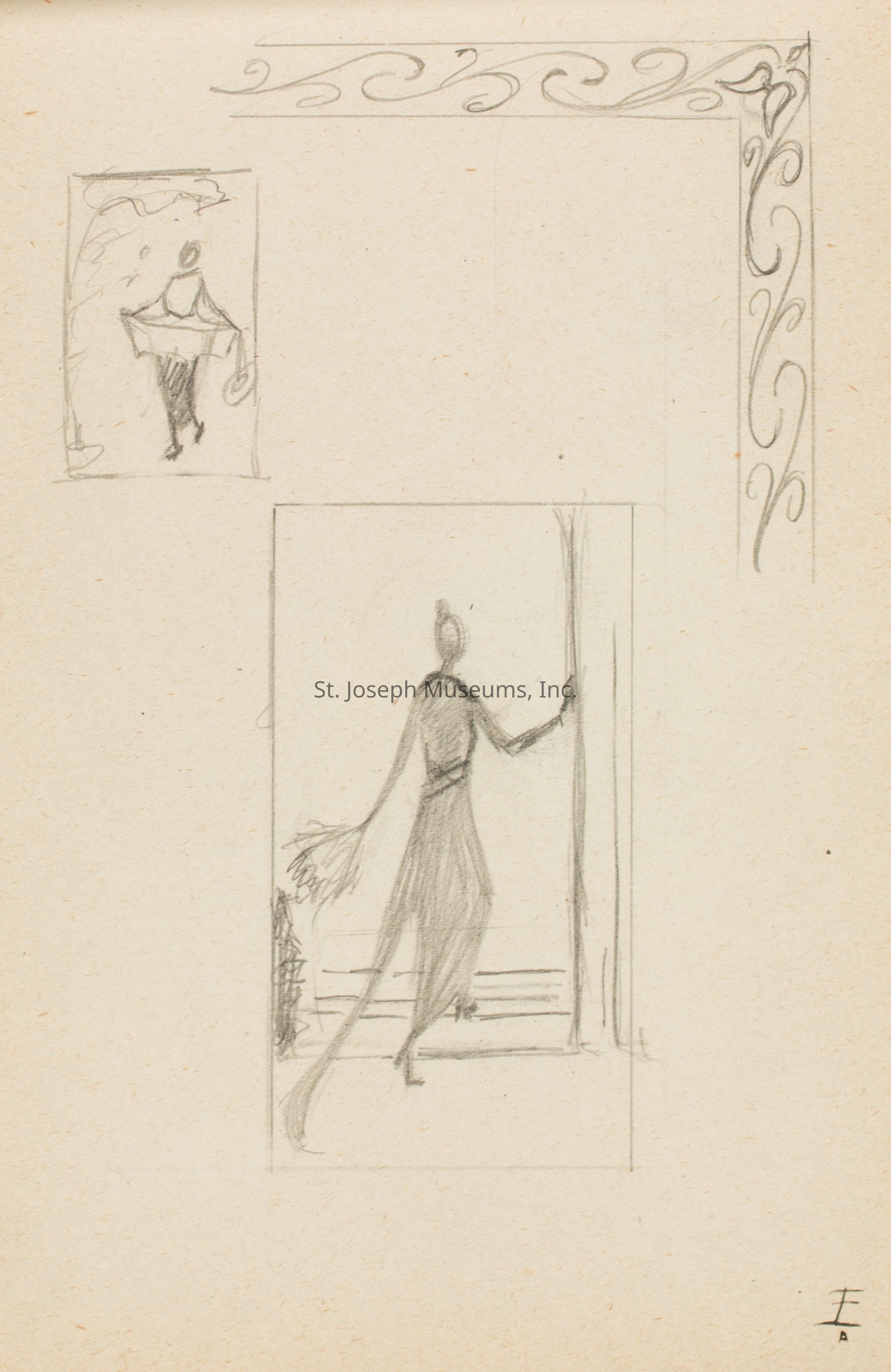 A notebook with designs by Catherine C. Moss during her time at the Chicago Academy of Fine Arts.