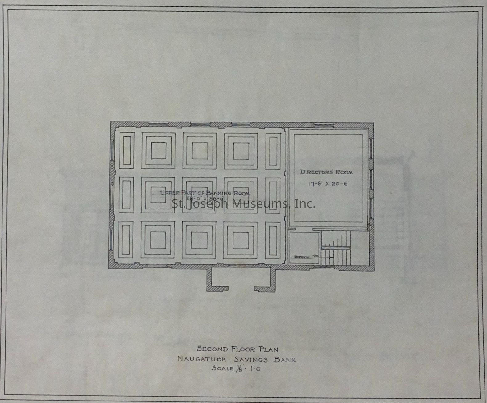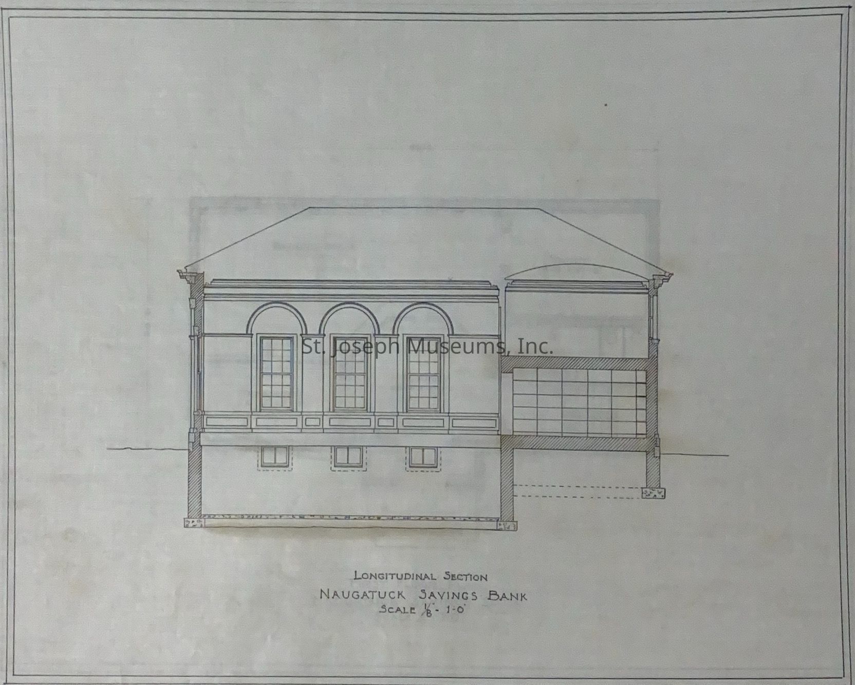 Nantucket Savings Bank, Nantucket, Connecticut, Rendering, undated. Ink, and section set of drawings on tissue