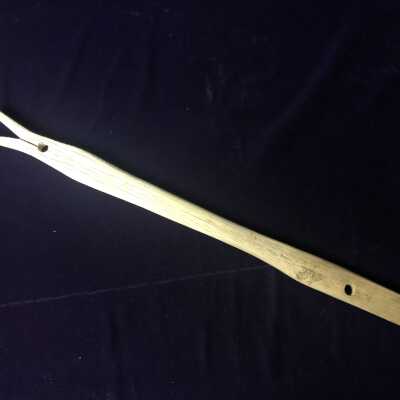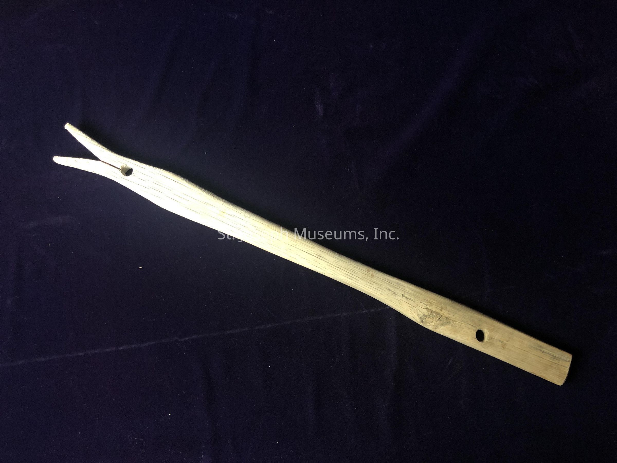 Stick/Wood/Light with white discoloration at the tip/holes on either side/the tip is split like a clothes pin for grabbing laundry/22.5"x1.75"x0.75"