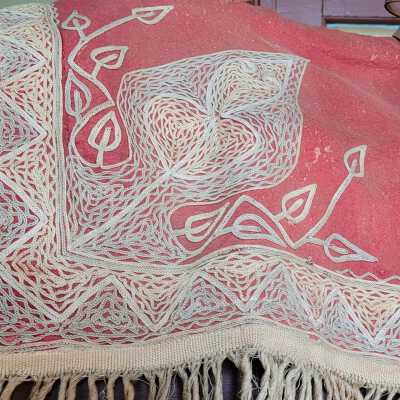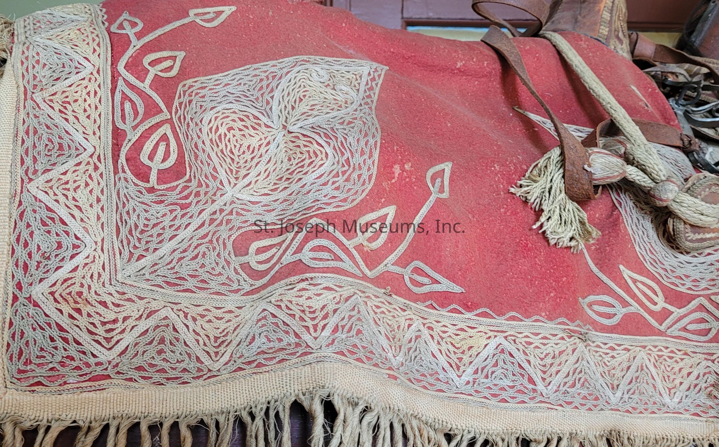 BLANKET FOR # 61.5.47 RED WOOL / EMBROIDERY / FRINGE BLANKET FOUND ON SADDLE