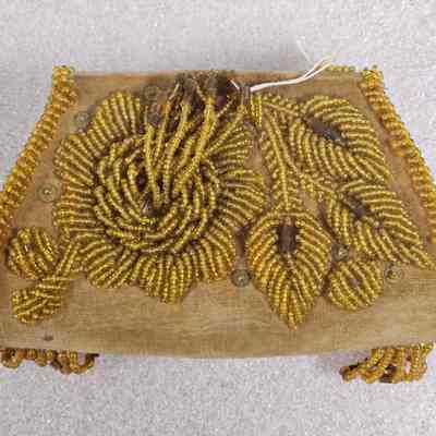 BEADWORK/FLORAL DES/LINING RED/BROWN FELT