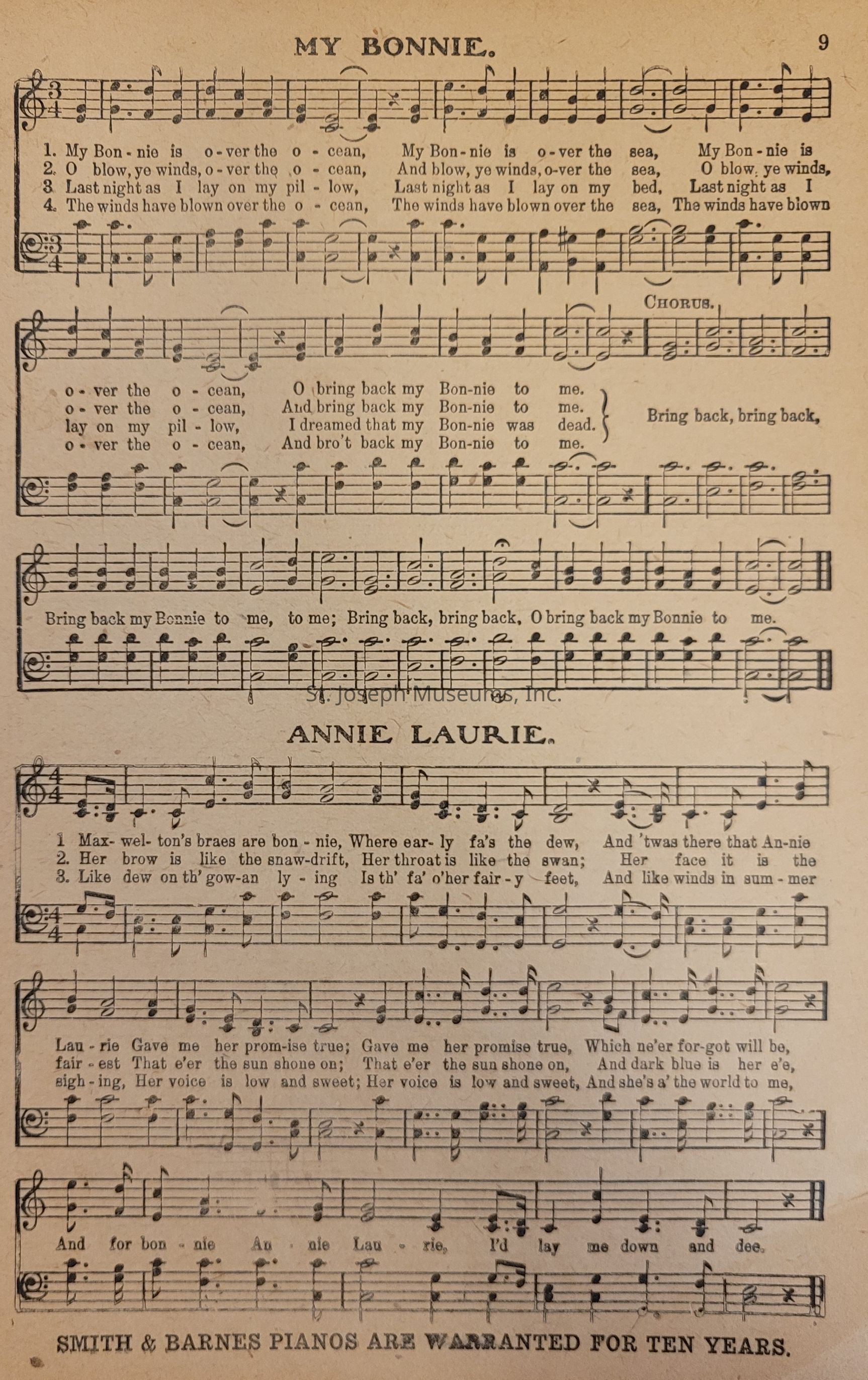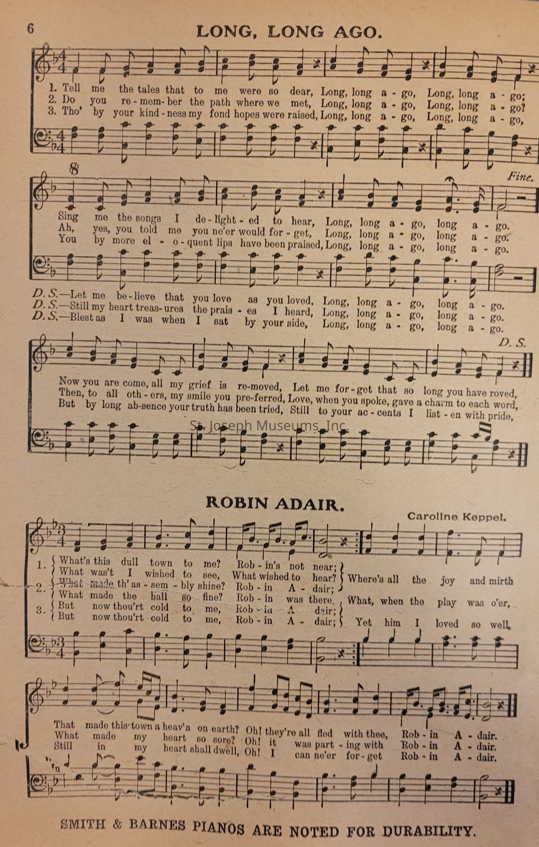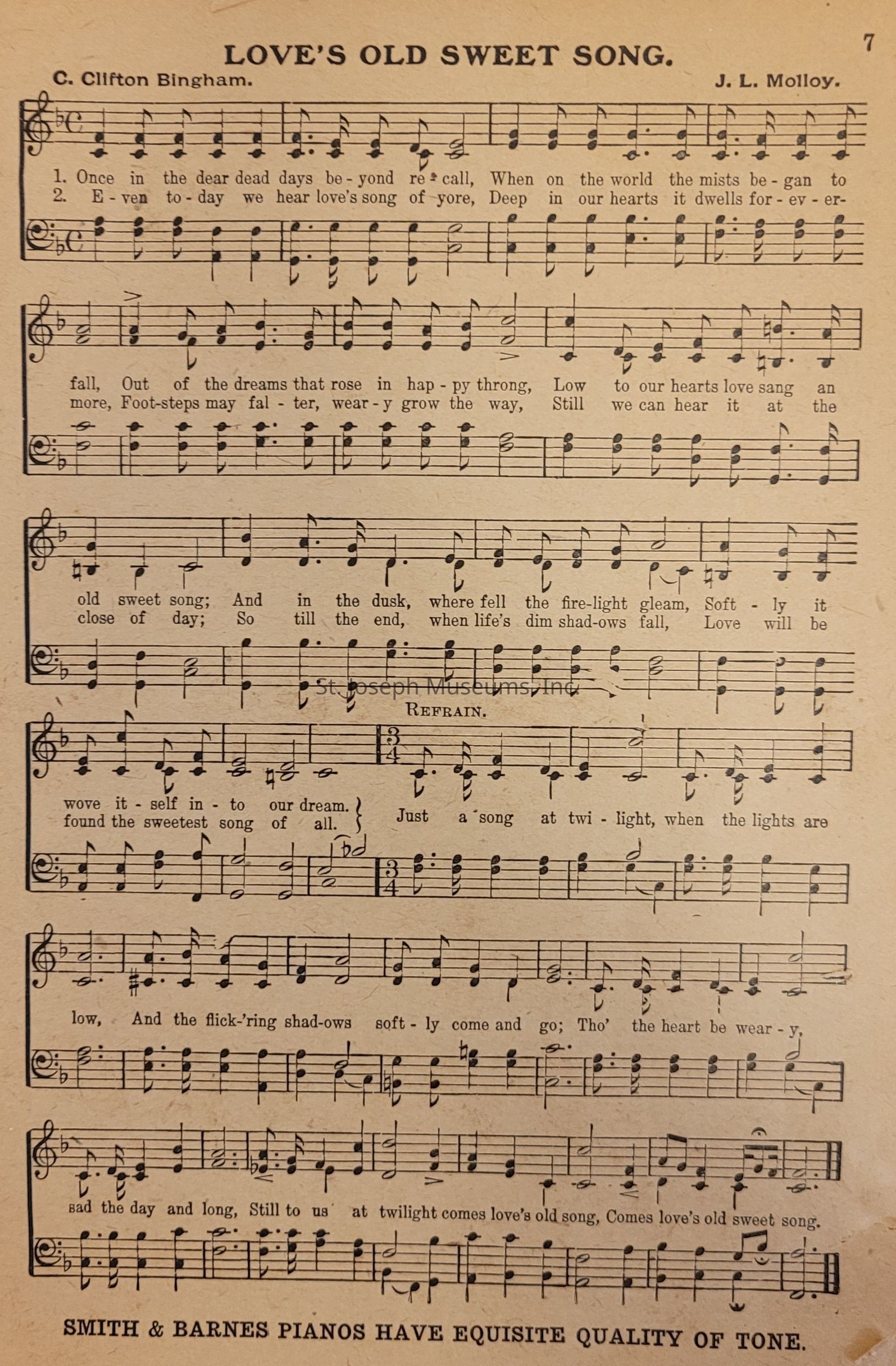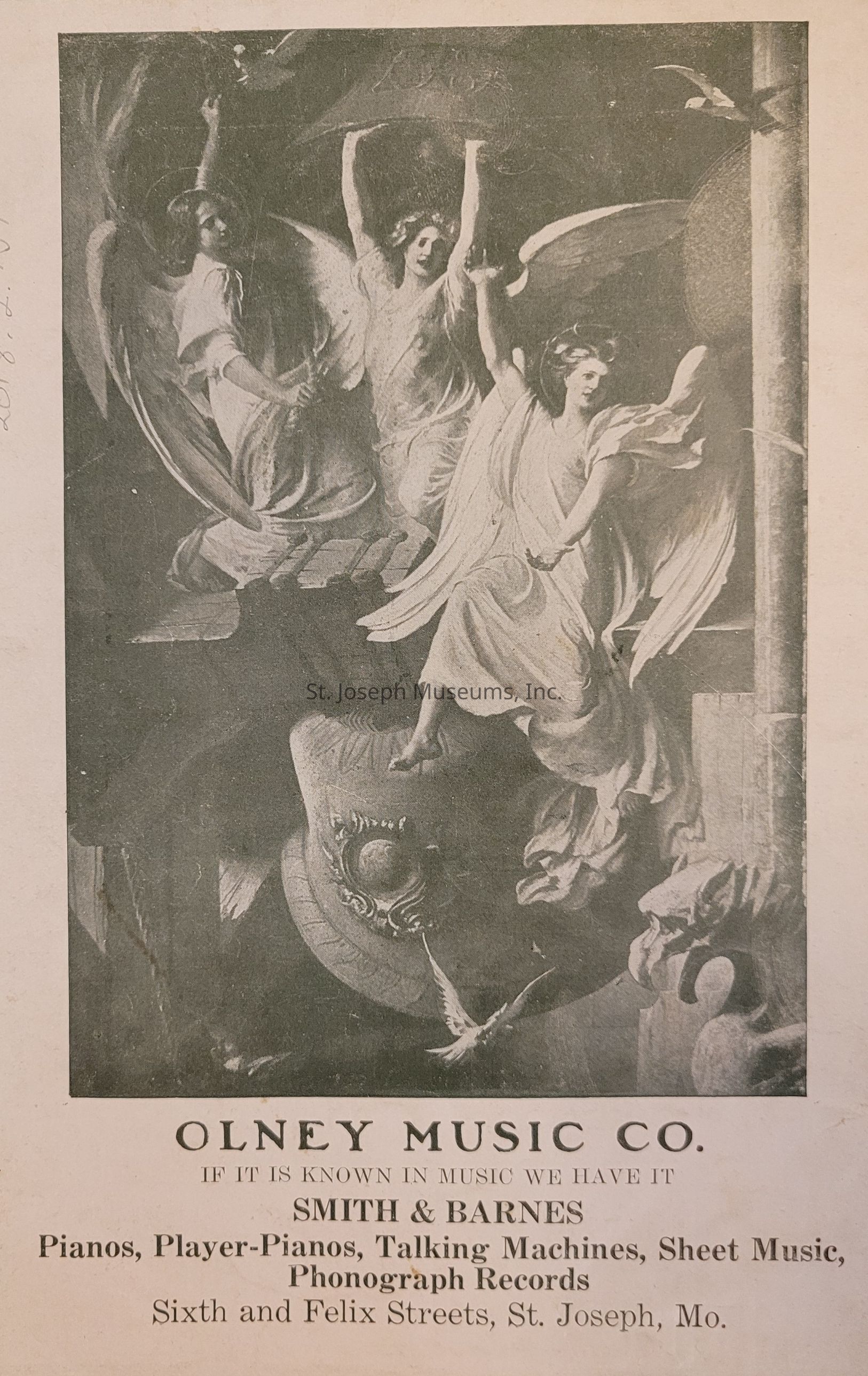 Olney Music/Smith & Barnes Piano Co, 6th & Felix, Songbook, 1916. "Star Collection of Old Favorite Songs", words & music. Published by Smith & Barnes Piano. Co., Chicago. Distributed by "Olney Music Co. If it is known in music we have it. Smith & Barnes, Pianos, Player-Pianos, Talking Machines, Sheet Music, Phonograph Records, Sixth and Felix Streets, St. Joseph, Mo."Collection