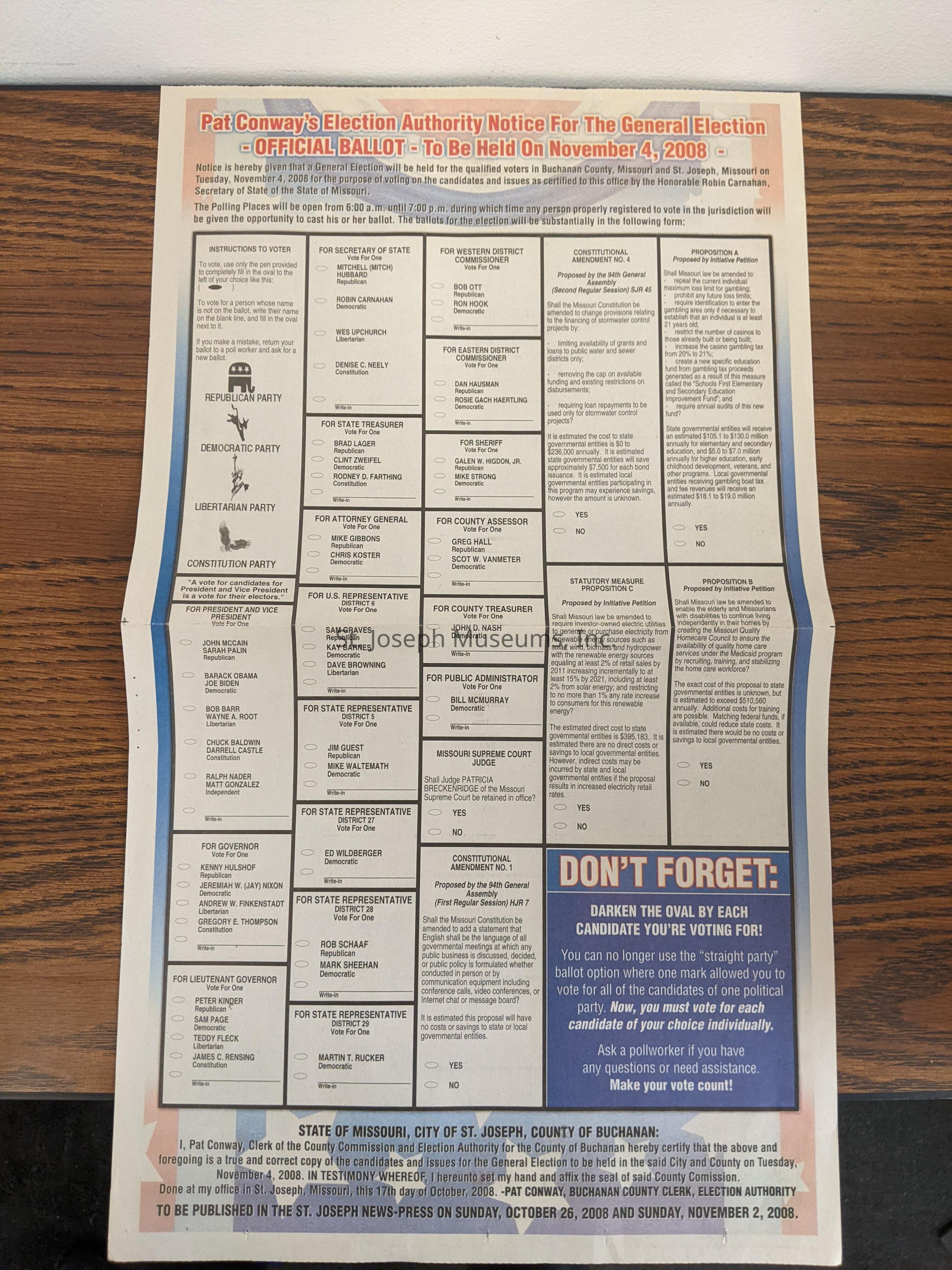 Official ballot for the 2008 election with Obama's name on it.Context