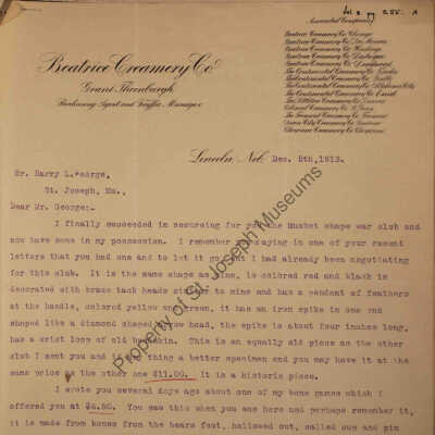 BEATRICE CREAMERY CO,; LINCOLN, NEB HLG LEDGER VOL.II, p. 255A, BOTTOM OF PAGE LETTER DATE12/5/1913