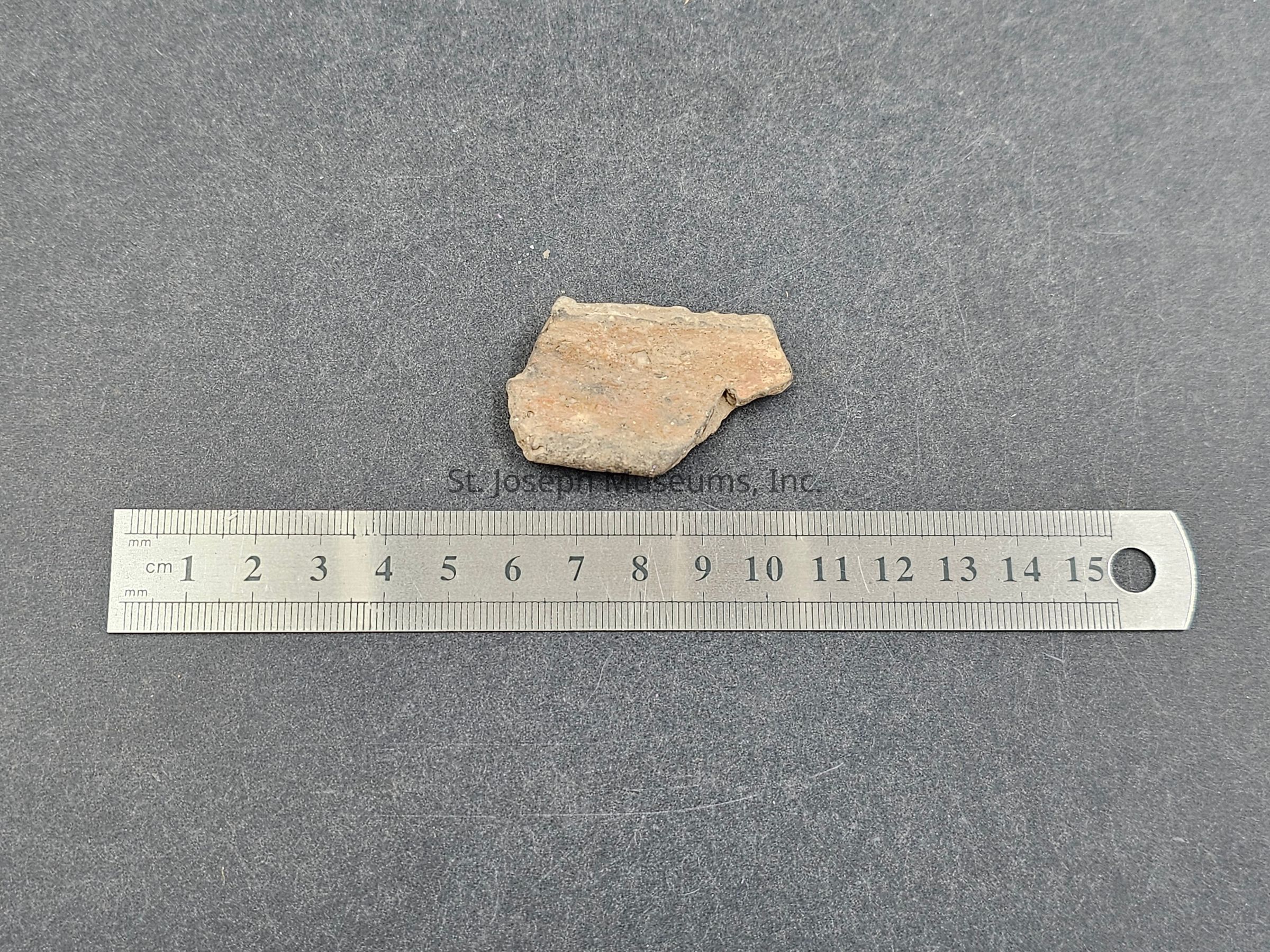 Grey color/orangish red slip applied to one side/plain