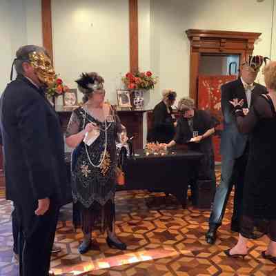 Guest enjoying a snack before the murder mystery starts.