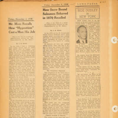 How Snow Bound Salesmen Behaved in 1870 Recalled (December 9, 1938)Photograph Details