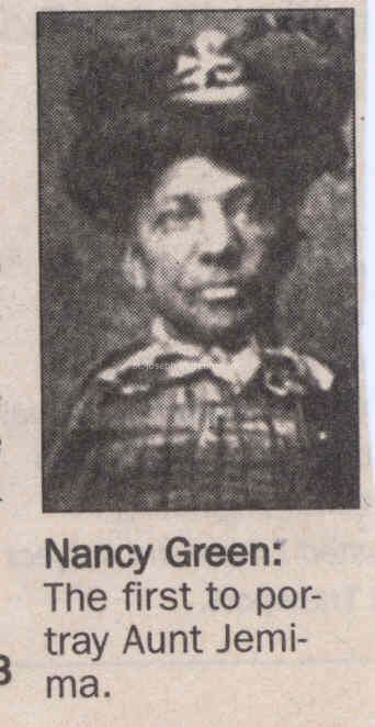 Aunt Jemima, News photo of Orginal Woman to Portray: Nancy Green. Digital image of news photo. Caption reads: Nancy Green: The first to portray Aunt Jemima.
