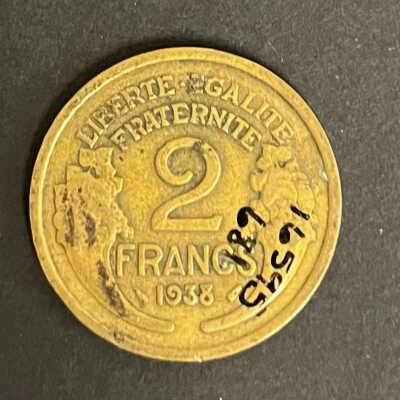 1938 French 2 c franc, coin/token