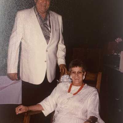 Hildreth Hultine and her husband at her retirement party, 1989.