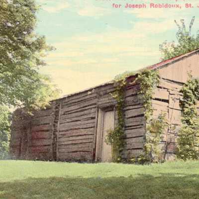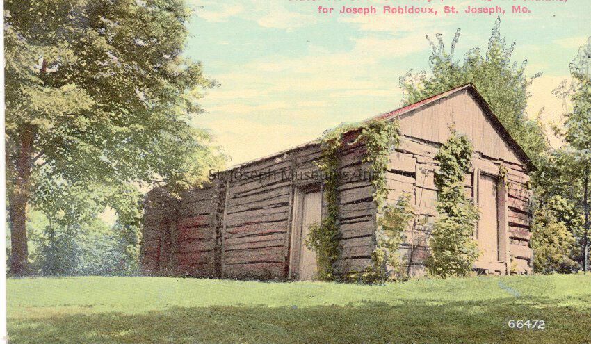 Legend on top: "Oldest House in St. Joseph built by the Indians for Joseph Robidoux, St. Joseph, MO."
