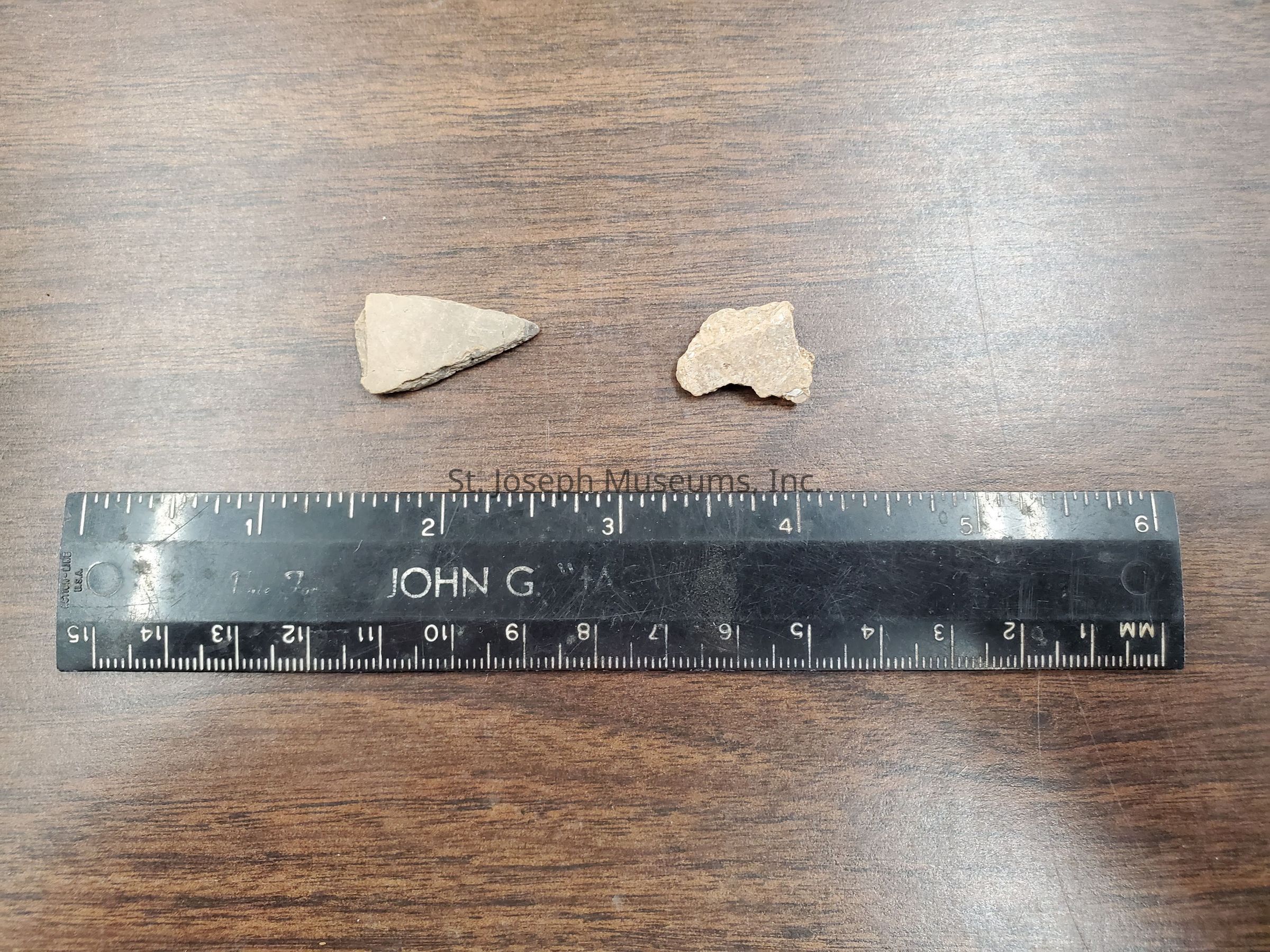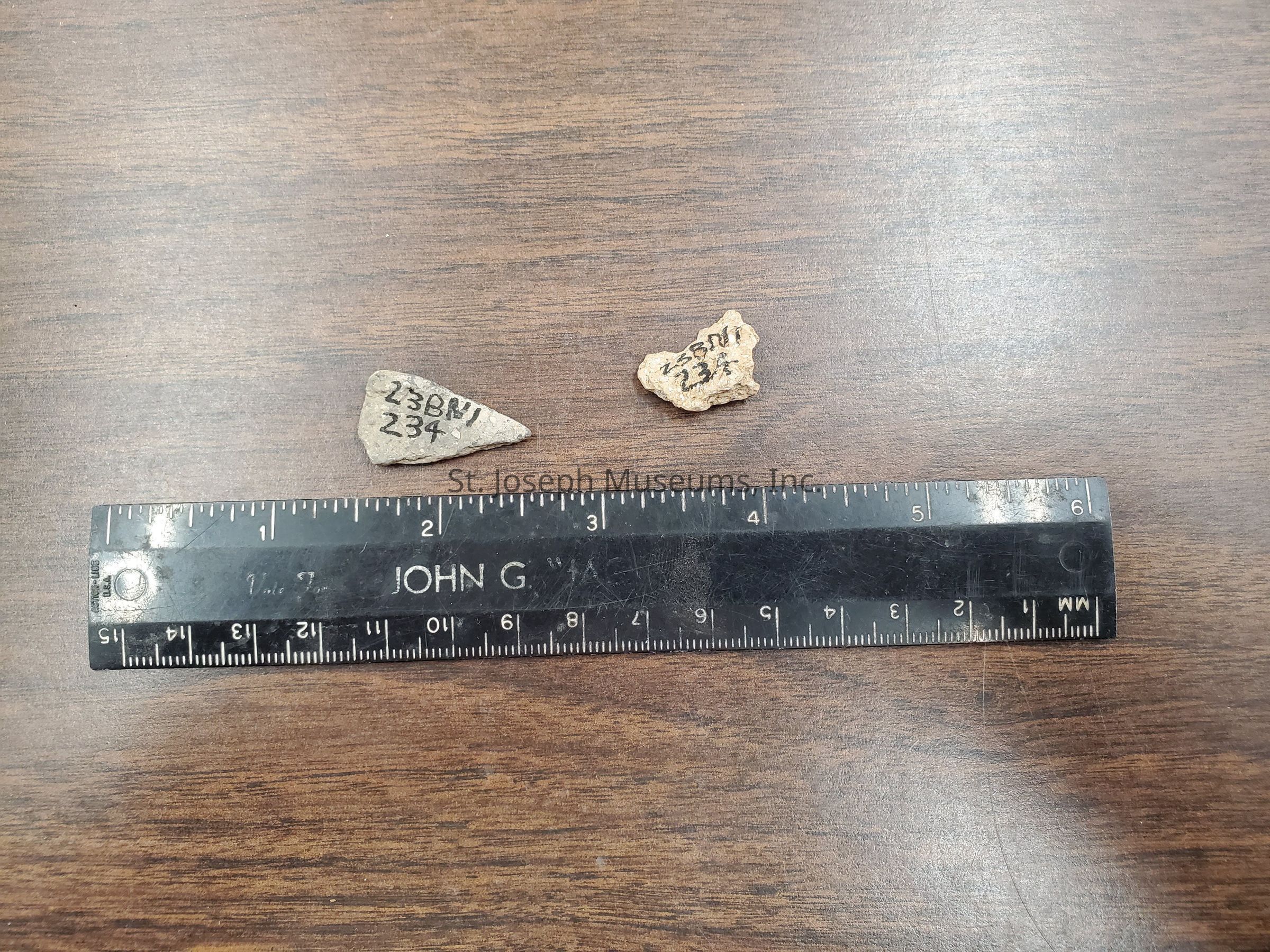 Pottery sherds Size <1/2" Bag reads: 23BN1 B Level 1 <1/2 Two pottery sherds, undecorated body