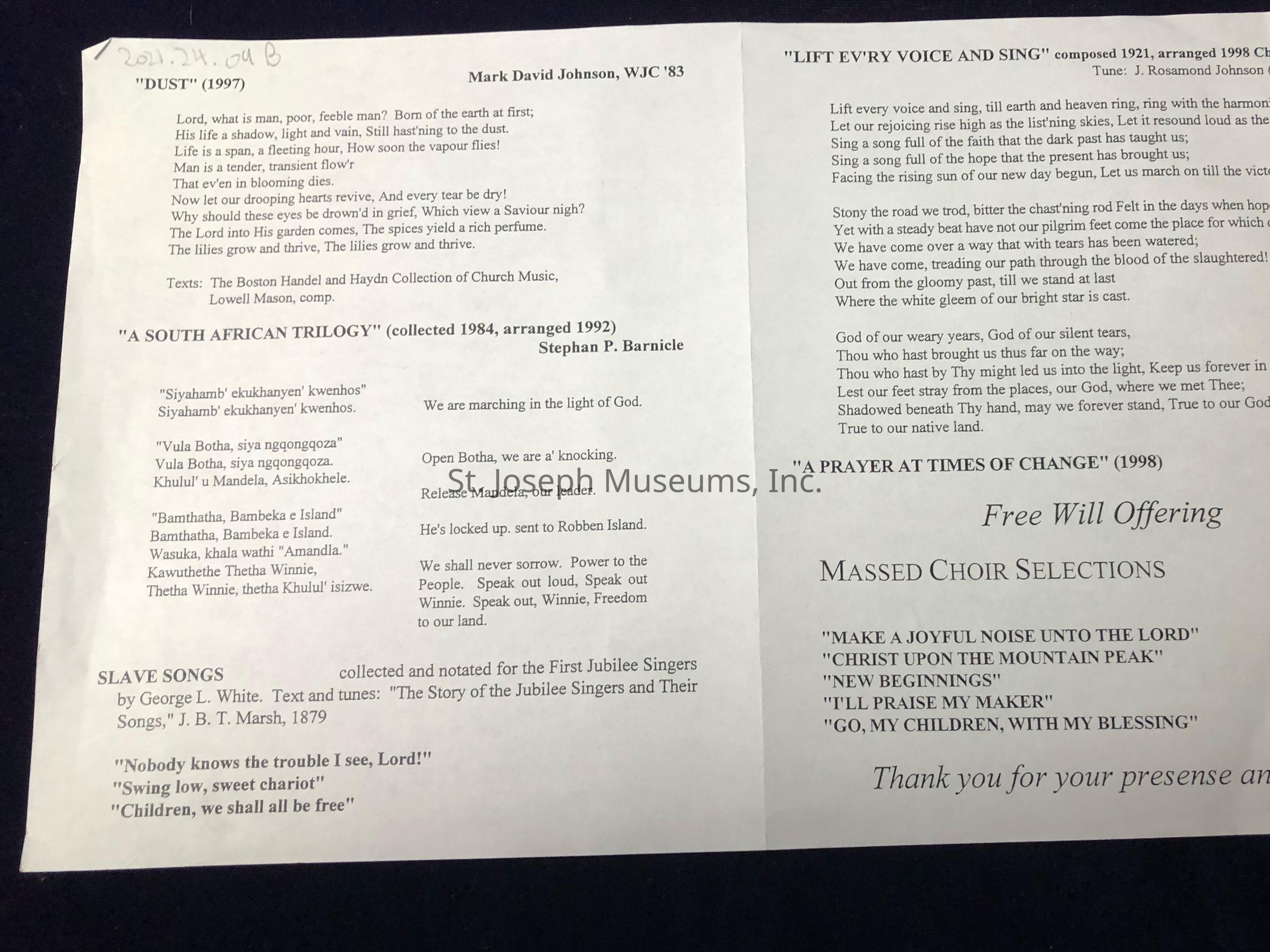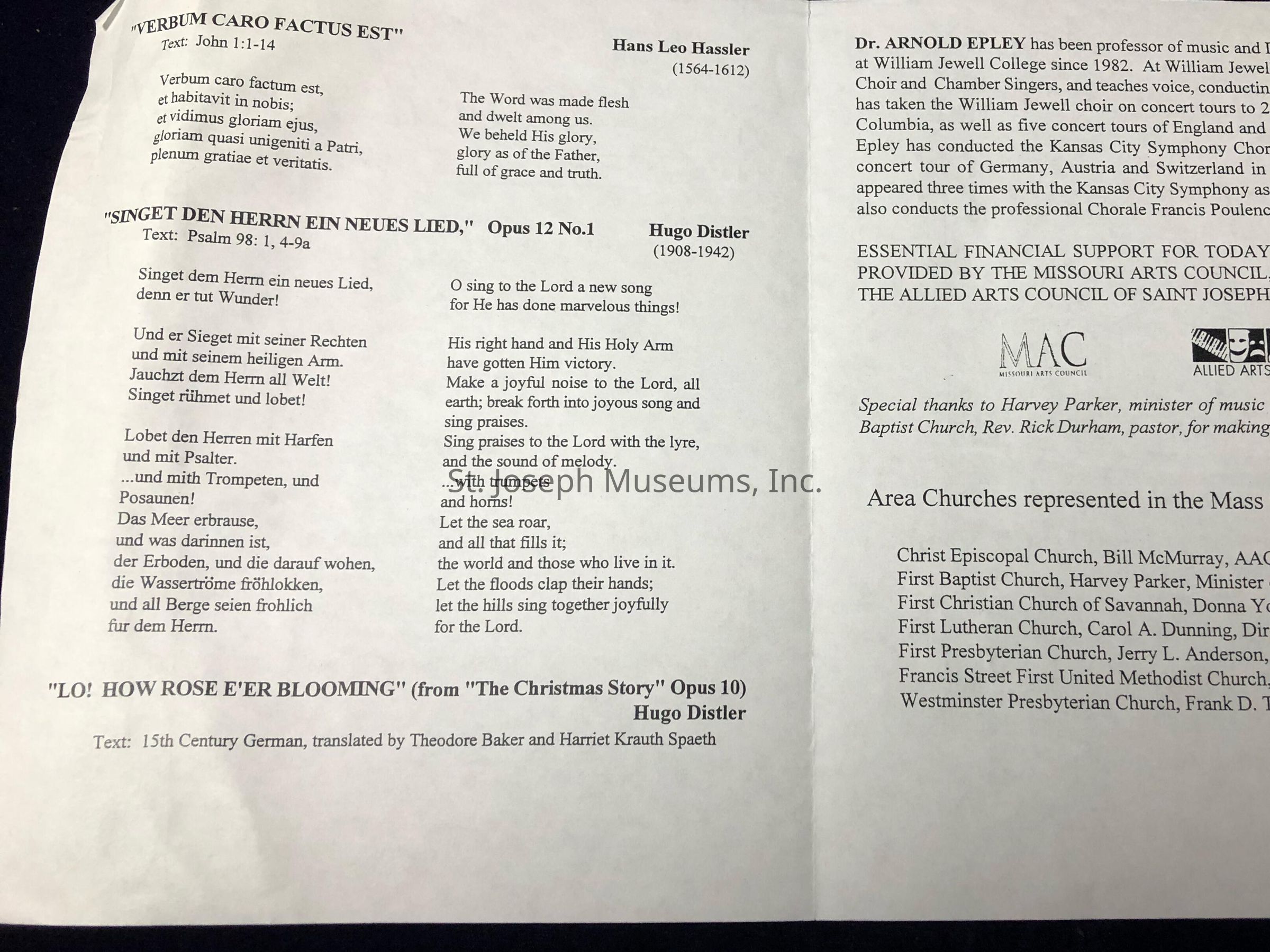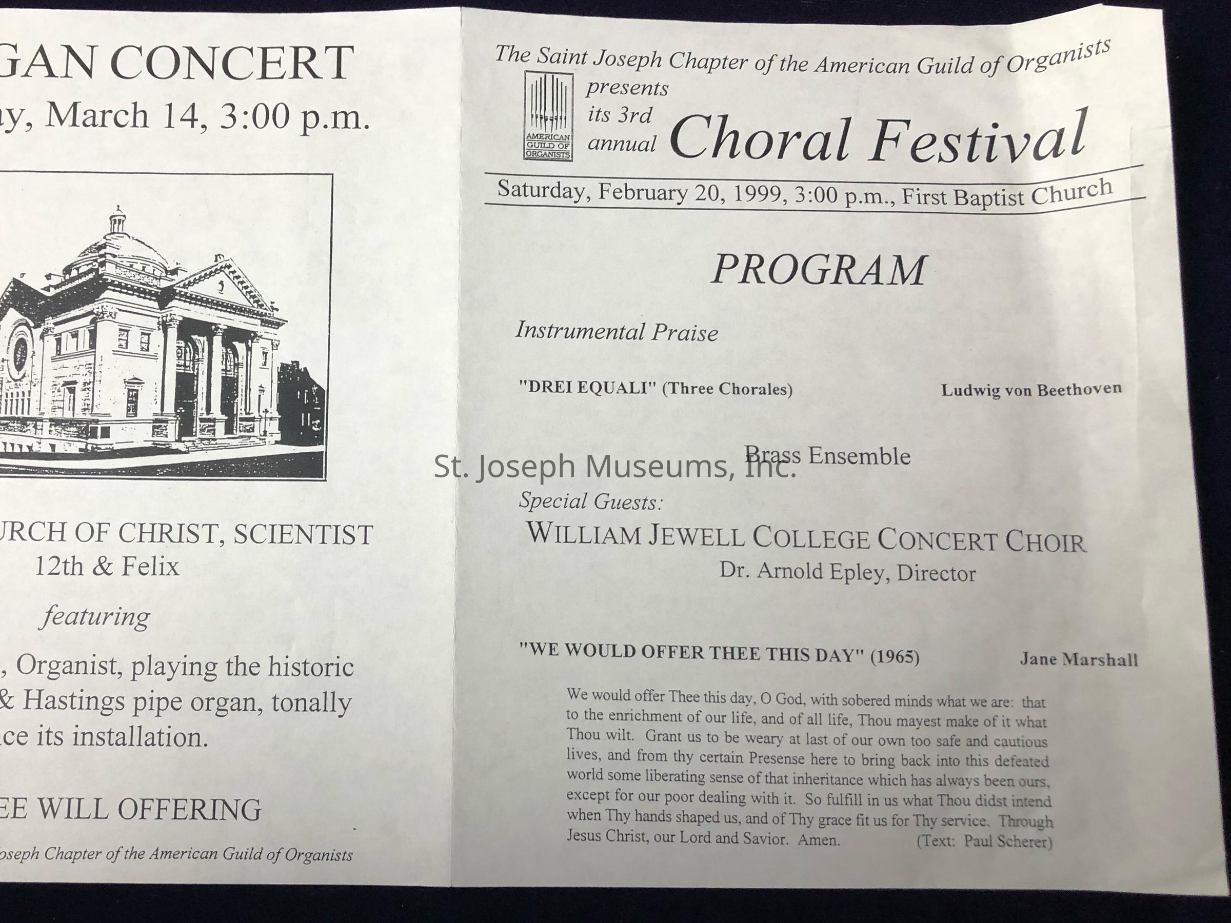 The 3rd Annual Choral Festival Pamphlet is of historical importance to the city of Saint Joseph, Missouri.Lexicon