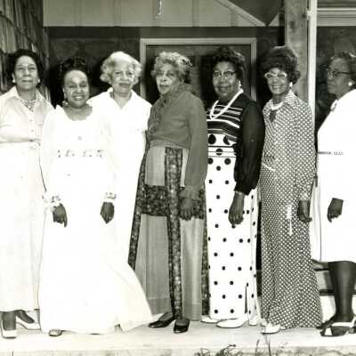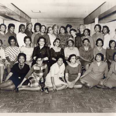b/w. 8" x 10" Handwritten on back: Alpha Alpha chapter assisted Mabla S. Bouldin, regional director, in setting up Gamma Beta Chapter, Kansas City, Kansas.