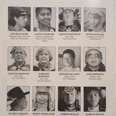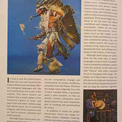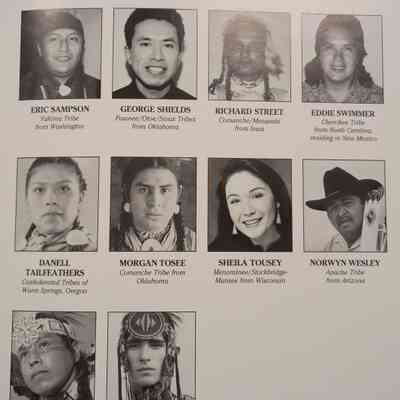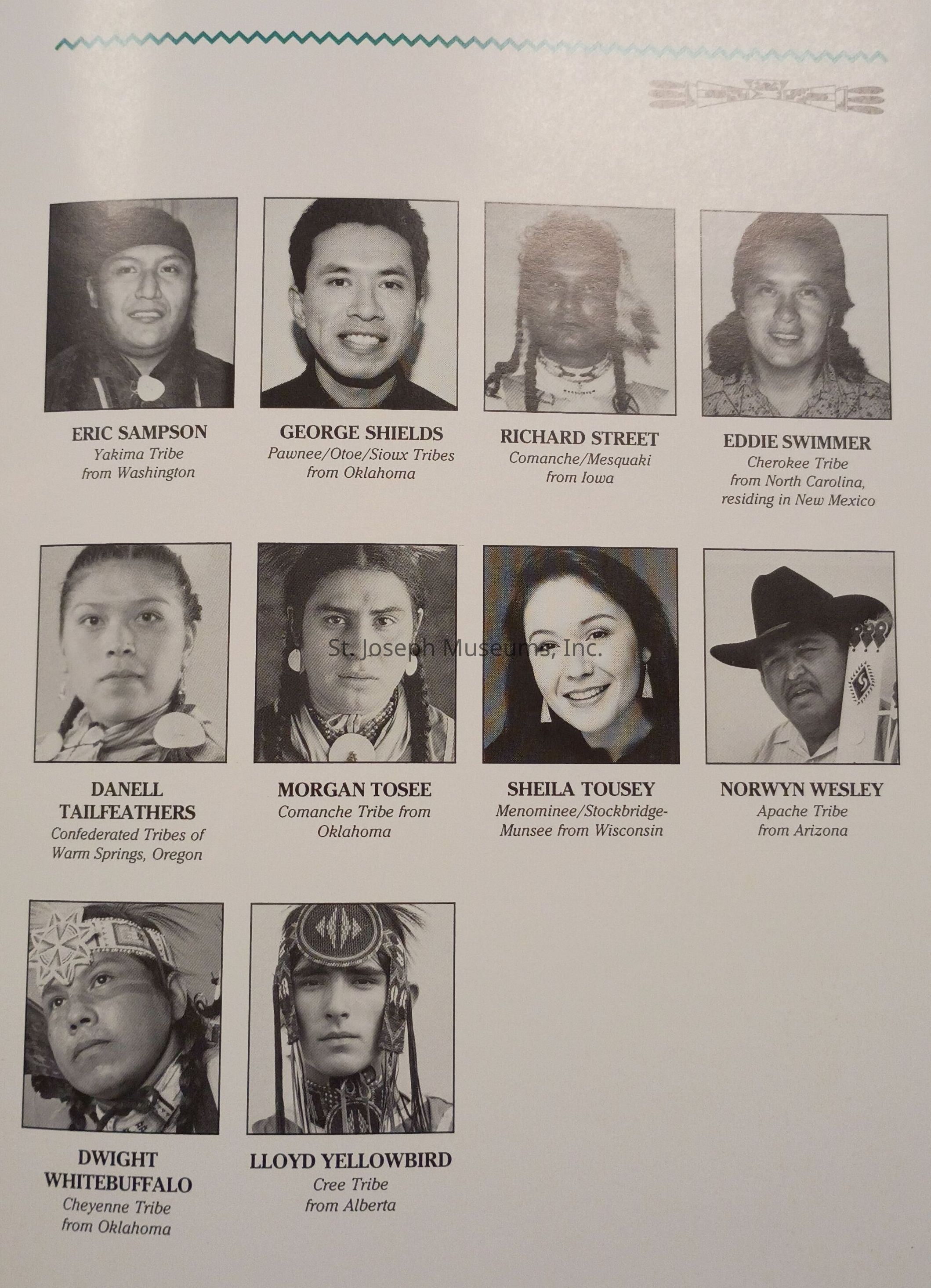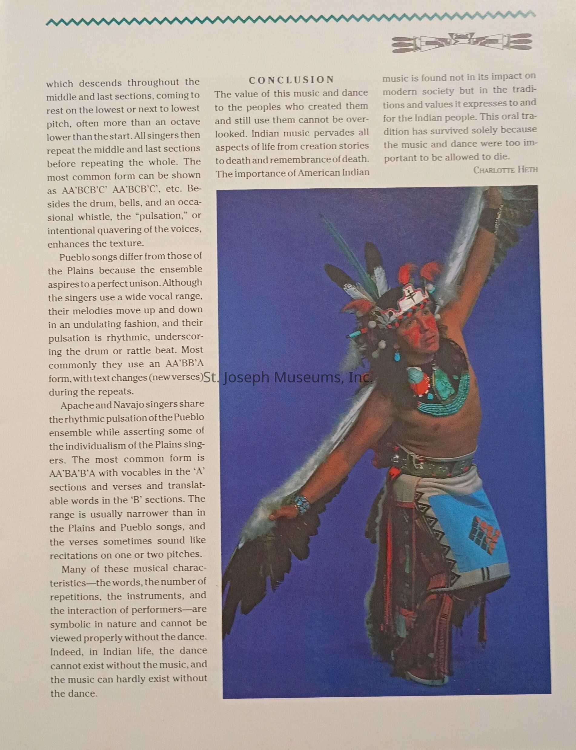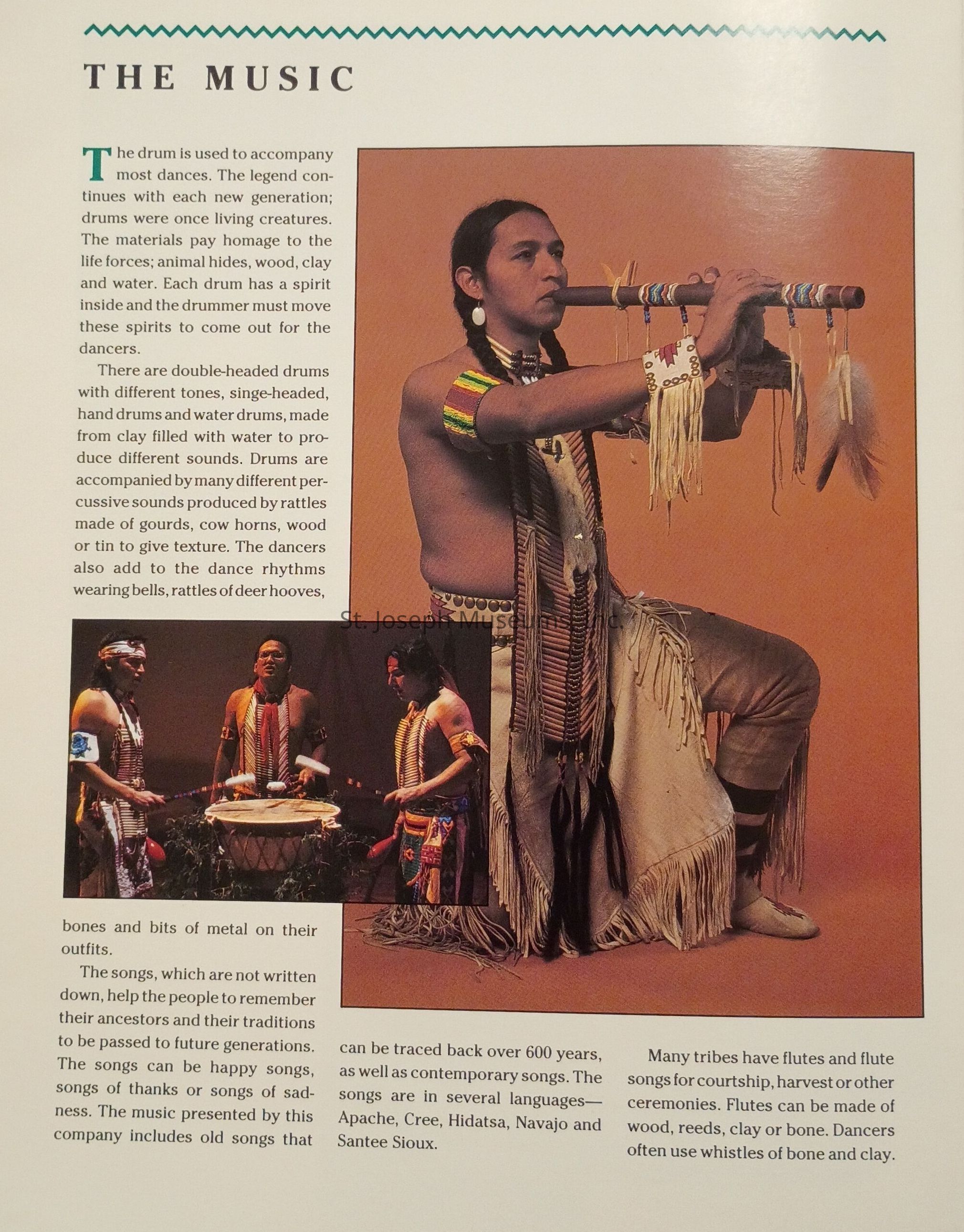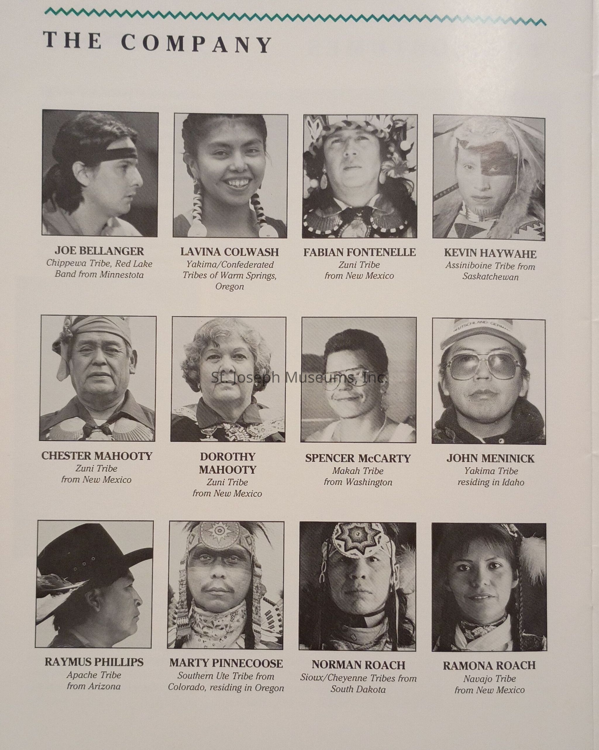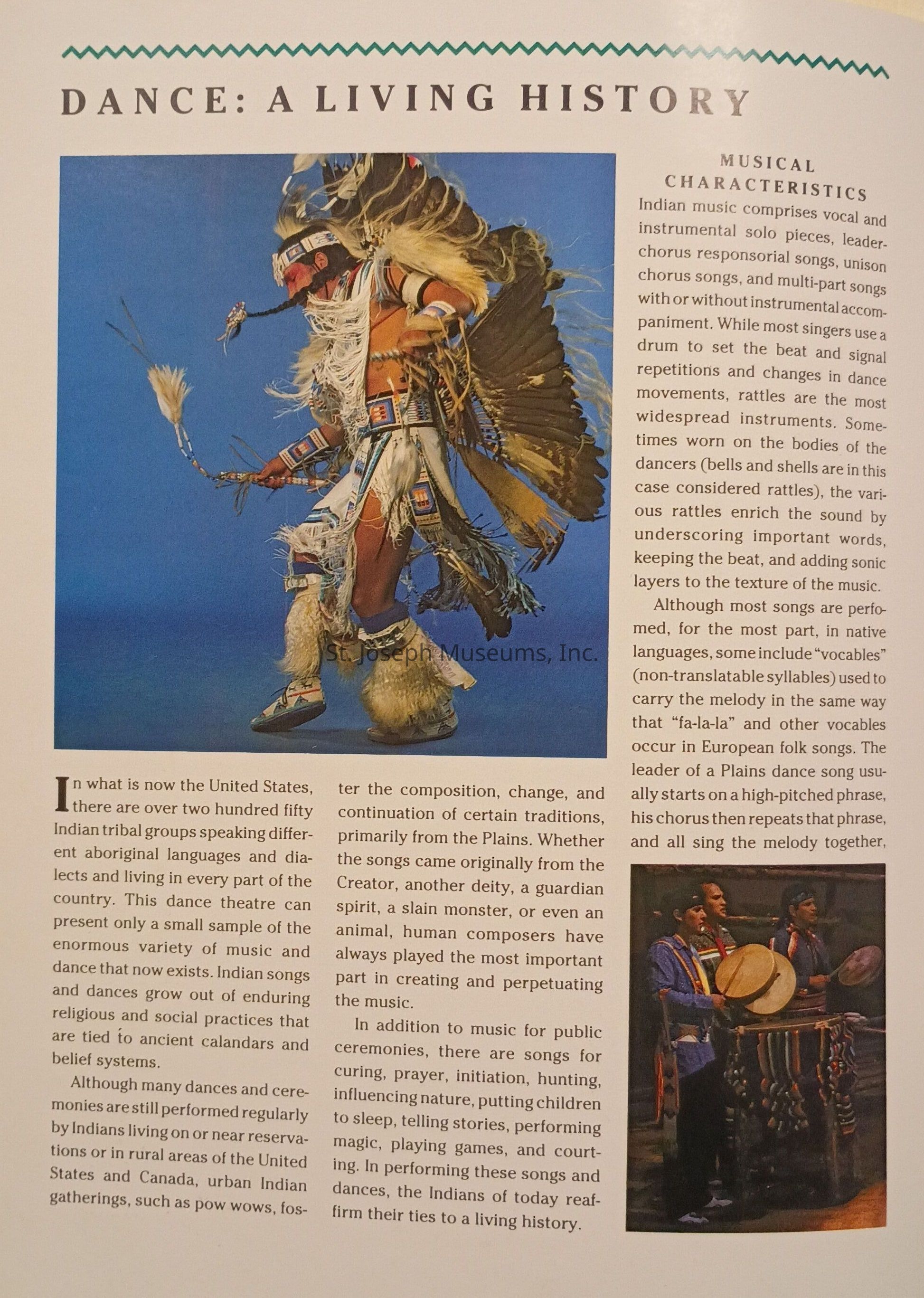 American Indian Dance Theatre Playbill, undated, but dance troupe originated in 1987. Directed and staged by Hanay Geiogamah. Dancers and musicians of many Native America nations provide dance and music. Color photographs of customs and dances.
