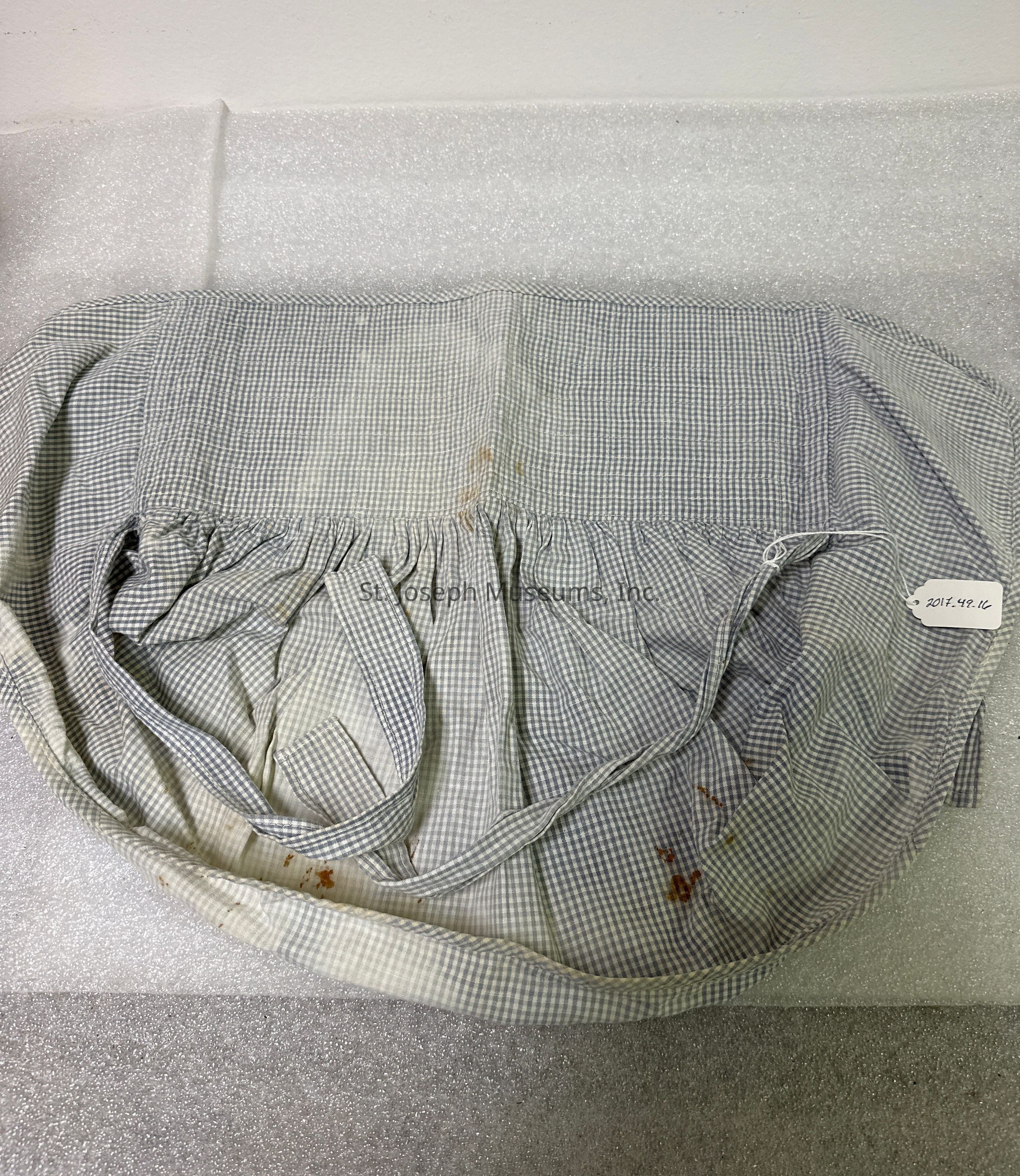 Apron/handmade/blue and white plaid pattern/ties/for waist only/heavily stained at top/