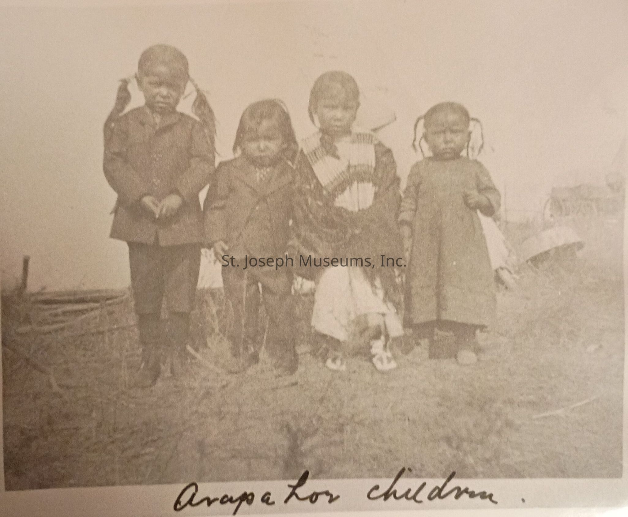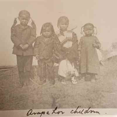 Black and white photograph of four Arapahoe children Part of Mett Shippee Album of Indian Photos