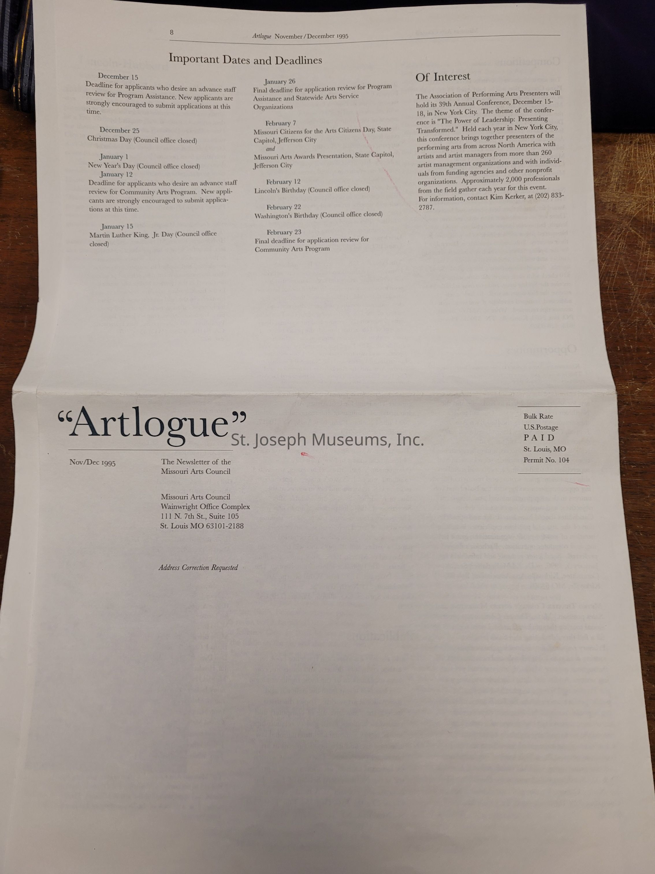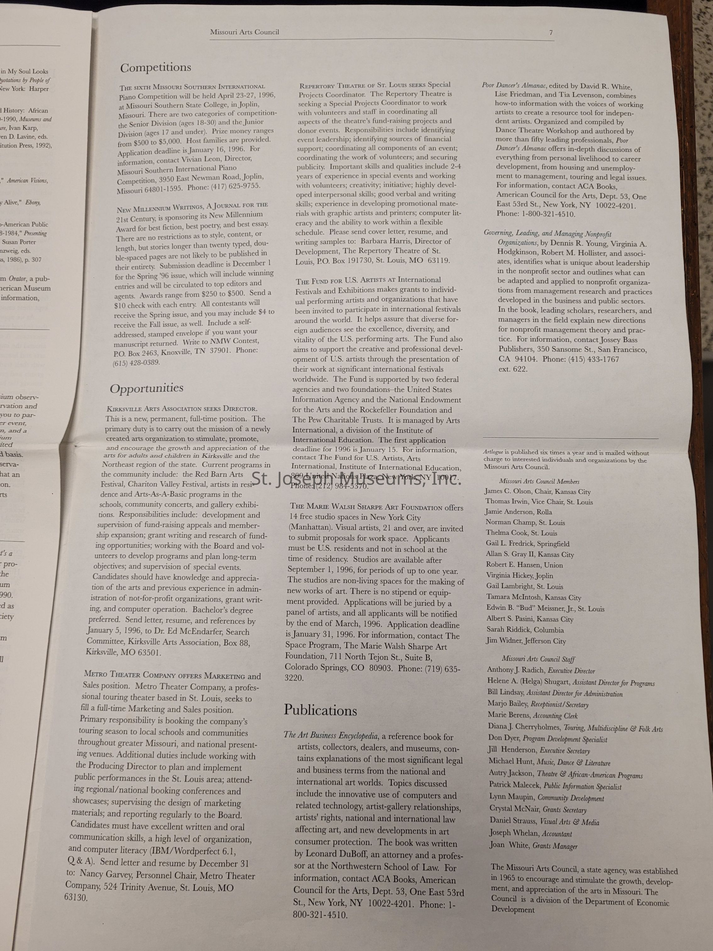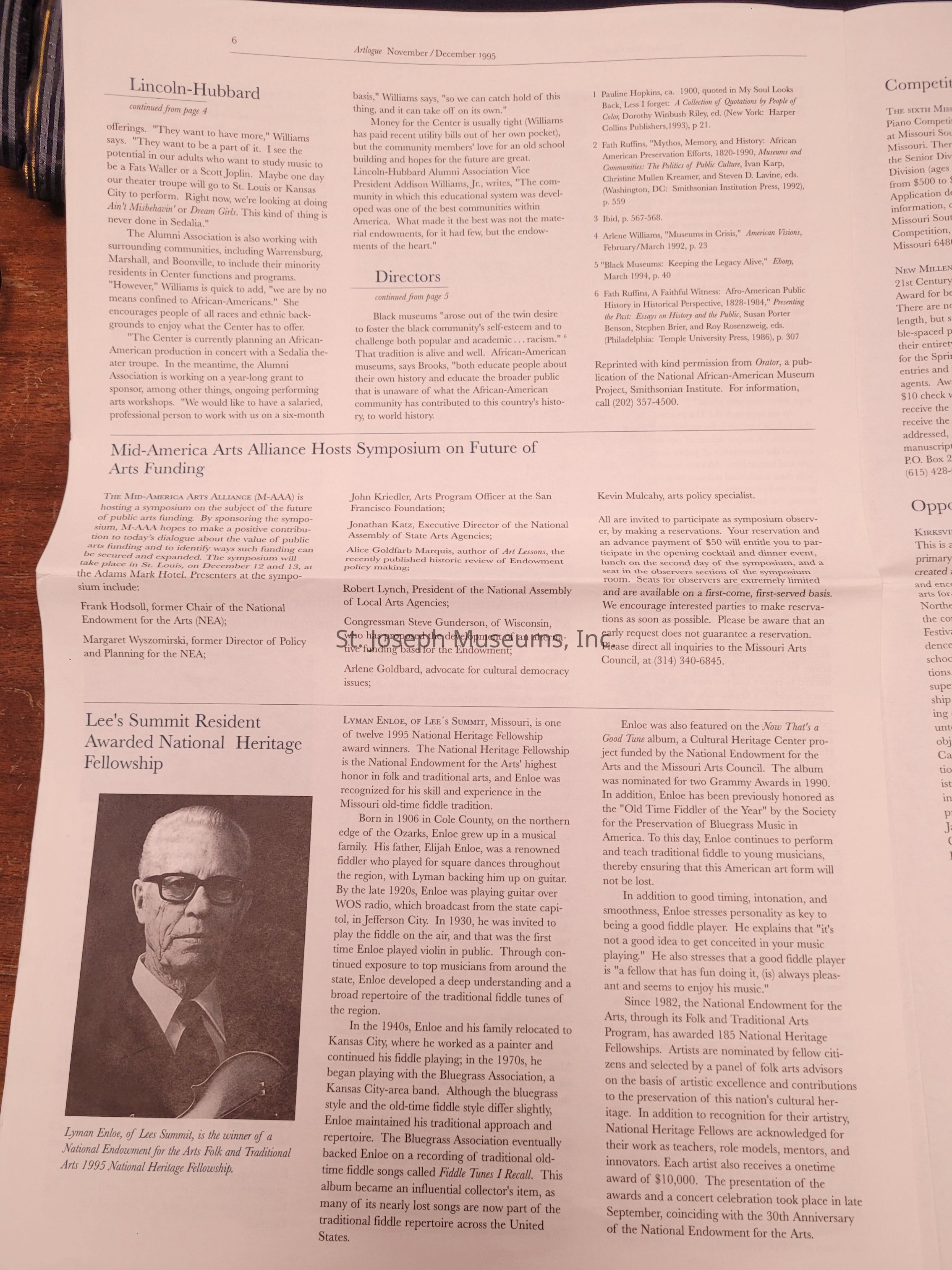 "Artlogue" Volume 16, Number 6 Nov/Dec 1995 Photo from the St. Joseph Juneteenth Festival June 1995