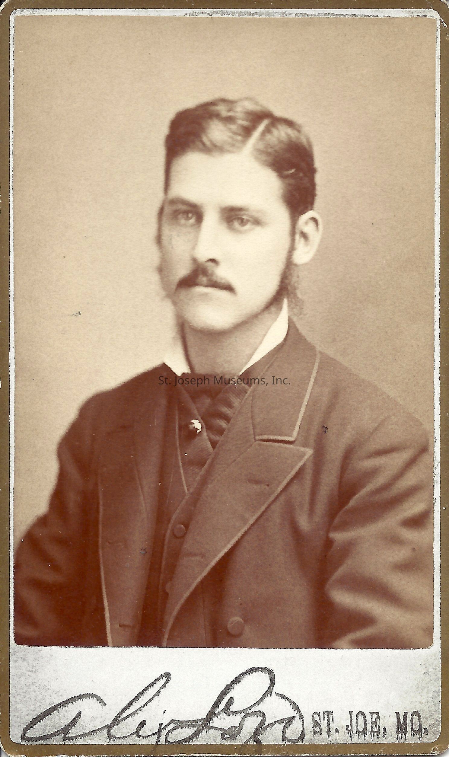 Dr. A Ashmead: Alex Lozo Photography Photo, undated, c. 1880. Cartes de visite. Fairly young man photo from Alex Lozo's studio in St. Joseph. At bottom: Alex Lozo, St. Joe, MO. Name handwritten on back.Collection