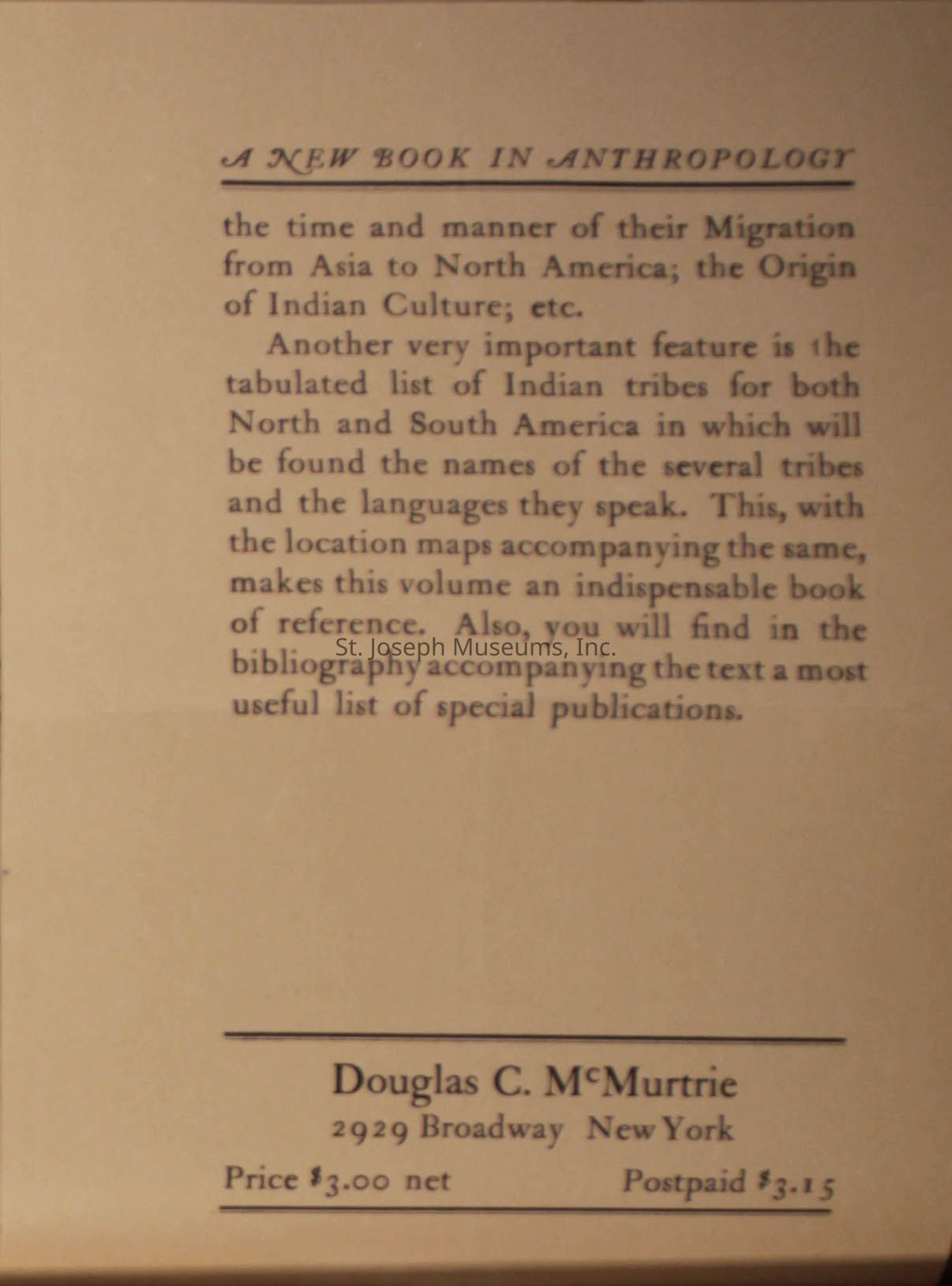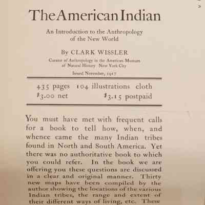The image depicts the cover page for "The American Indian: An Introduction to the Anthropology of the New World" by Clark Wissler, issued in November 1917, which includes 435 pages and 104 illustrations, available for $3.00 net or $3.15 postpaid.