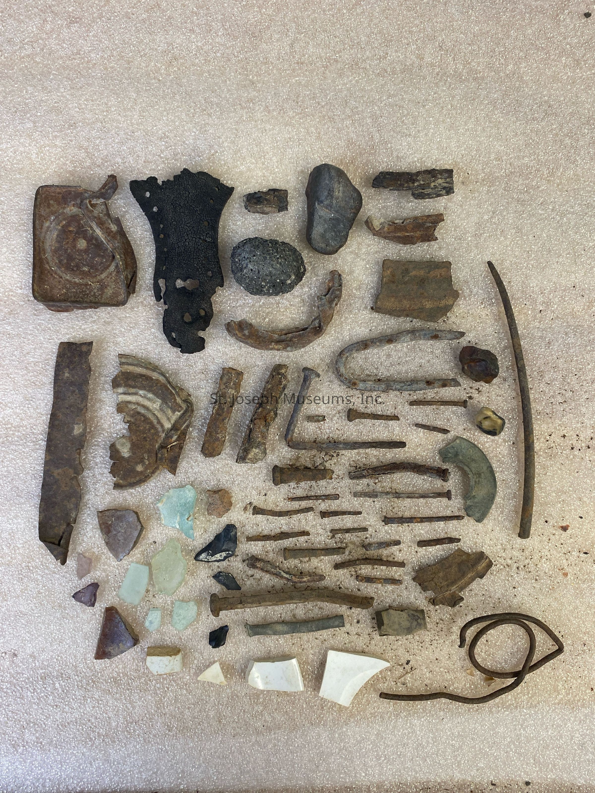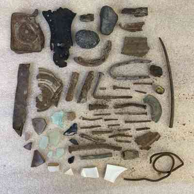 Artifacts/collection/metal, stone, porcelain, glass/metal pieces, nails, tin, leather shoe sole, stones, shards of glass and pieces of porcelainCollection