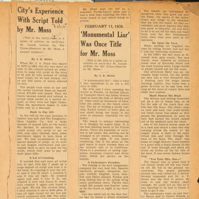 Newspaper articles by J.B. MossEntry/Object ID