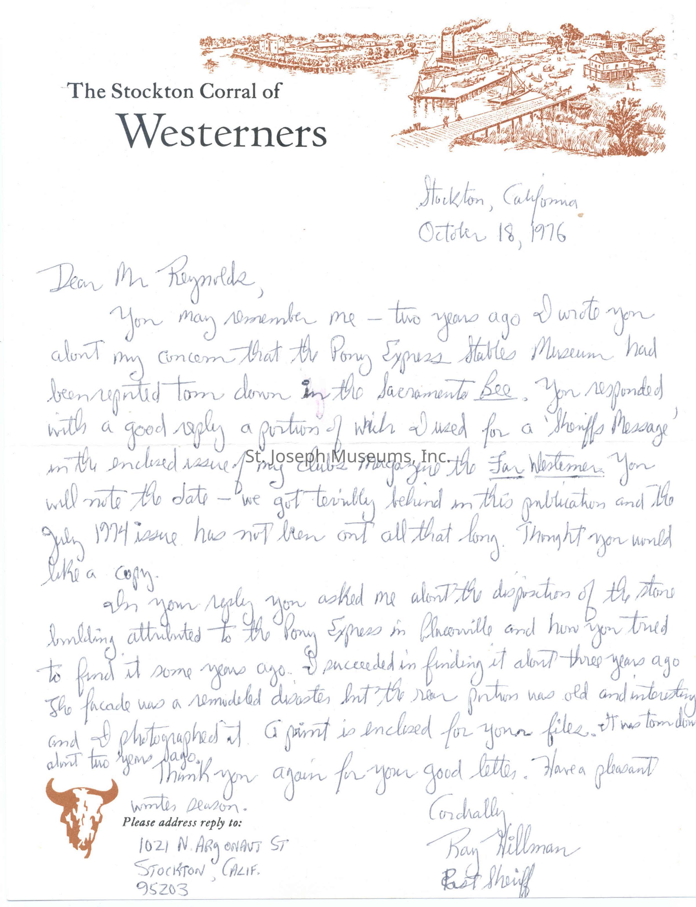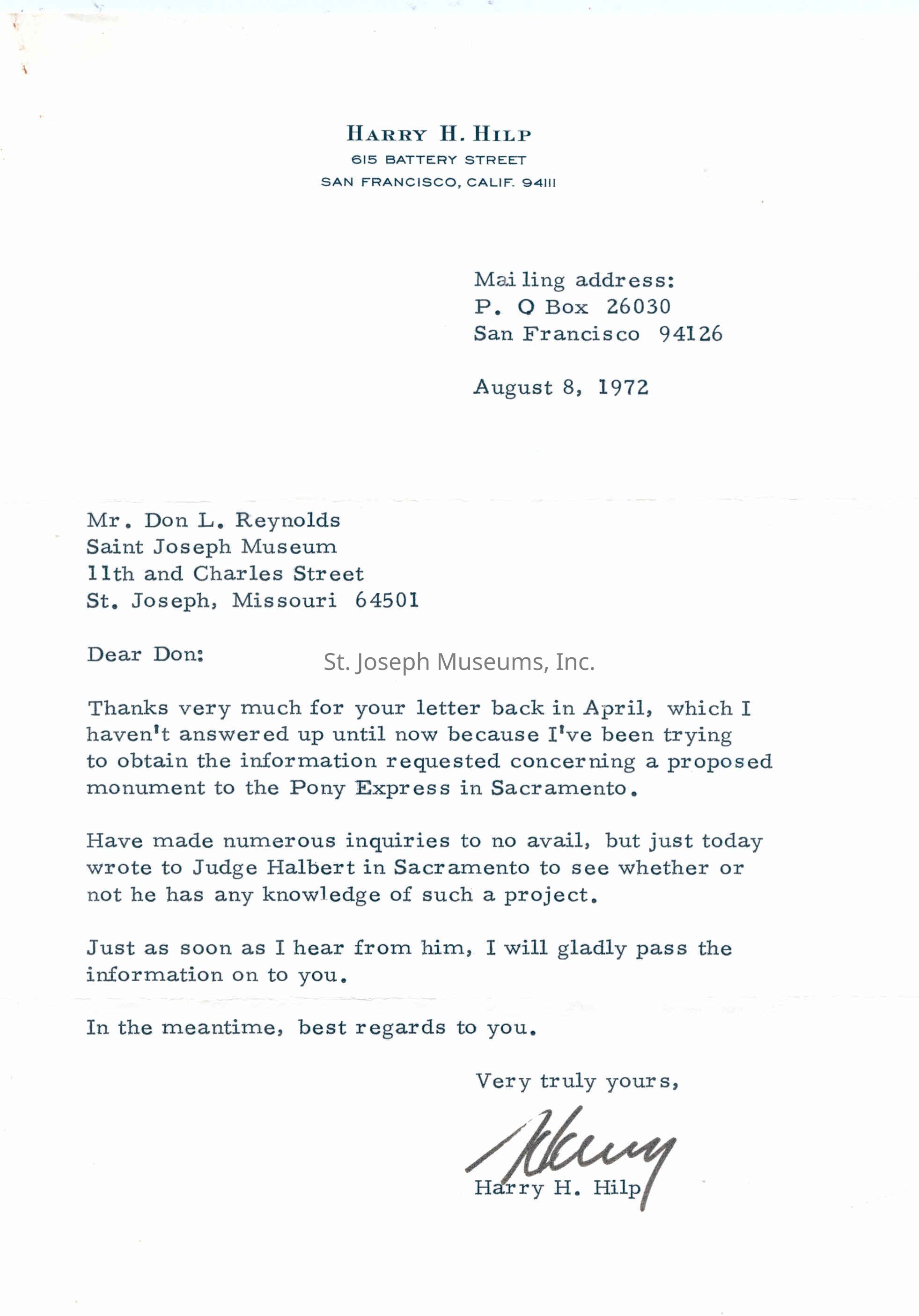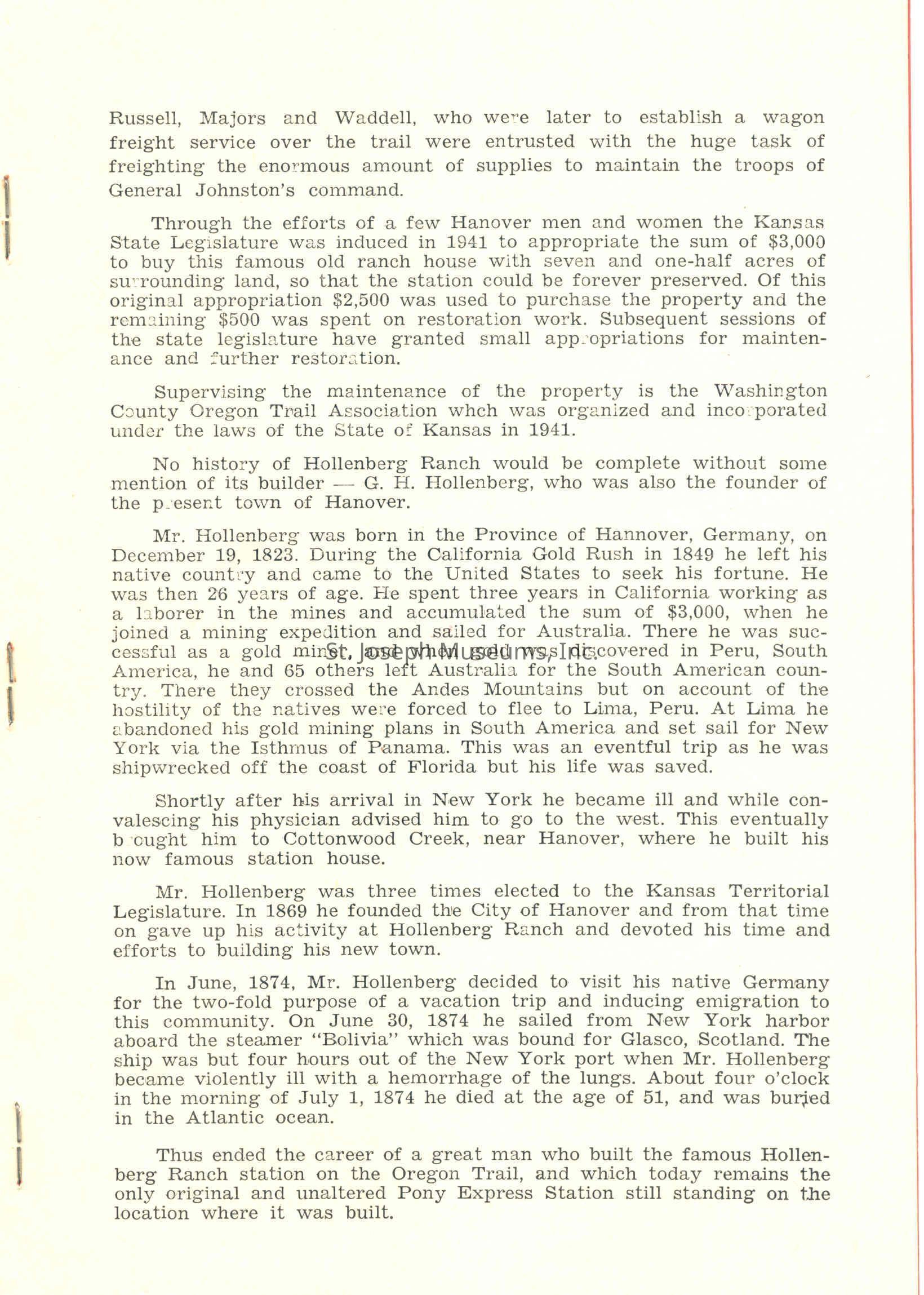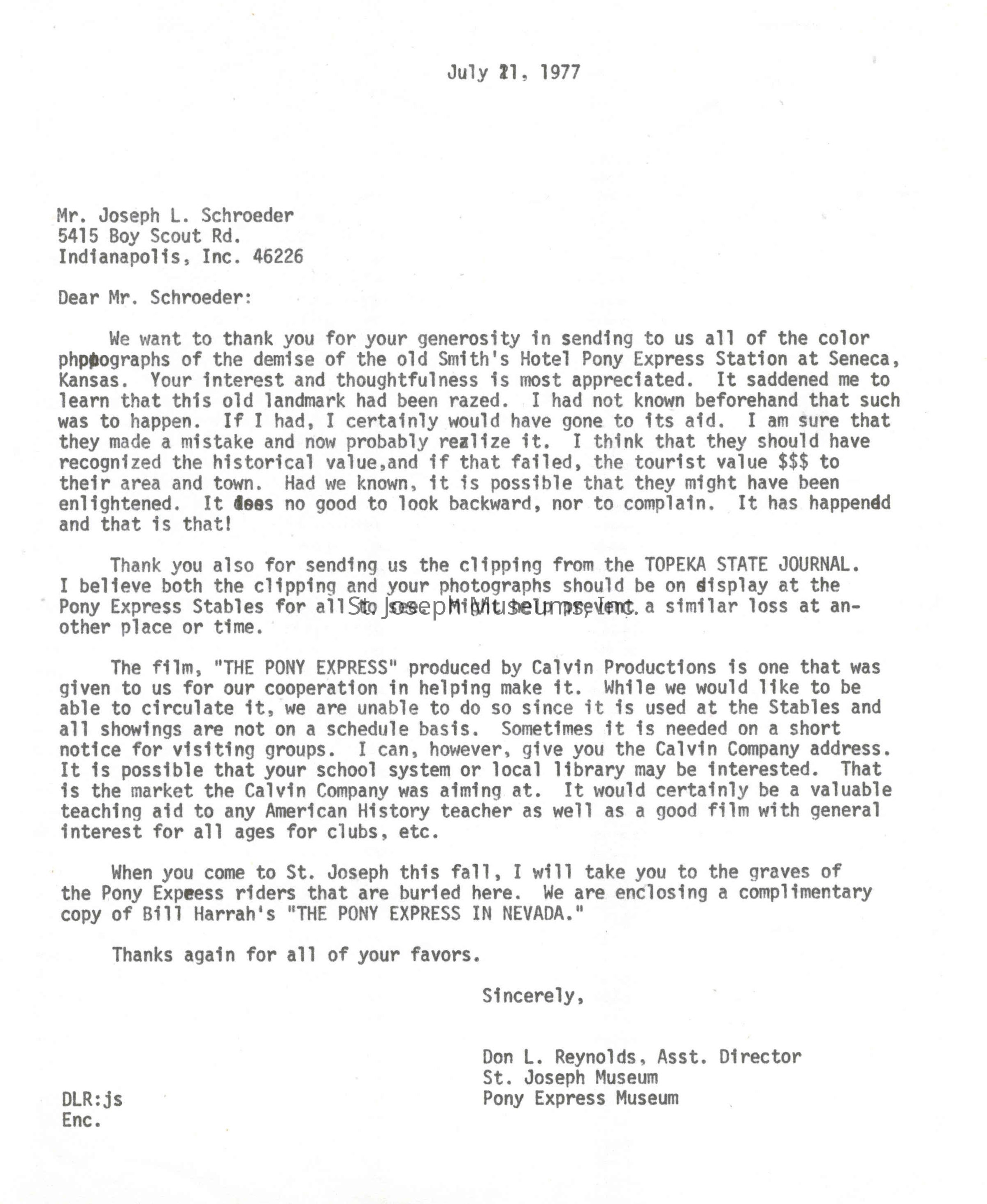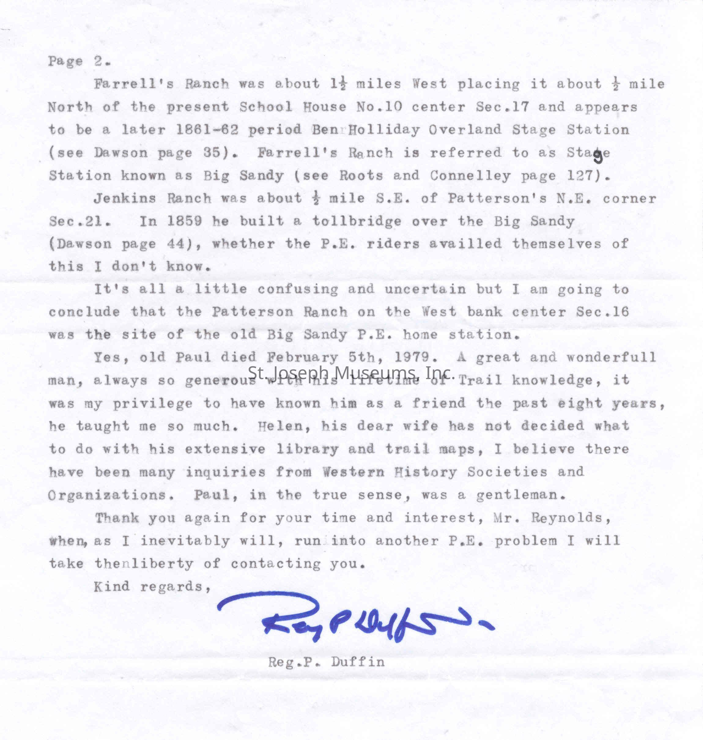 Files contain correspondence with Pony Rider descendants, Pony Express rider biographies, newspaper clippings related to the Pony Express, and miscellaneous records, photos, and documents collected from major private and University libraries among other sources. NOTE ABOUT ORIGIN OF LIBRARIES FILE. Prior to the opening of the renovated Pony Express Museum in 1993, St. Joseph Museum staff did extensive research on the Pony Express. All of the libraries in this folder were visited and copies of all material related to the Pony Express were made. This was done from 1991 to 1993. Information from this research was used in the new exhibits of the Pony Express Museum and in preparation of the book On the Winds of Destiny. In 2015, the file from the Pony Express Museum was added. Jackie Lewin 7/27/15 CD containing scans of actual documents found in Pony Express Research Files located in file cabinets in Document Storage II area.