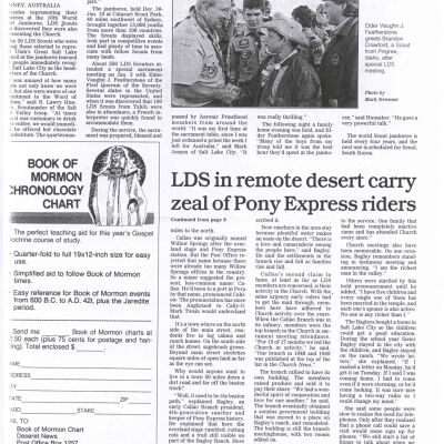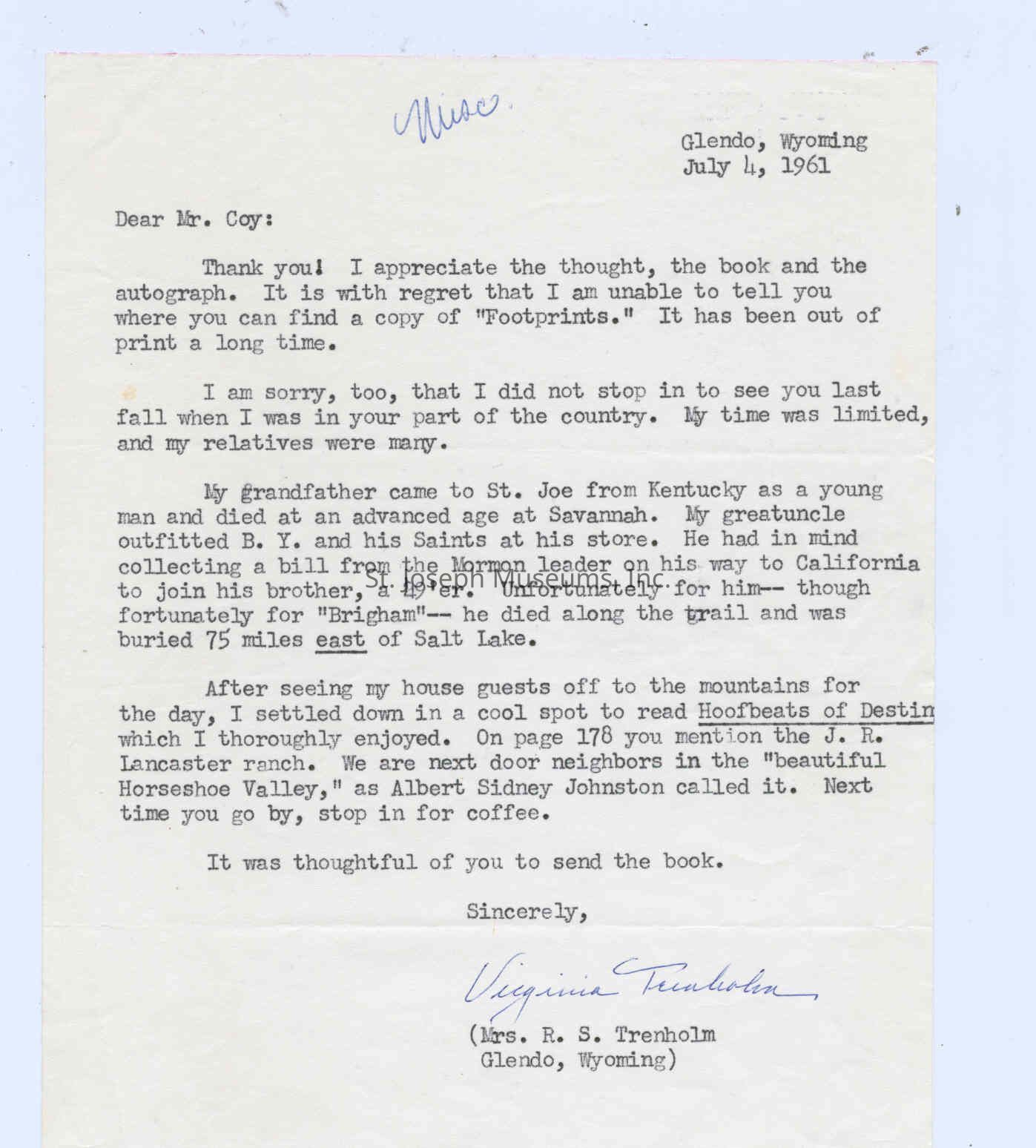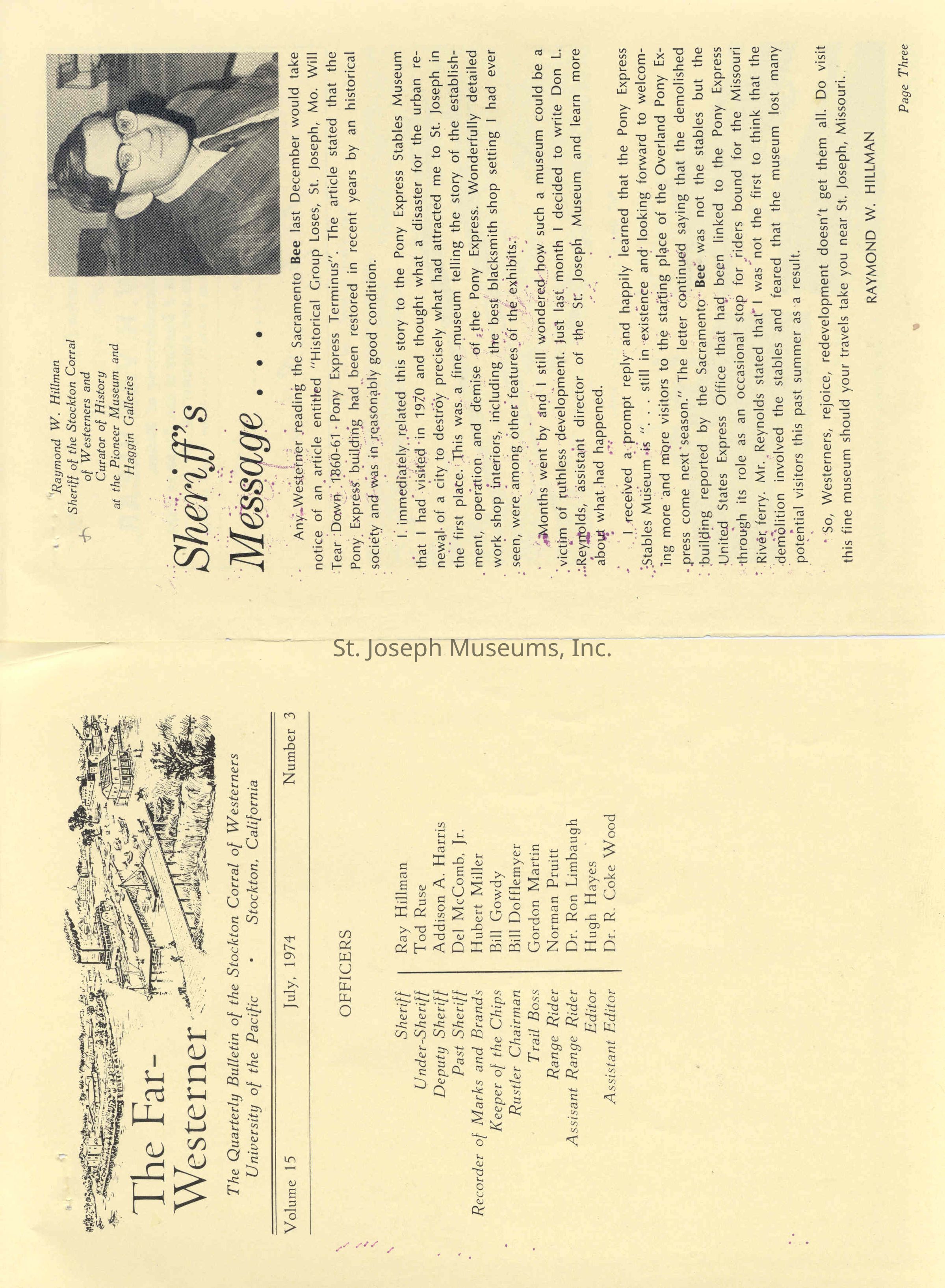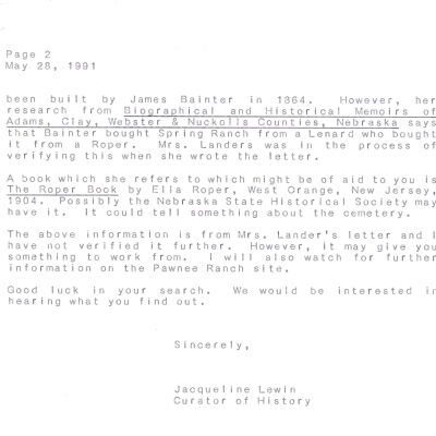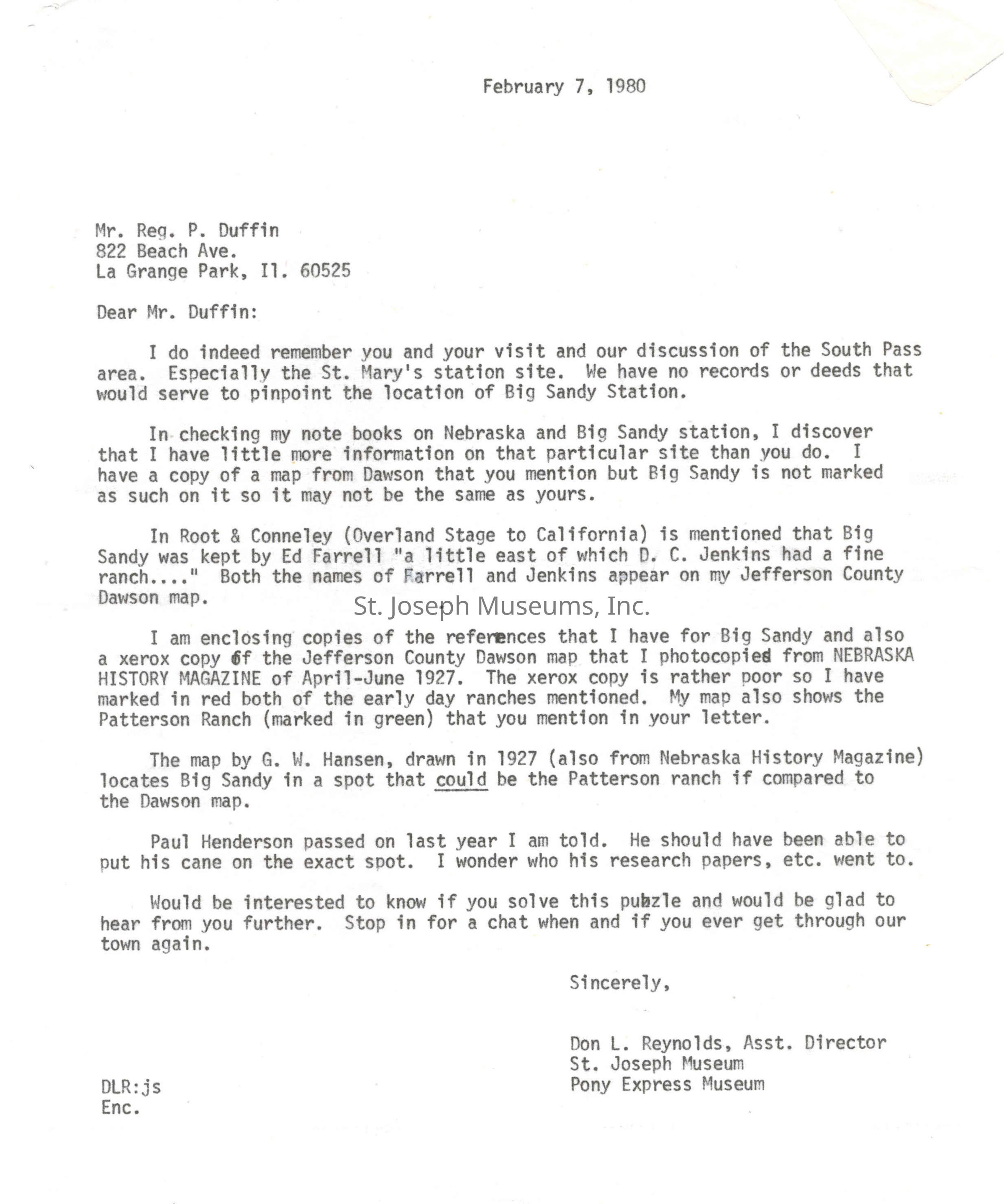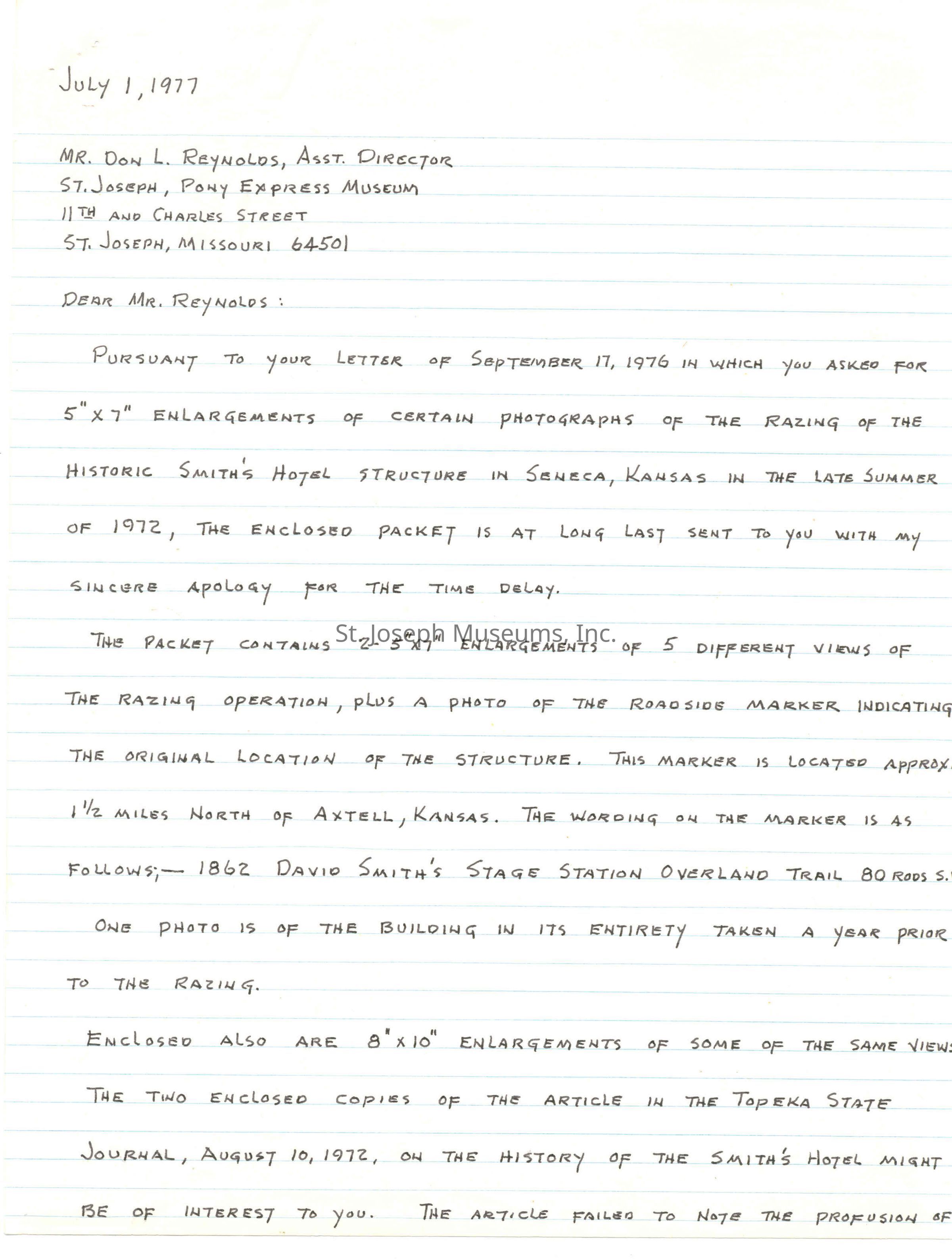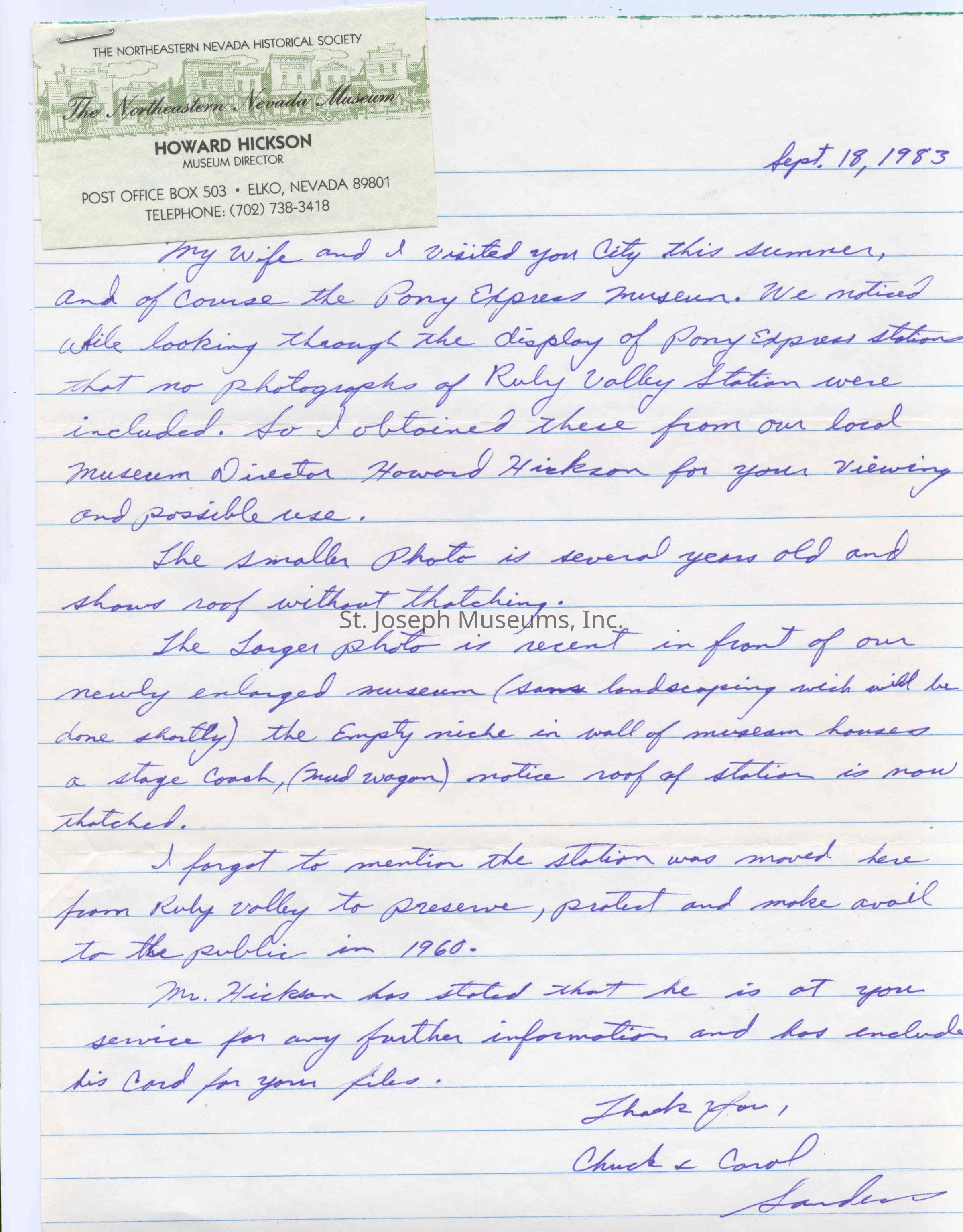Files contain correspondence with Pony Rider descendants, Pony Express rider biographies, newspaper clippings related to the Pony Express, and miscellaneous records, photos, and documents collected from major private and University libraries among other sources. NOTE ABOUT ORIGIN OF LIBRARIES FILE. Prior to the opening of the renovated Pony Express Museum in 1993, St. Joseph Museum staff did extensive research on the Pony Express. All of the libraries in this folder were visited and copies of all material related to the Pony Express were made. This was done from 1991 to 1993. Information from this research was used in the new exhibits of the Pony Express Museum and in preparation of the book On the Winds of Destiny. In 2015, the file from the Pony Express Museum was added. Jackie Lewin 7/27/15 CD containing scans of actual documents found in Pony Express Research Files located in file cabinets in Document Storage II area.