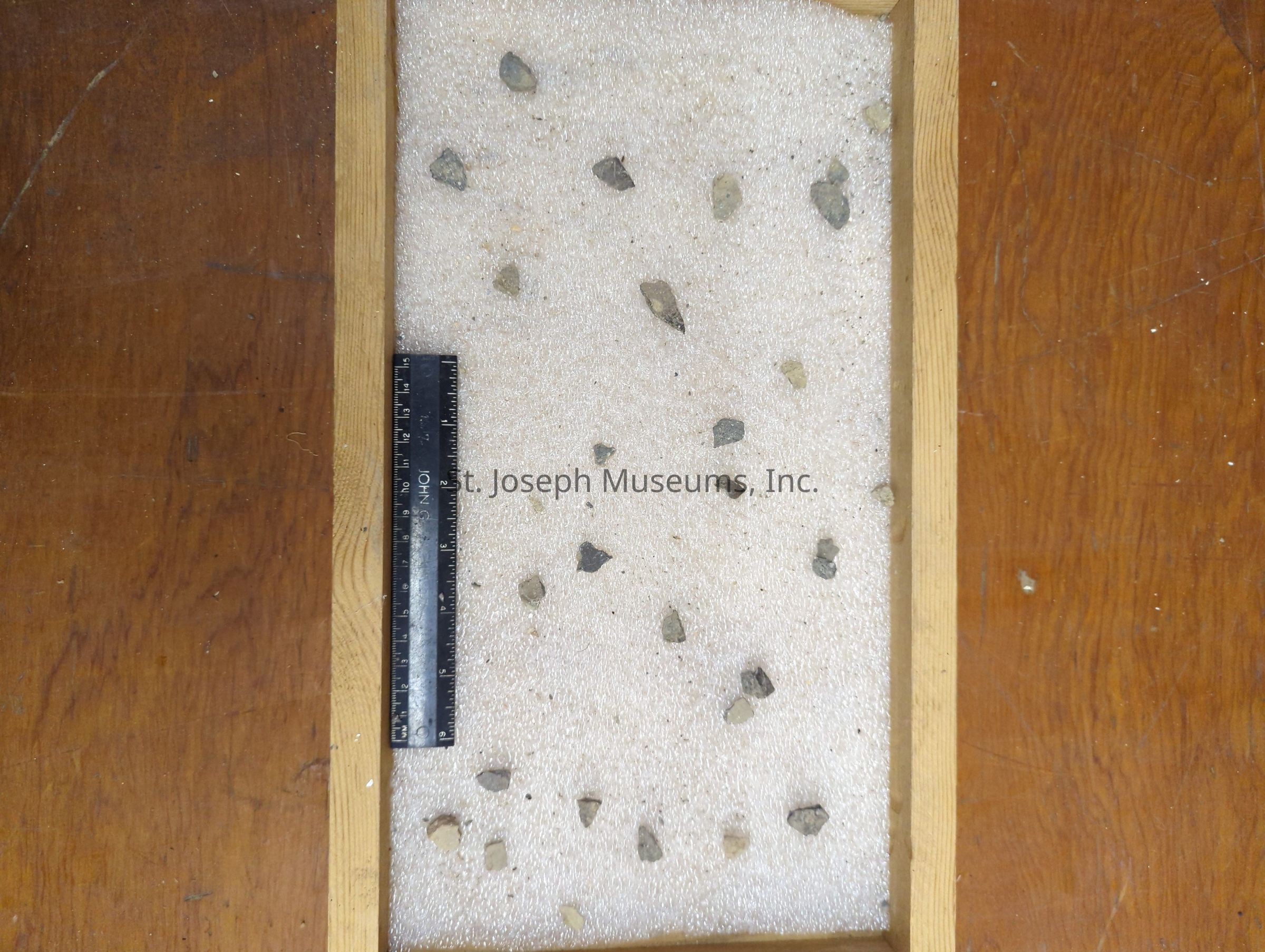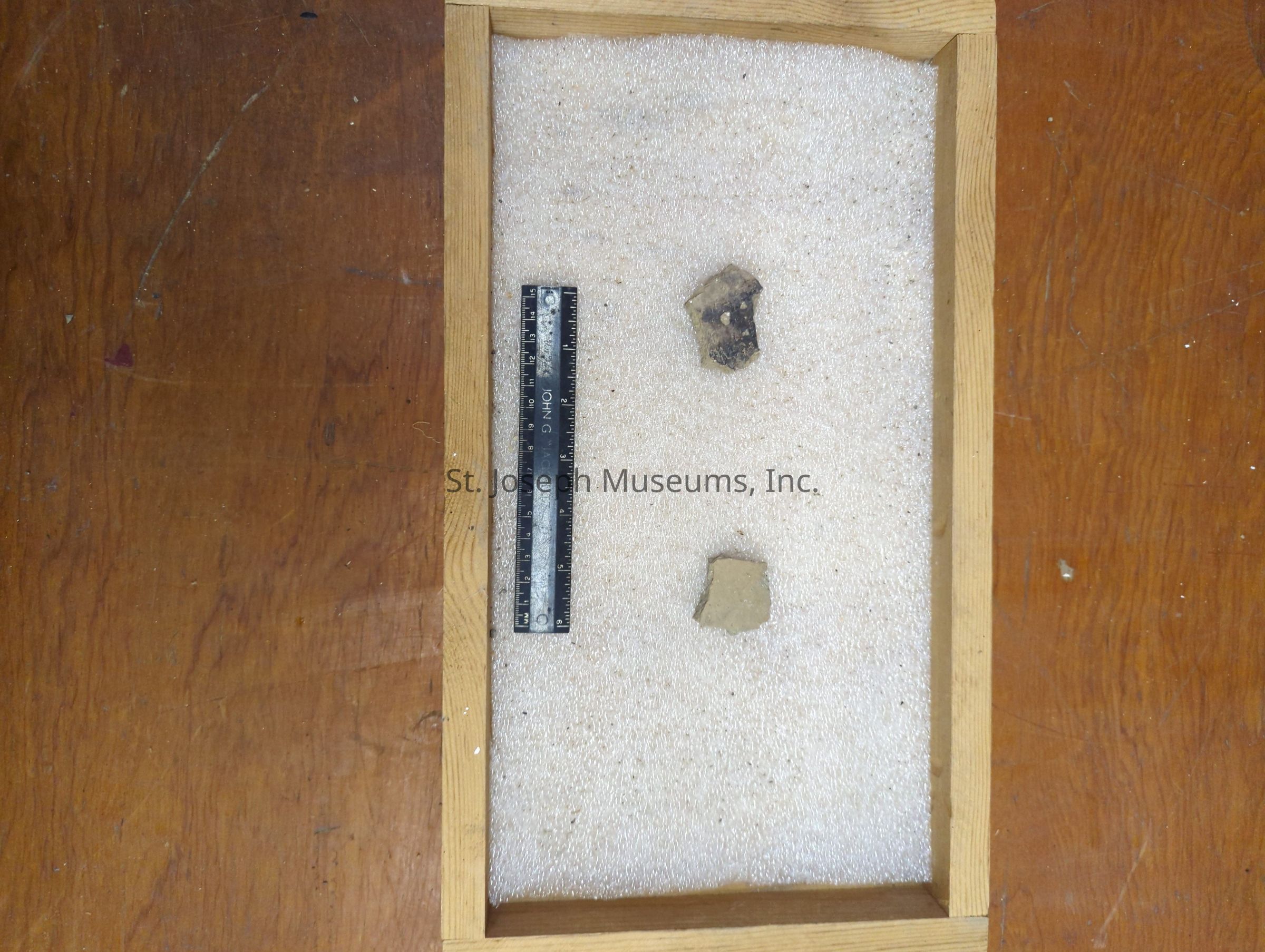 The King Hill Site (23BN1) is located in a residential area of the city of St. Joseph, Missouri. The archaeological site is situated on top of a high, west facing bluff overlooking the Missouri River Valley. It was excavated by members of the St. Joseph Chapter of the Missouri Archaeological Society and the Summer Field School of the University of Missouri - Columbia over a 10 day period in the summer of 1966 under a cooperative agreement with the St. Joseph Museum. Work was continued in the fall of that year and into the next by the St. Joseph Chapter. Additional work was conducted at the site by the University of Nebraska. Pottery and limited trade goods in the upper levels indicate a late Oneota, early historic occupation, possibly by the Kansa tribe, about AD 1700. The site was placed on the National Register of Historic Sites in 1968 and a preliminary report was issued that same year. In 1972 further excavations, funded by the National Science Foundation, were undertaken by the University of Nebraska-Lincoln. The Missouri Field School and the University of Nebraska excavations were directed by Dr. Dale R. Henning" (Cutler and Blake 1982). Information gathered from: http://users.stlcc.edu/mfuller/kinghill.html