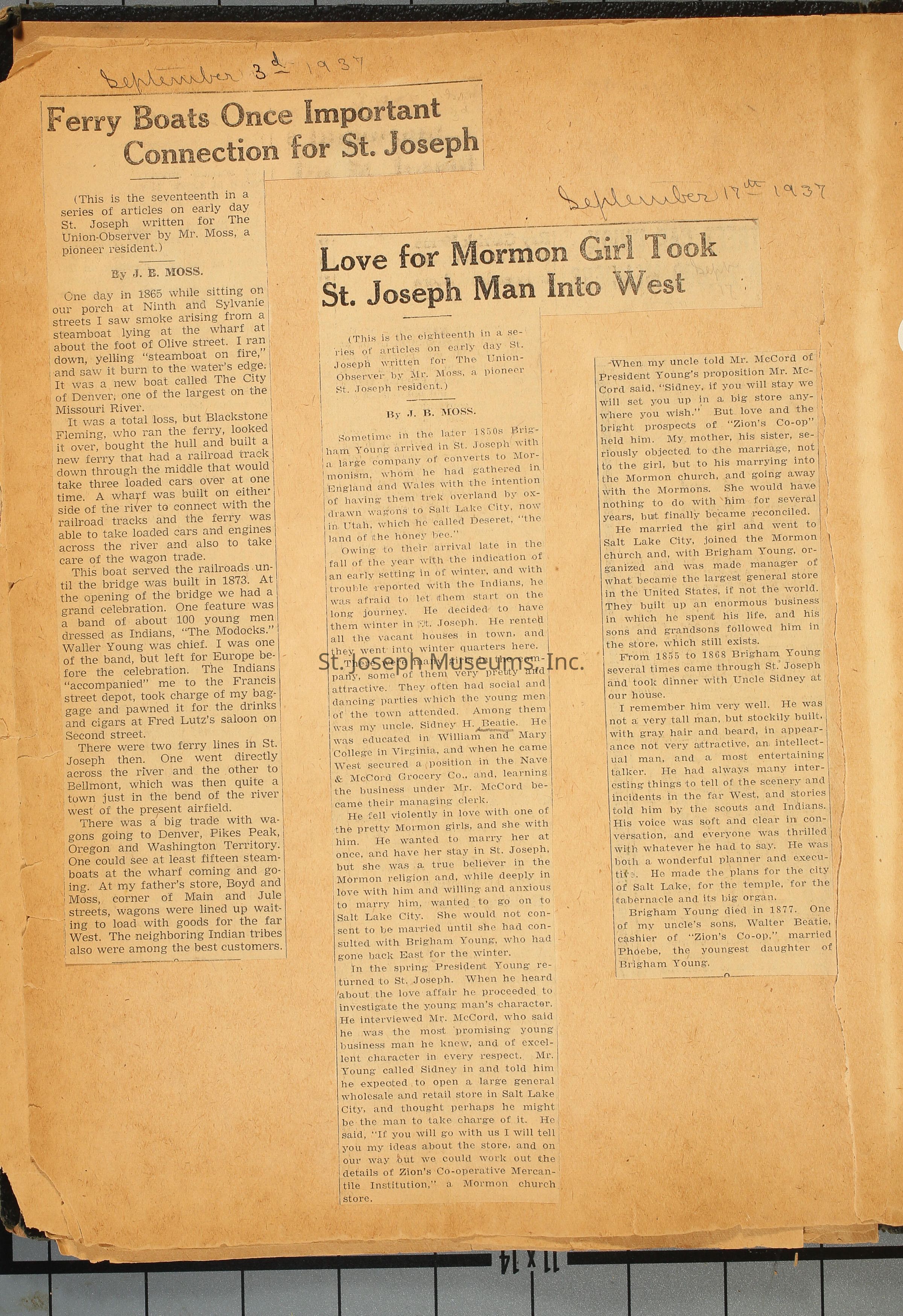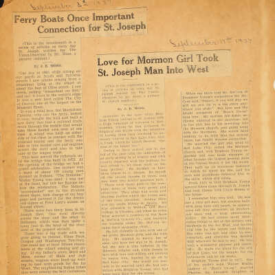 Love for Mormon Girl Took St. Joseph Man into West (September 17, 1937)Photograph Details