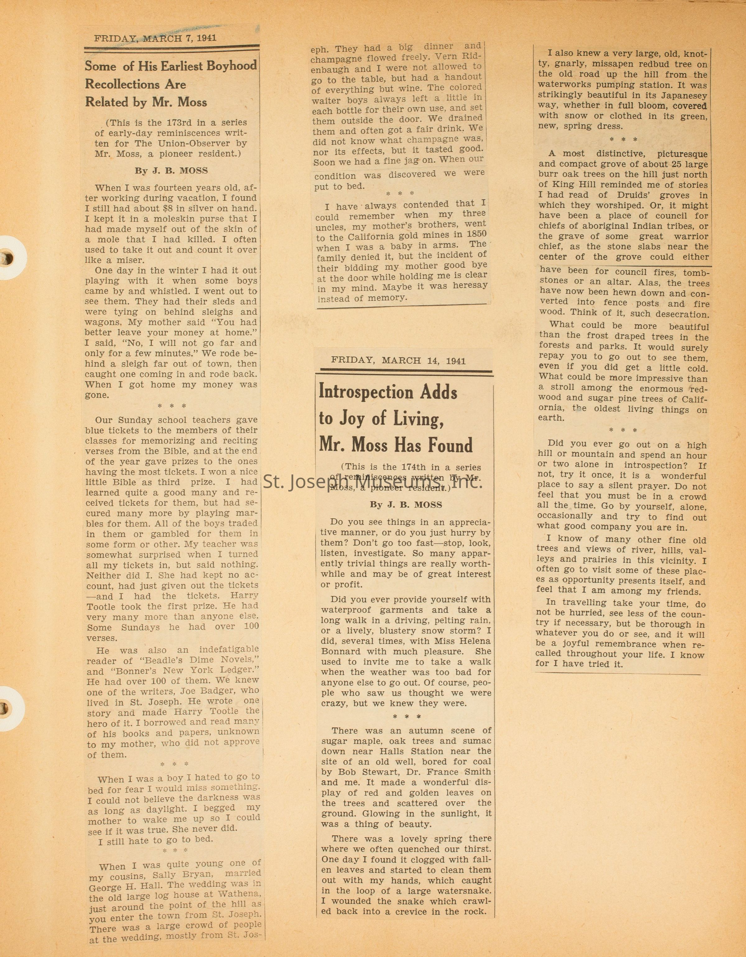 Newspaper Articles by J.B. Moss