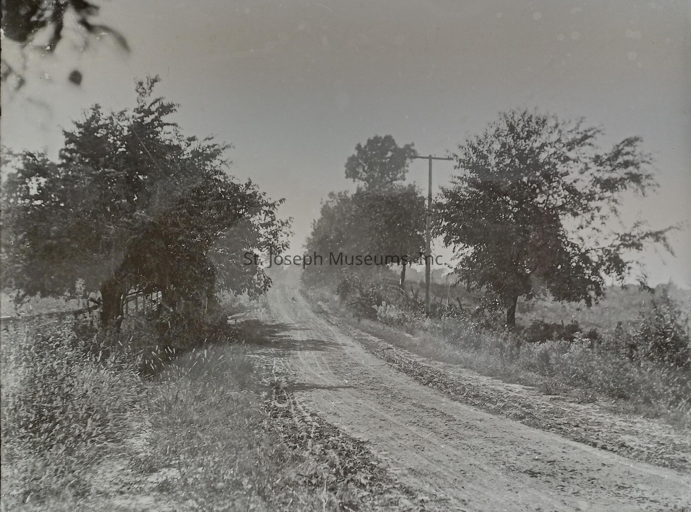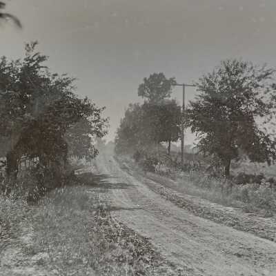 Black-and-white photograph of a country road, the modern Lovers Lane.