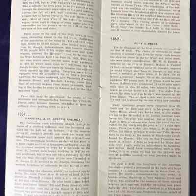 Pamphlet discusses Joseph Robidoux, The Gold Rush, Pony Express, Jesse James, and more.Collection