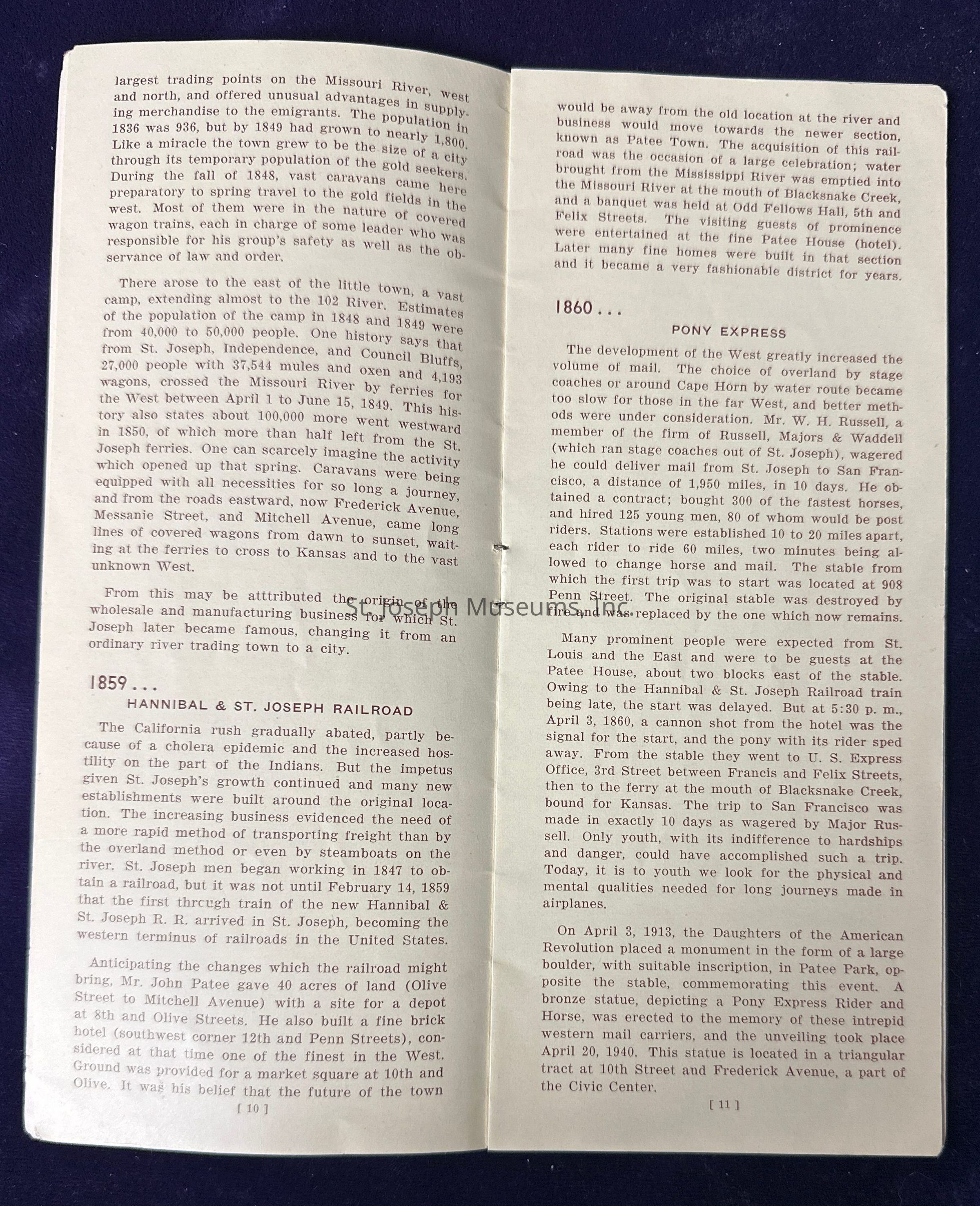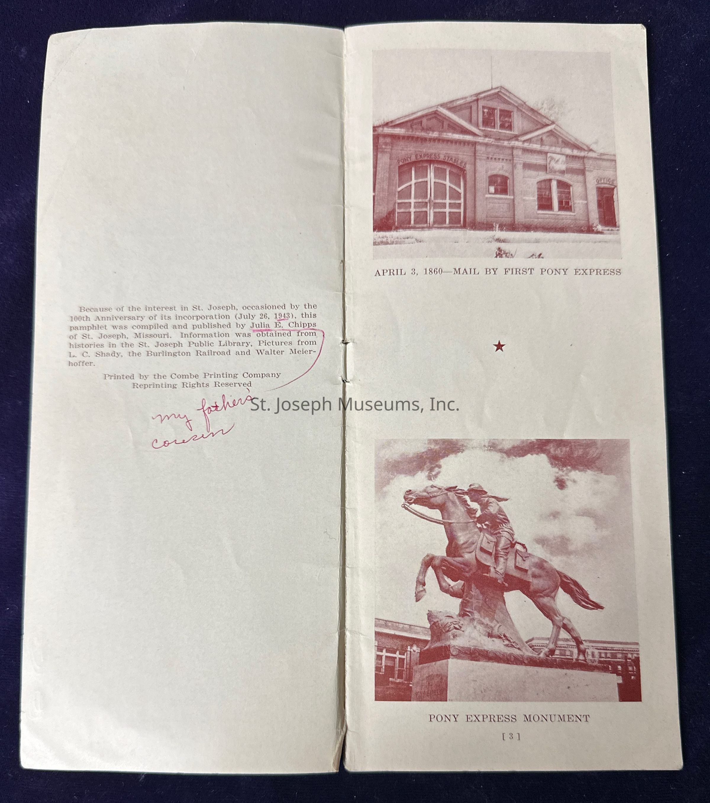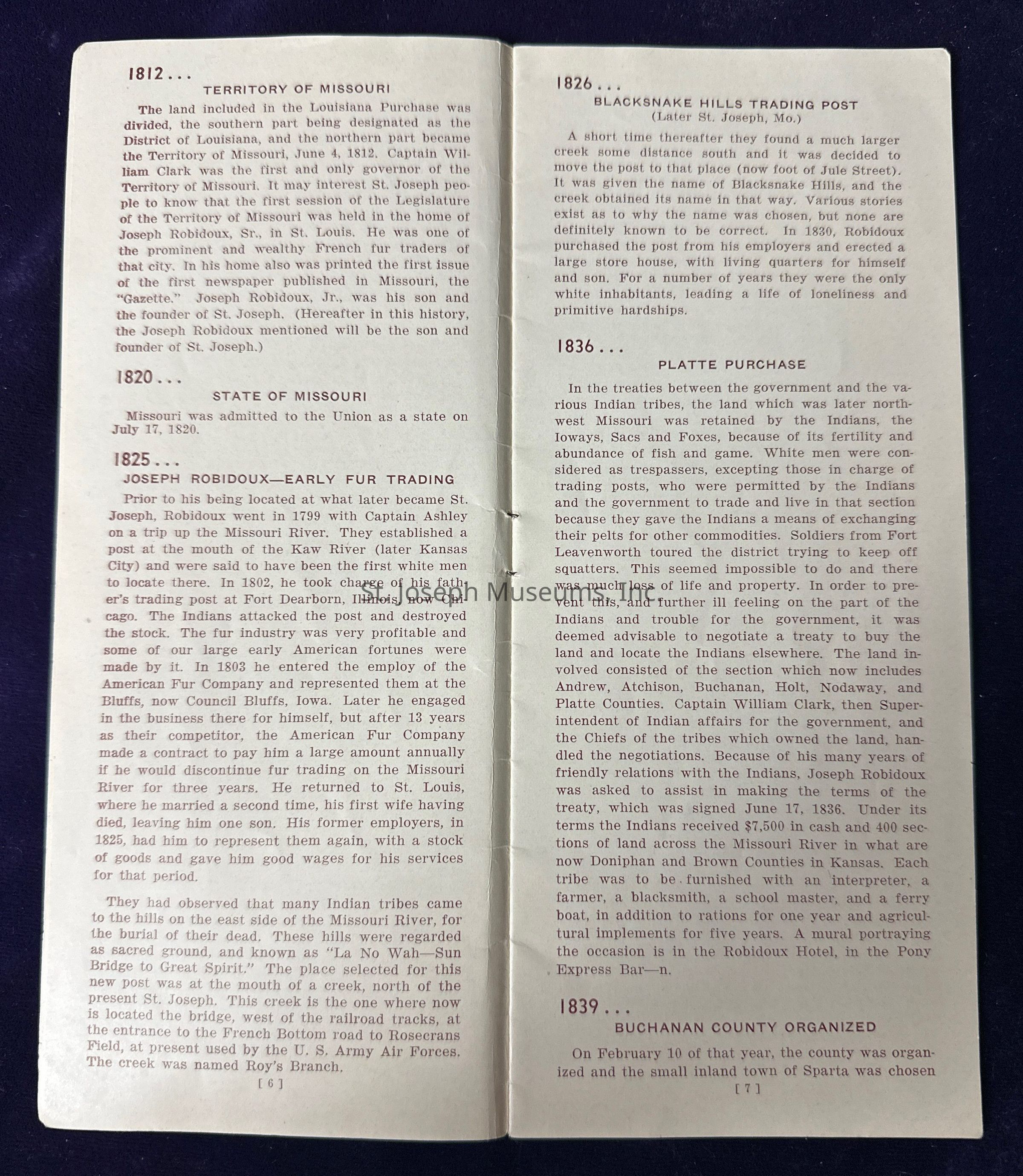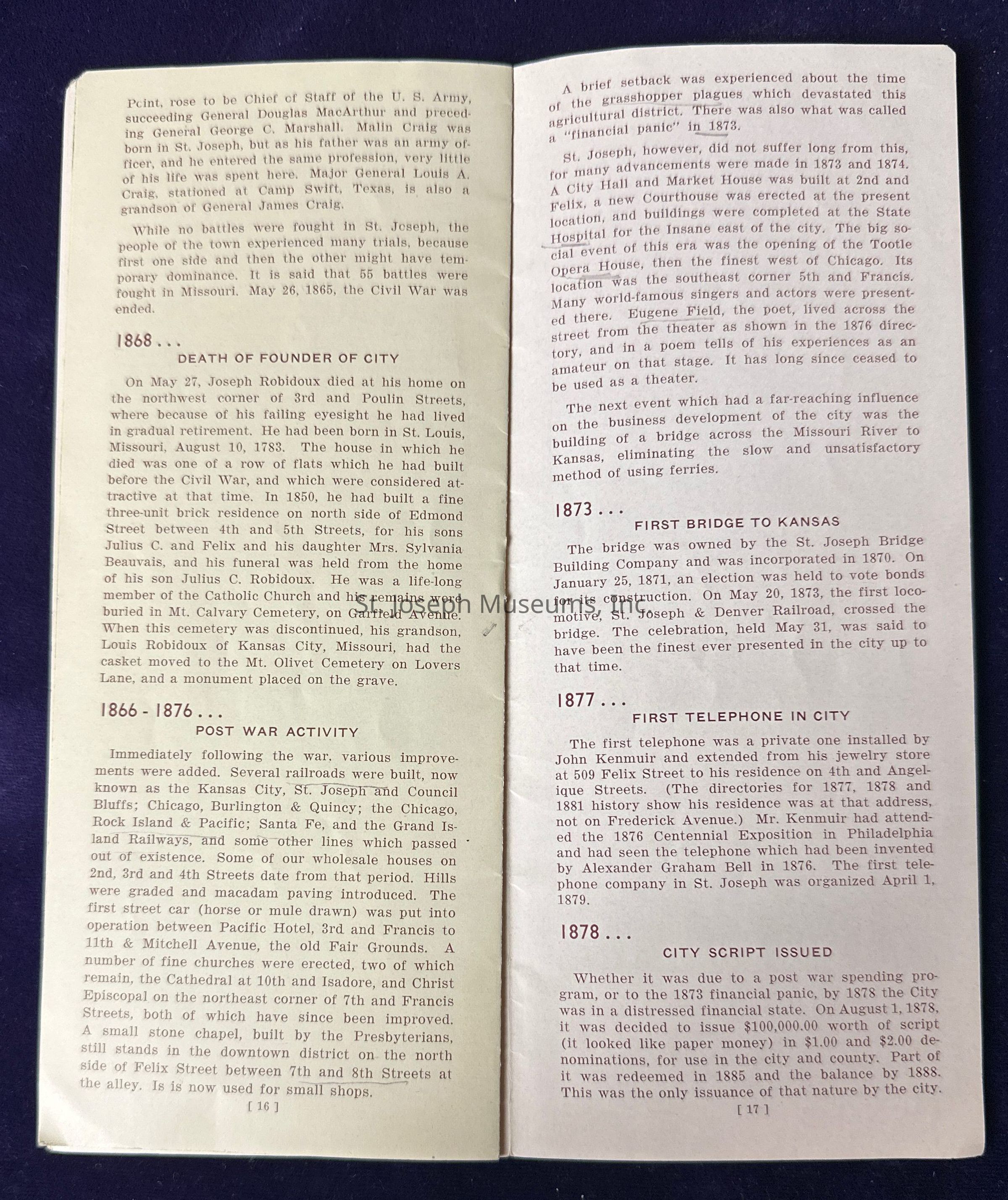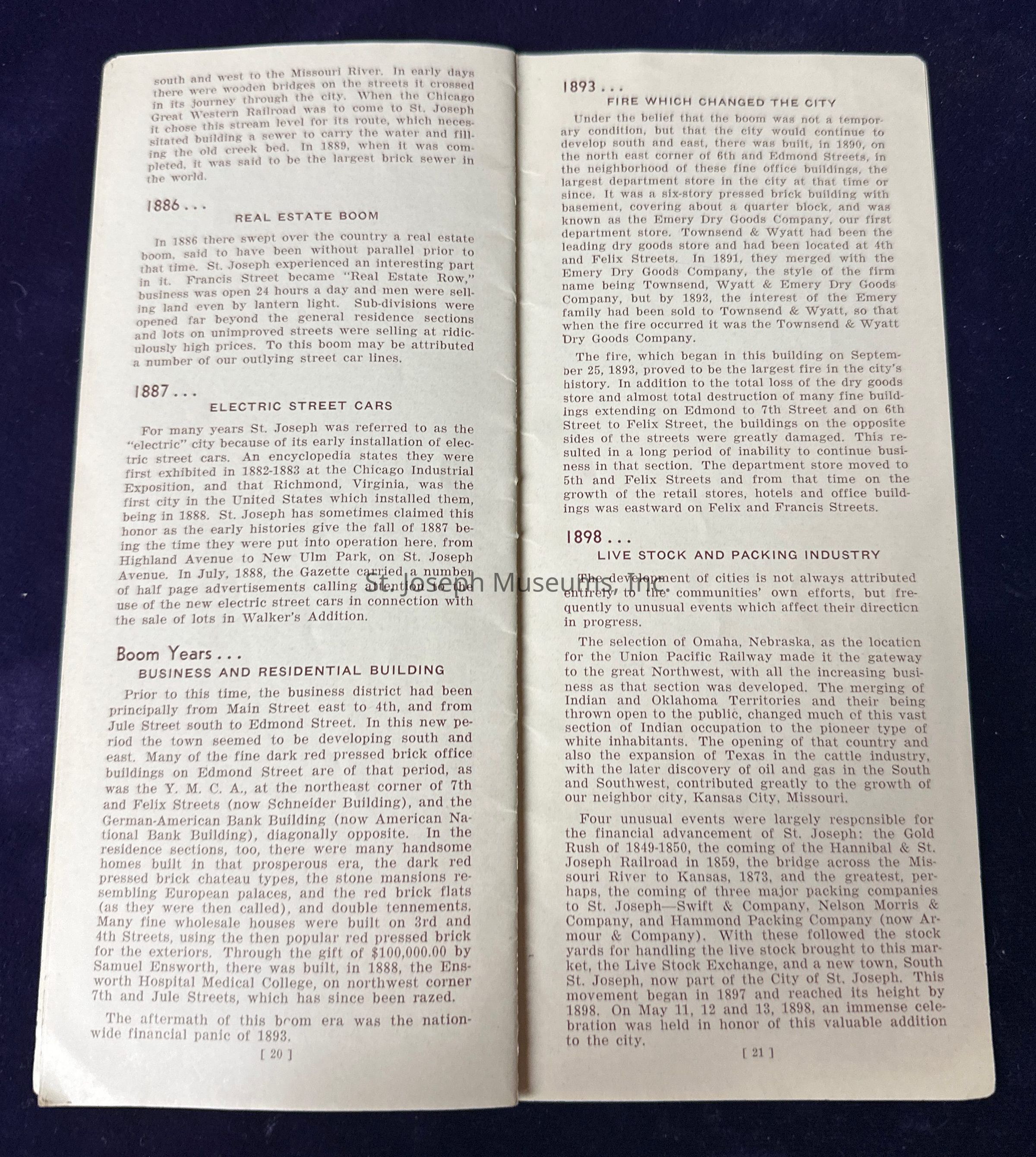 Pamphlet titled “Story of Saint Joseph Missouri Before 1900.”