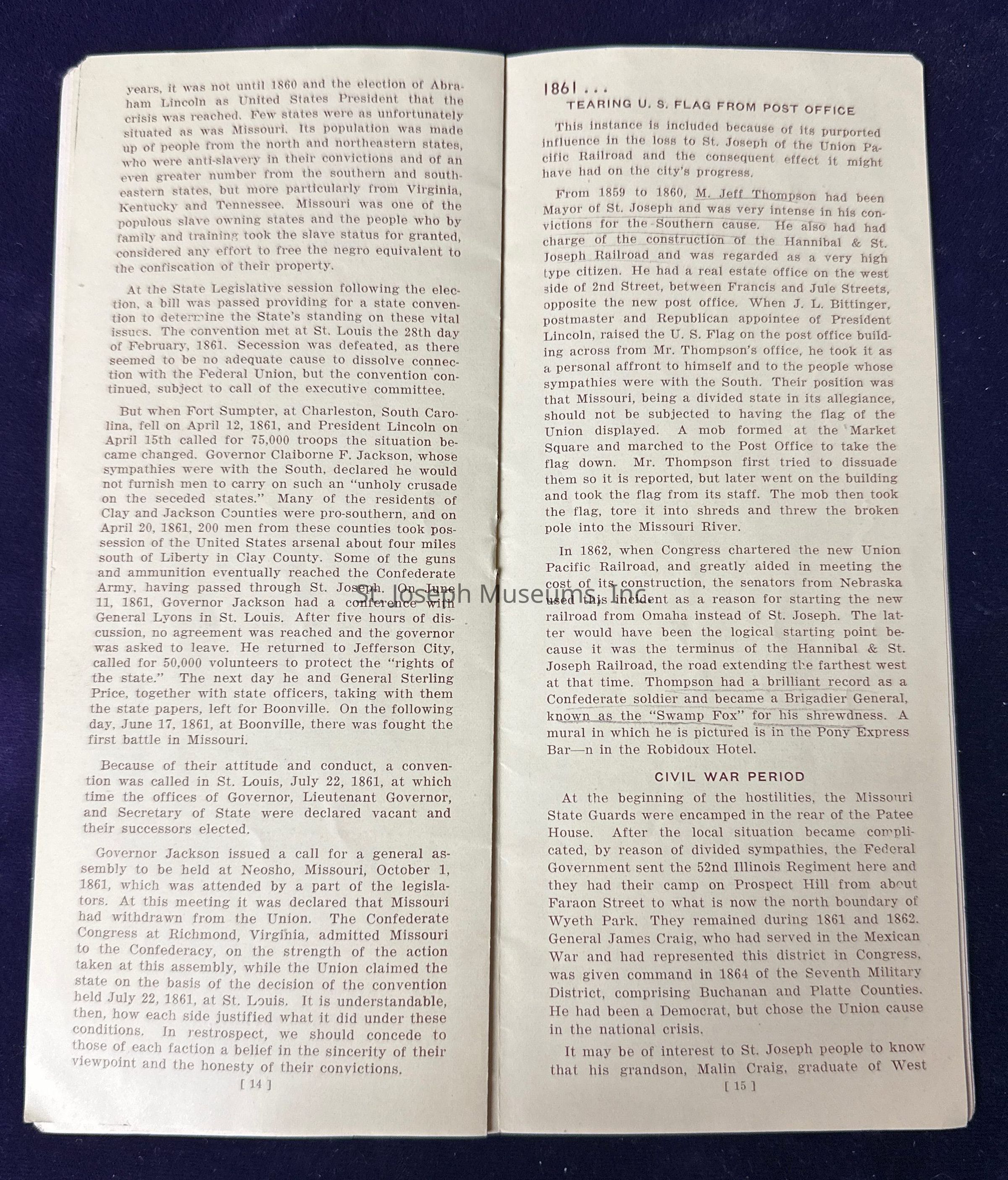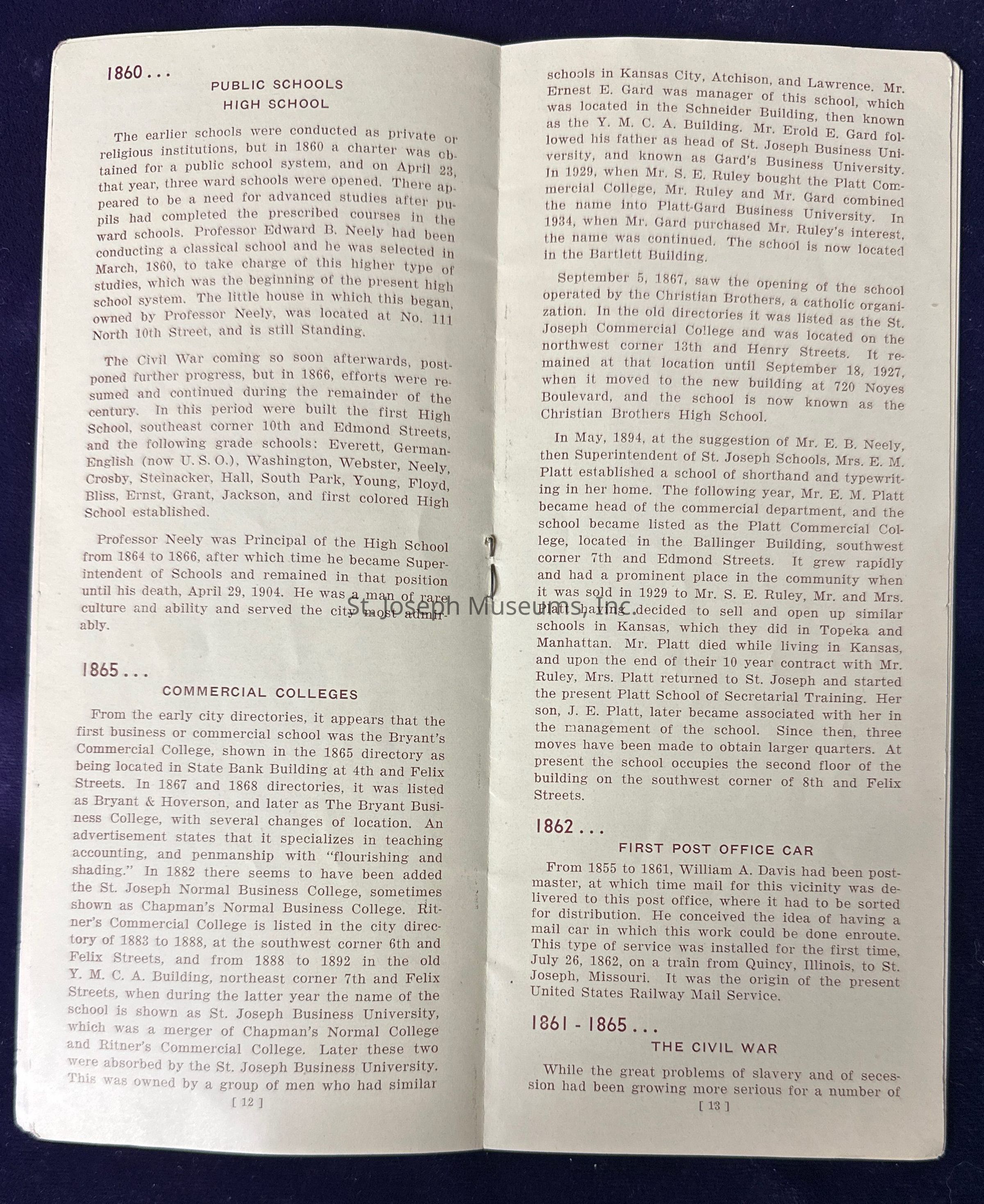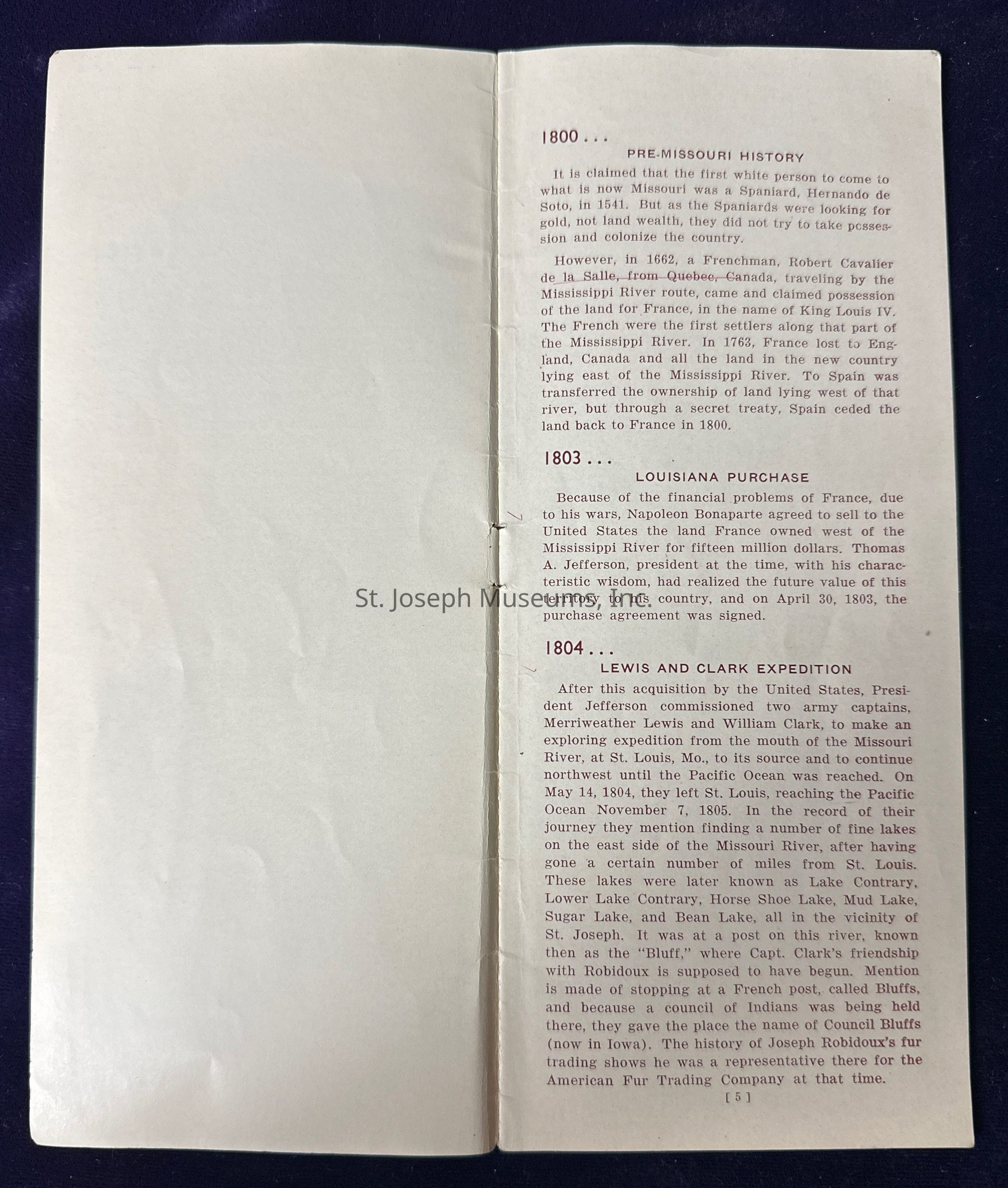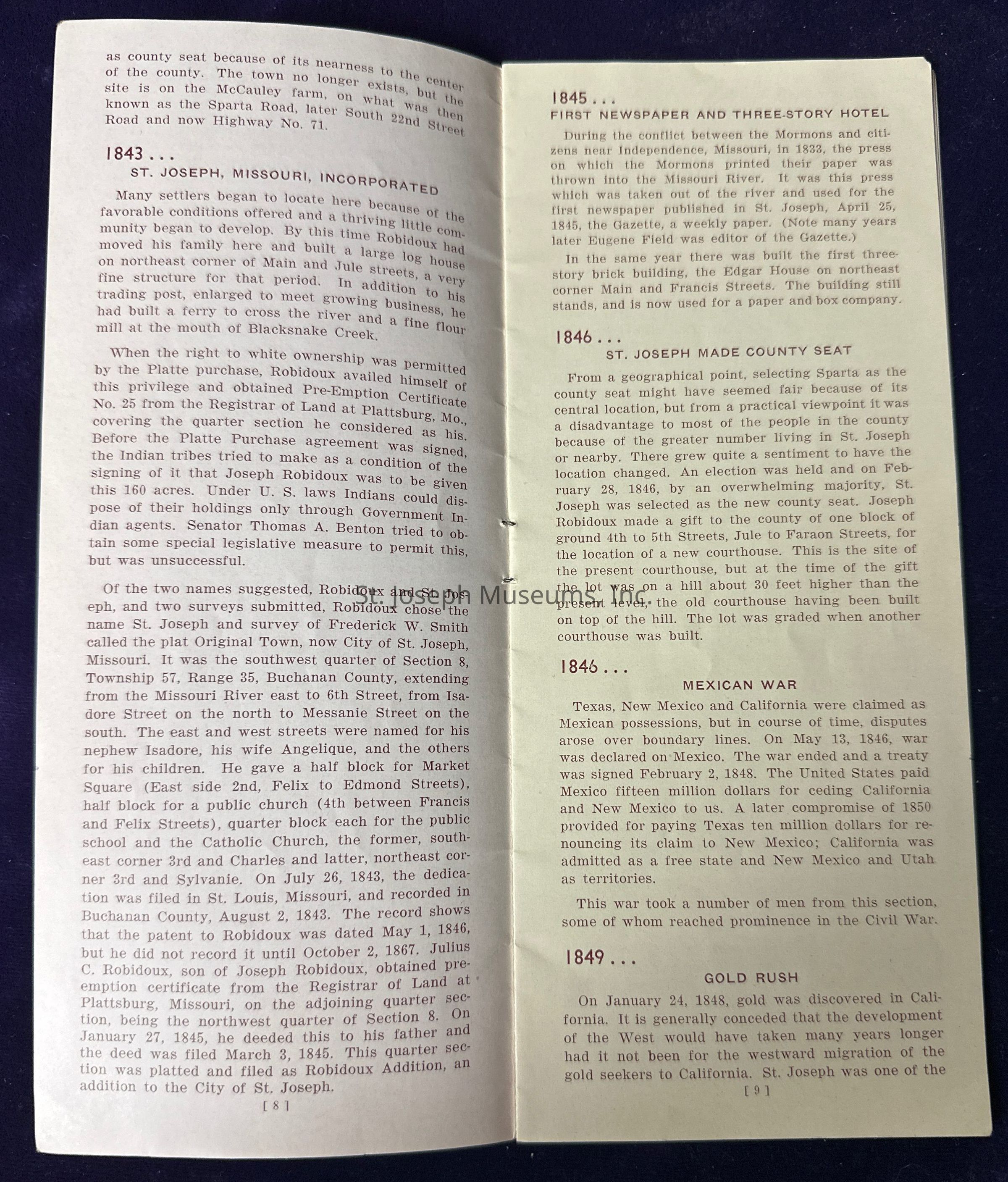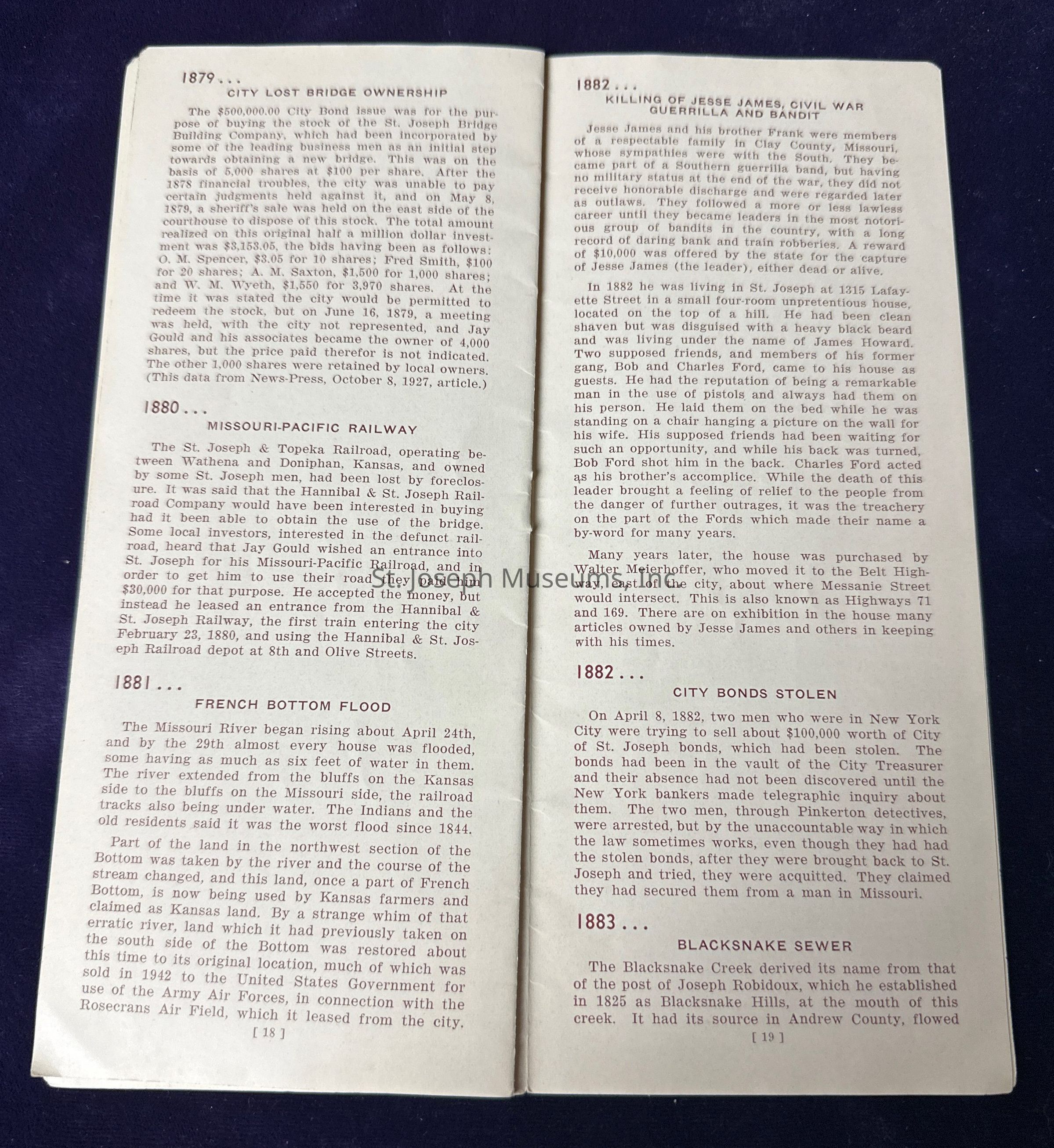 Pamphlet titled “Story of Saint Joseph Missouri Before 1900.”