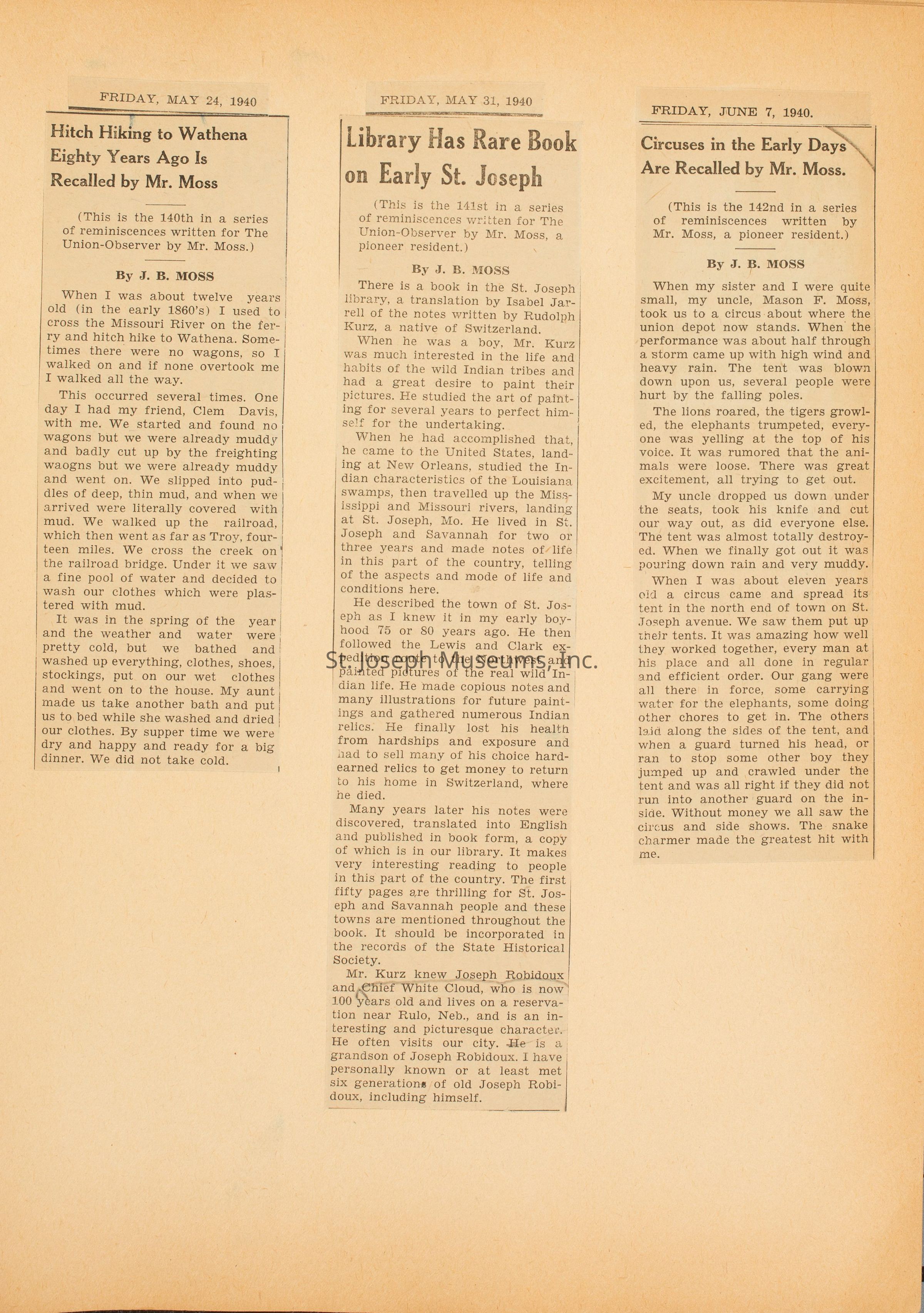 Newspaper Articles by J.B. Moss