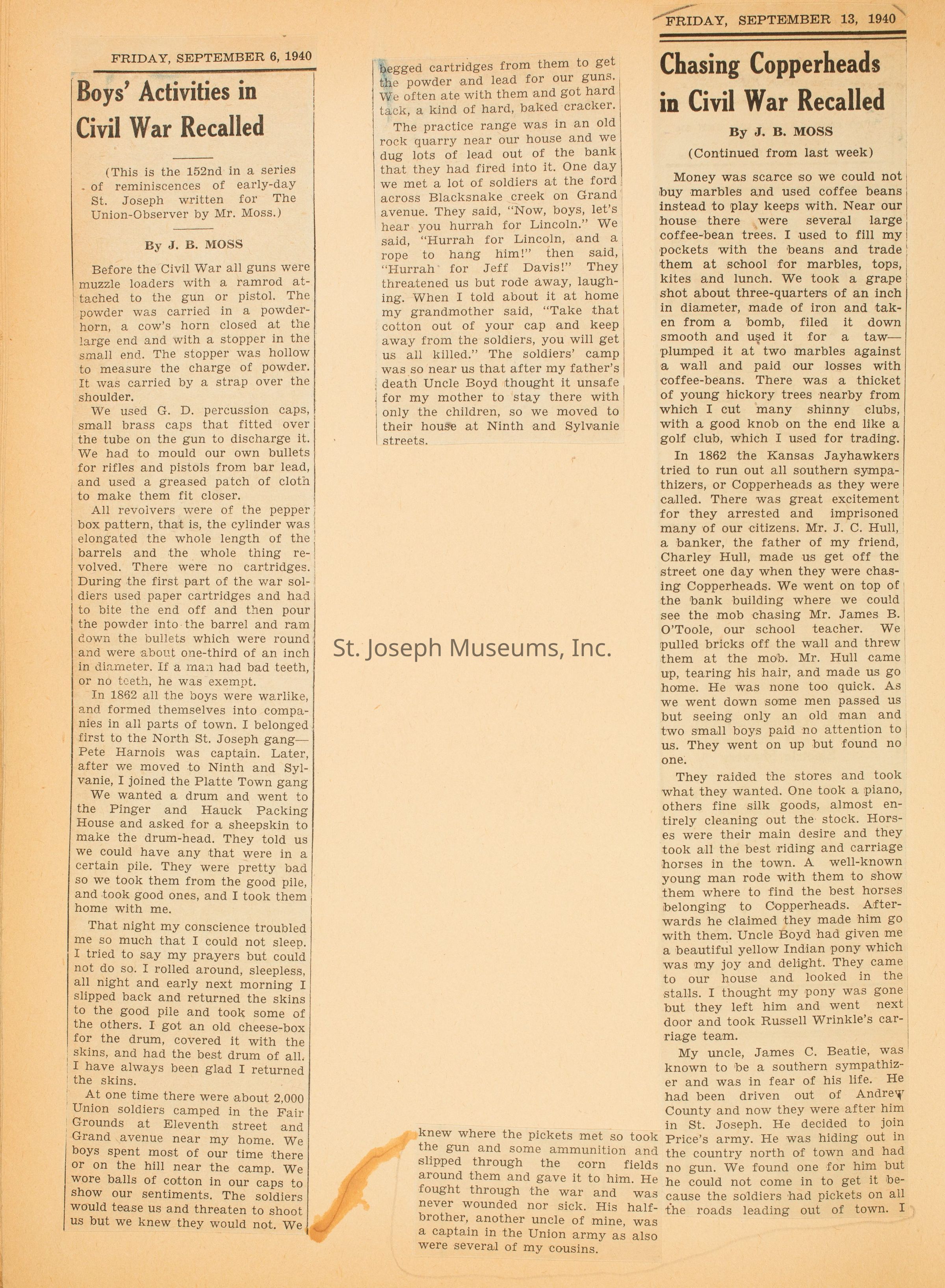 Newspaper Articles by J.B. Moss