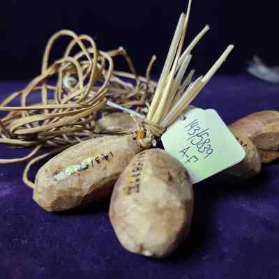 BOLA WITH BONE WEIGHTS USED FOR HUNTING PTARMIGANS/HIDE THONGS
