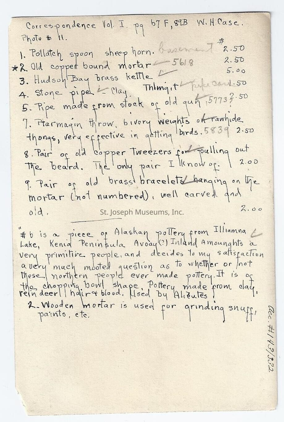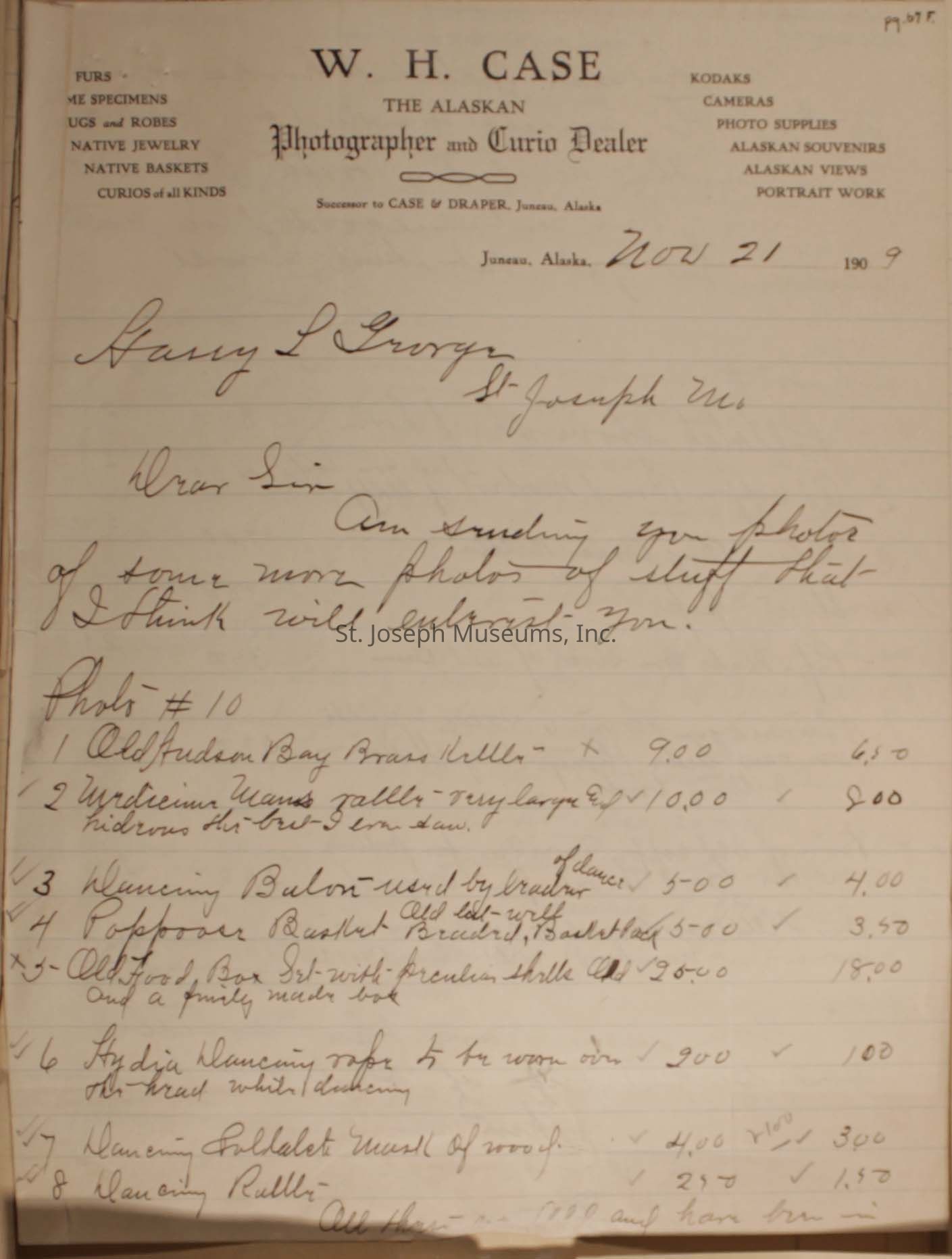 W H CASE PHOTO #11, ITEM #7, 143/332.1 HLG VOL 1, pg. 67F, 89B INVOICE 11/21/1909
