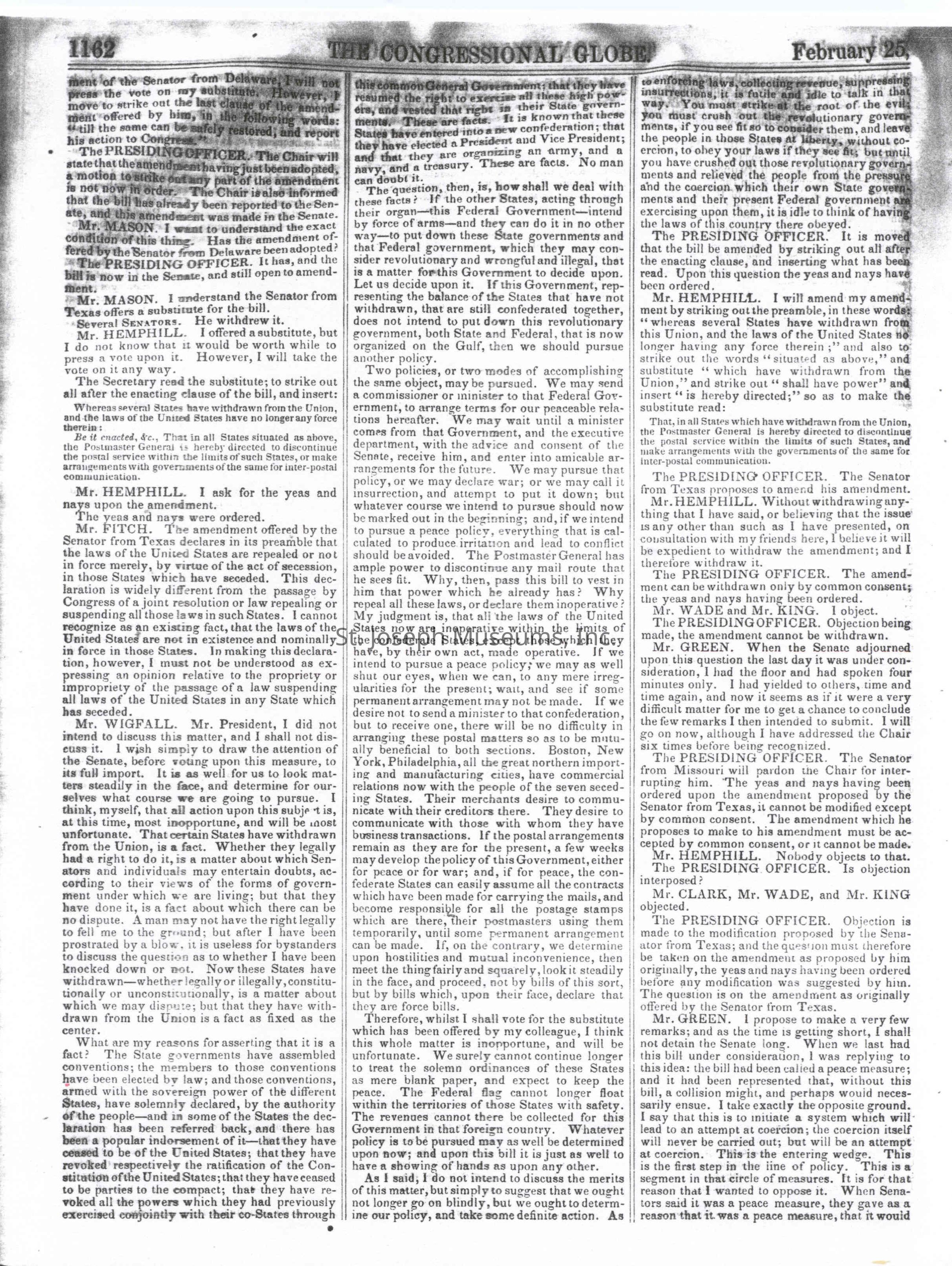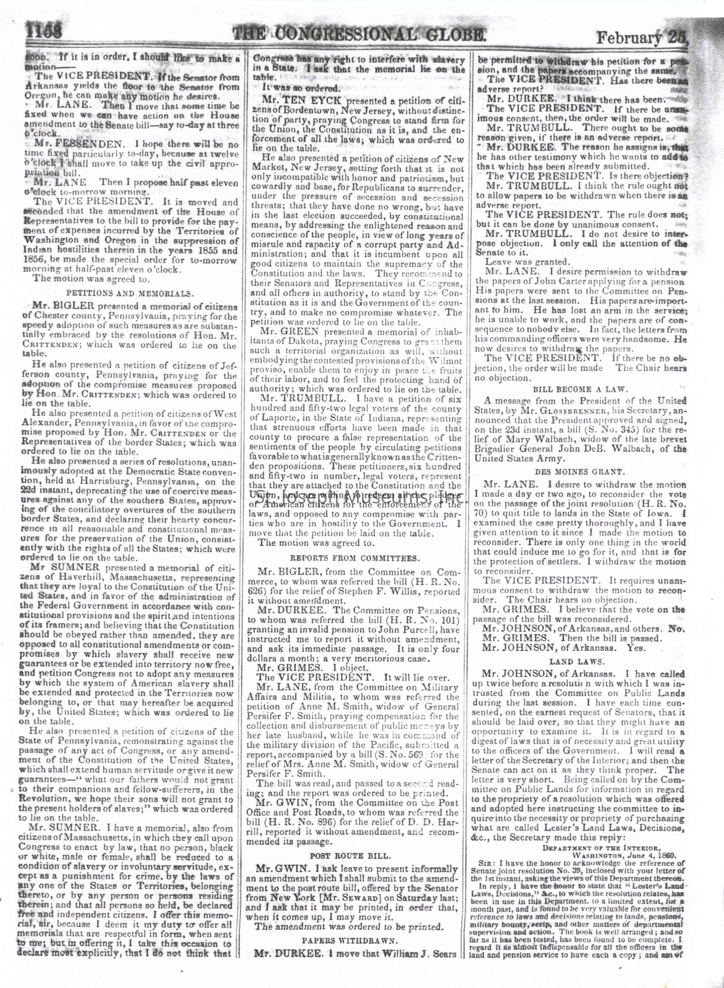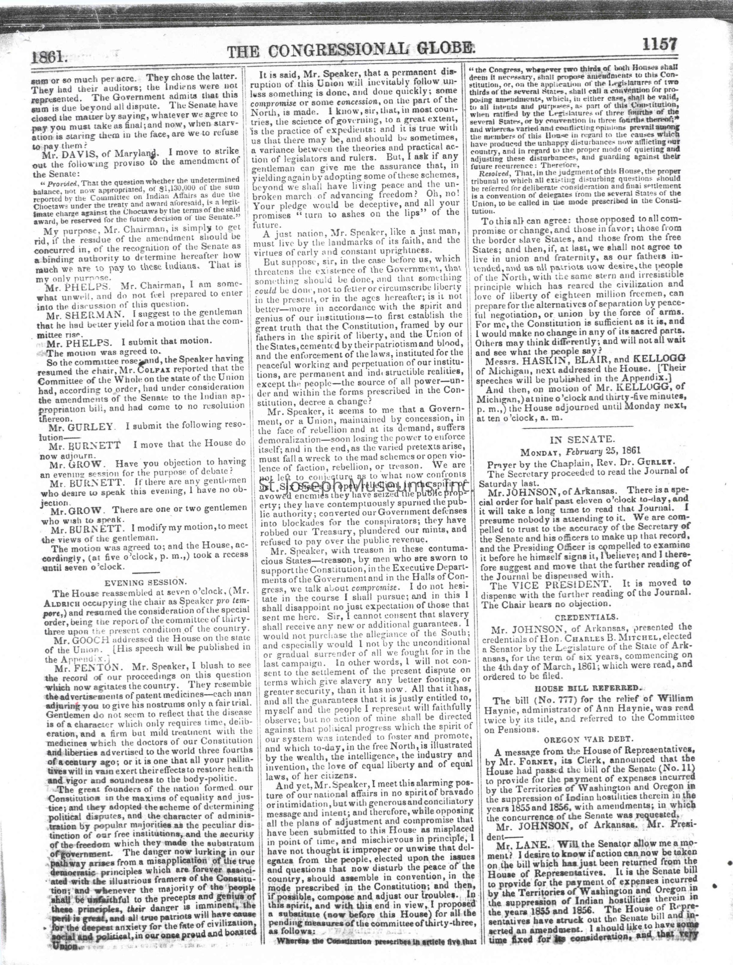 Congressional Globe-Senate 2-25-1861Entry/Object ID