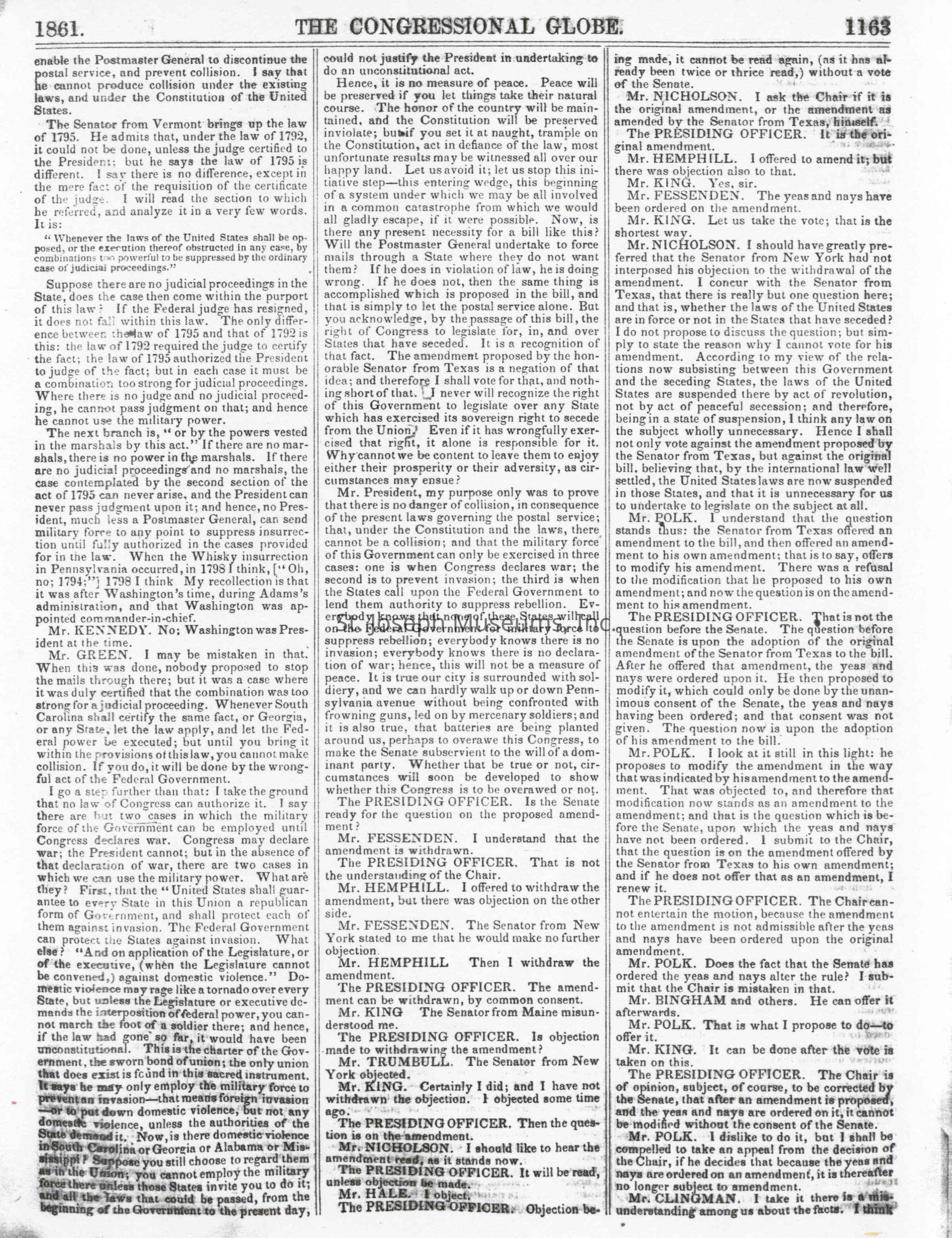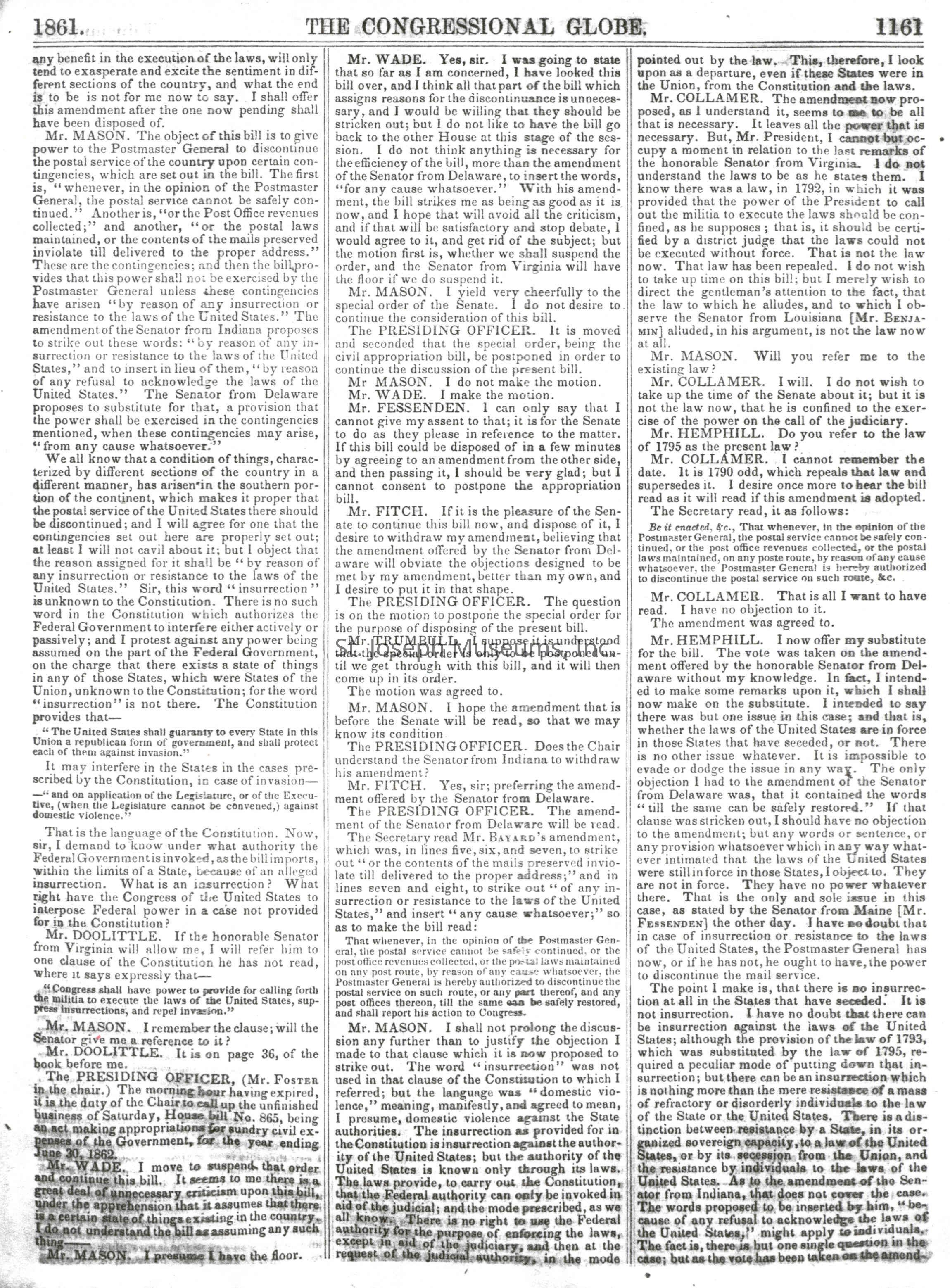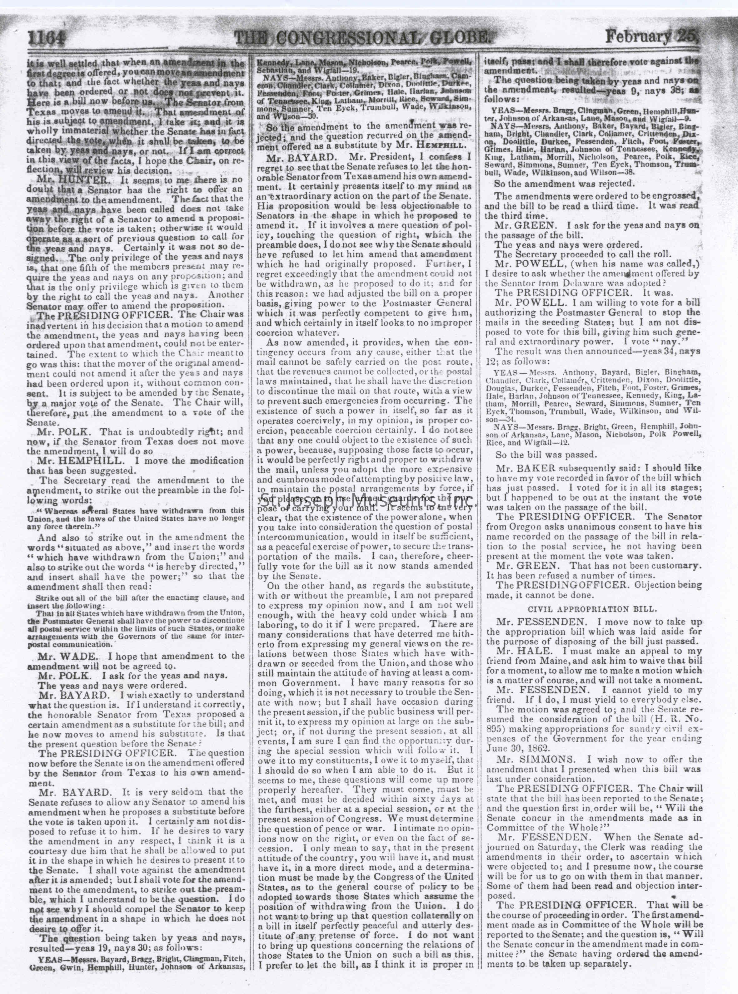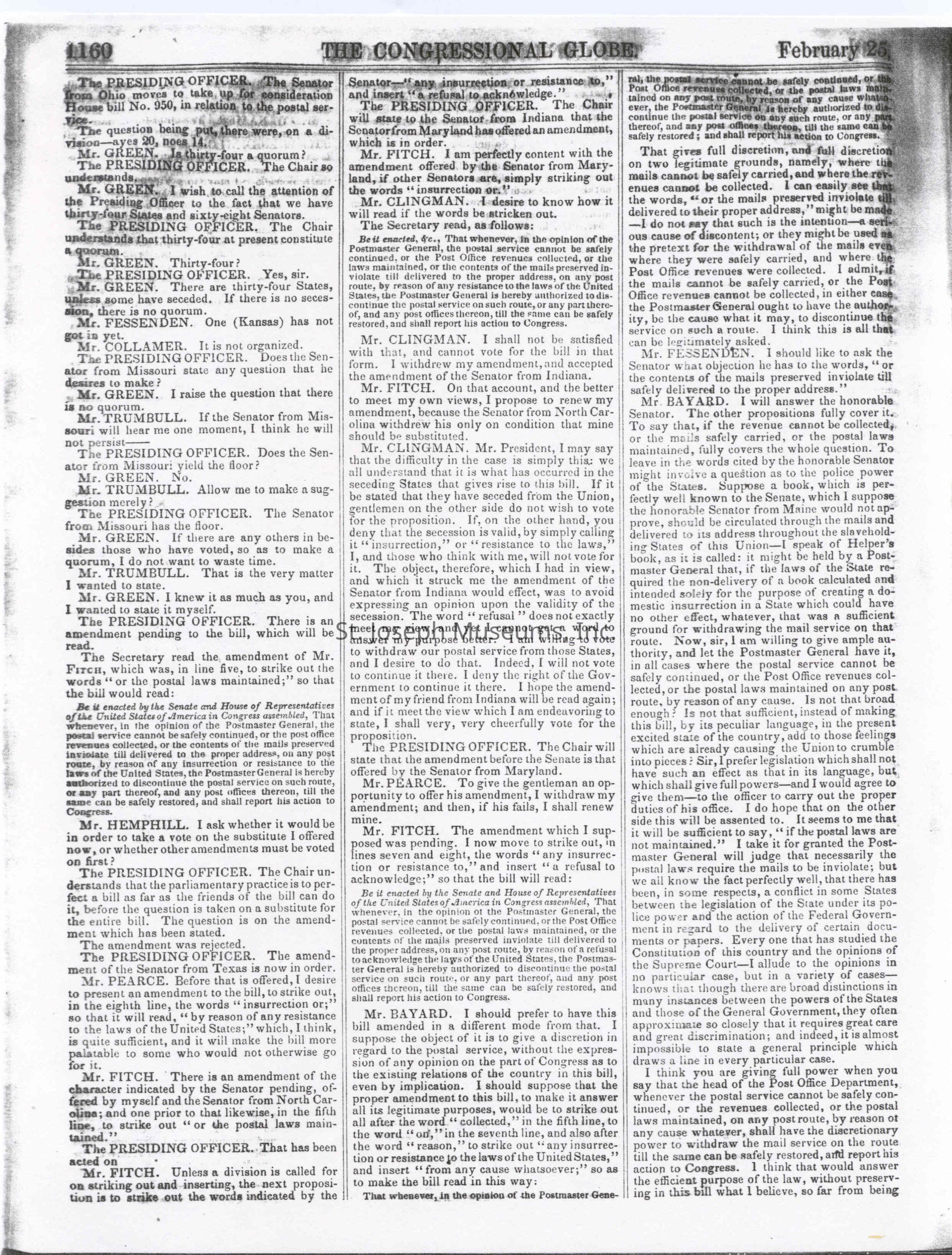 Congressional Globe-Senate 2-25-1861Entry/Object ID