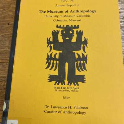 This 1977-78 Annual Report of the Museum of Anthropology of the University of Missouri includes papers submitted by various persons on various related subjects. Among the subjects are: Early Museum Collections; Mud Cloth, from Mali to America; Comments on a San Juan Wedding Jar, with a Historical Summary of San Juan Pottery; Sacred Paper Figurines of the Otomi Indians of the Sierra de Puebla, Mexico; and Cholula Polychrome in Mesoamerica. Also included is a special report: Preliminary Results of the Mi Cielo Project. 120/Softbound/Illustrations/Photographs