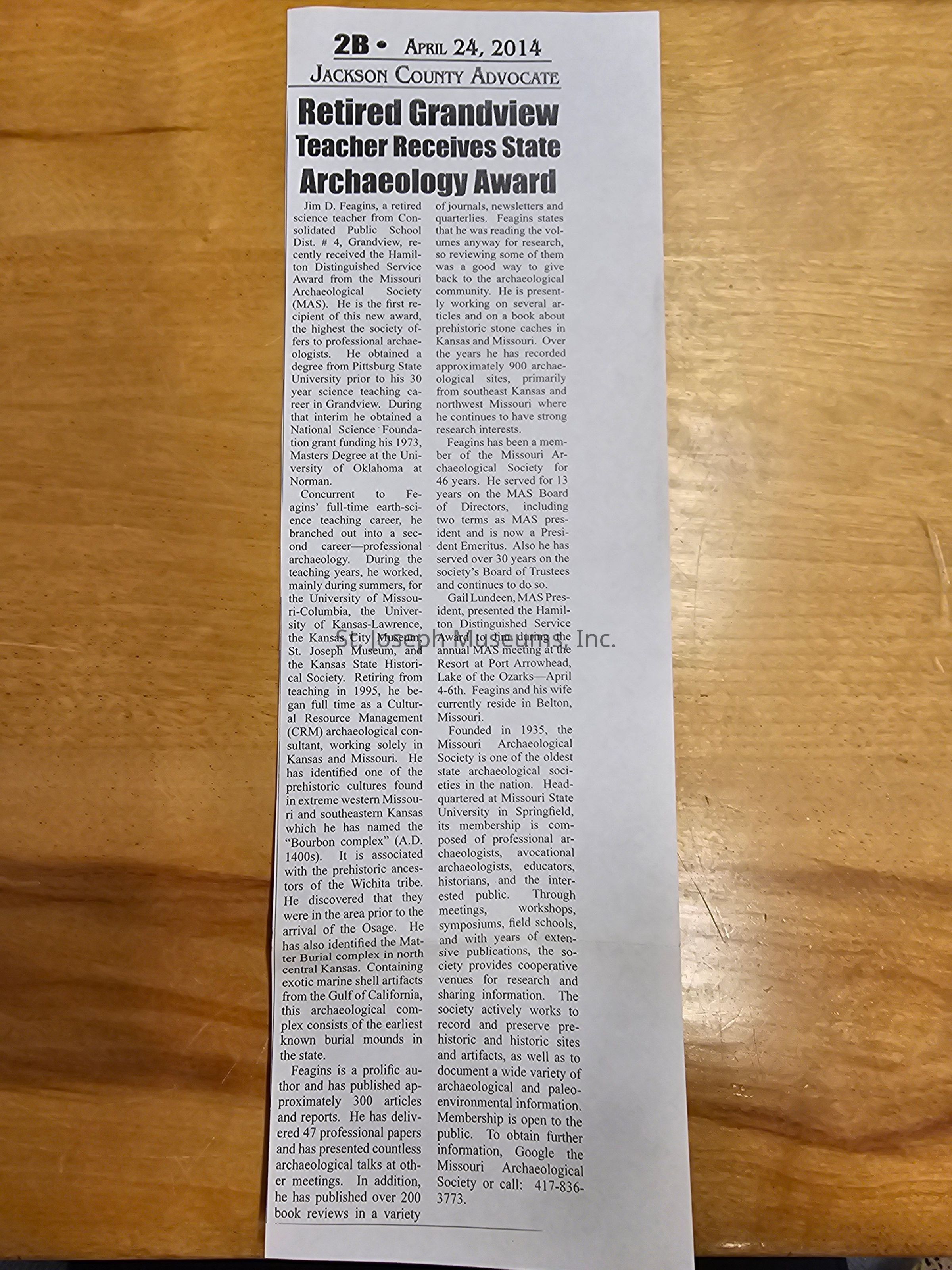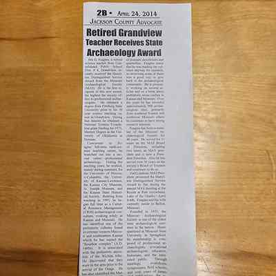 -Jackson County Advocate: "Retired Grandview Teacher Received State Archaeology Award". April 24, 2014