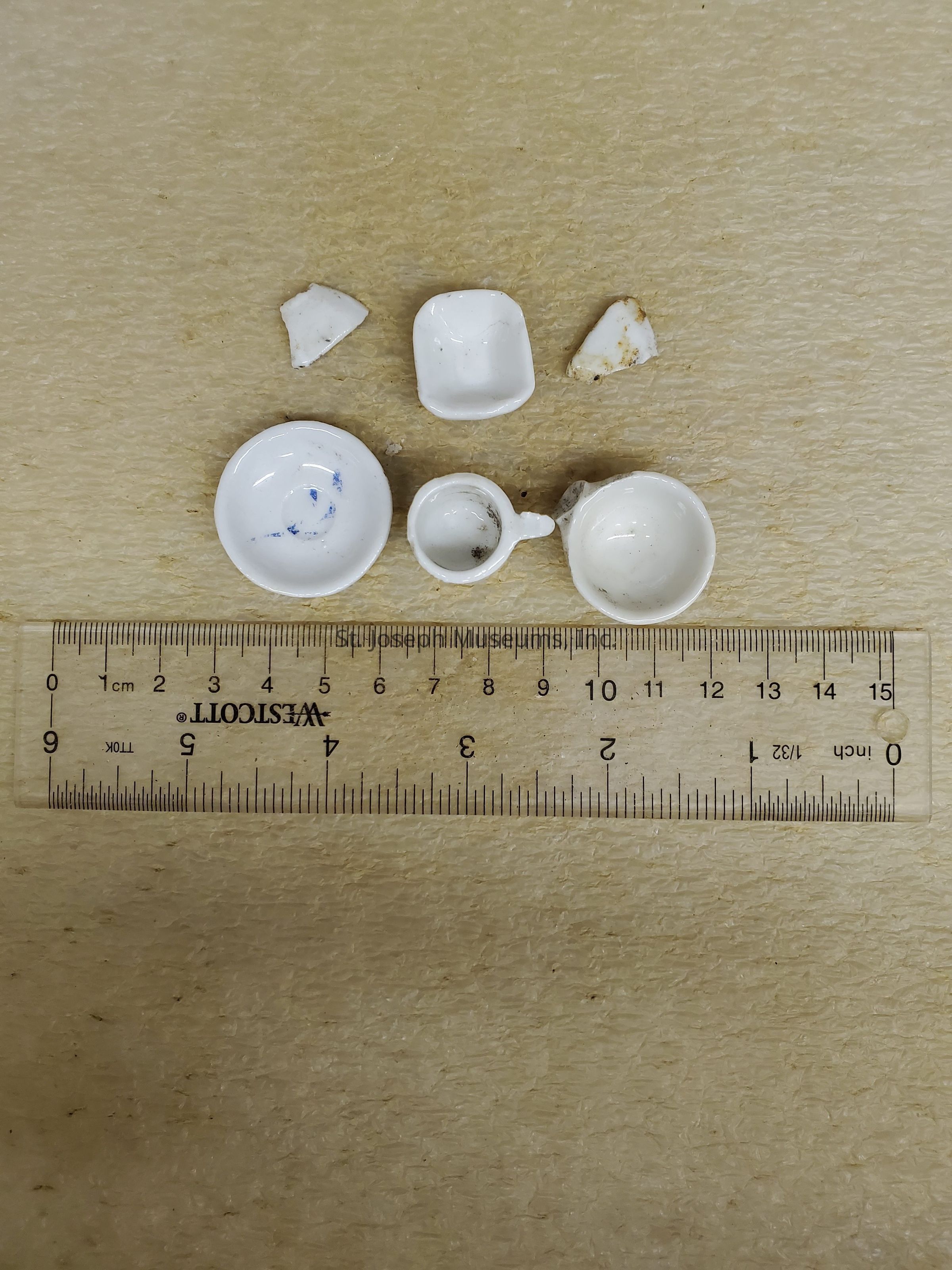 Bag of ceramic white children's tea set pieces