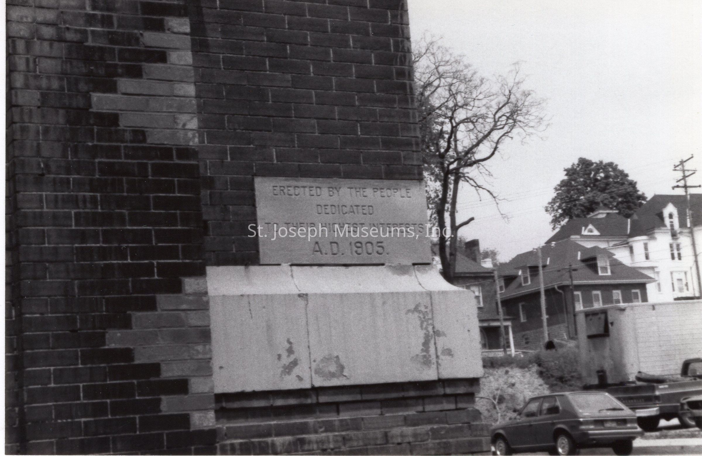 A & B = Cornerstone marker, "Erected by the People Dedicated to their Highest Interests, A.D. 1905."