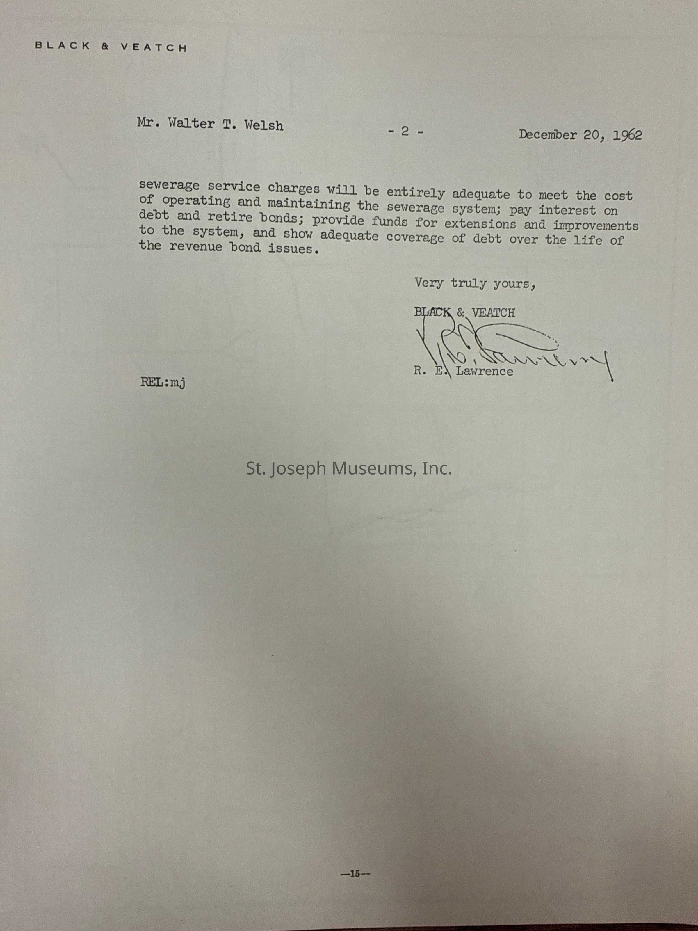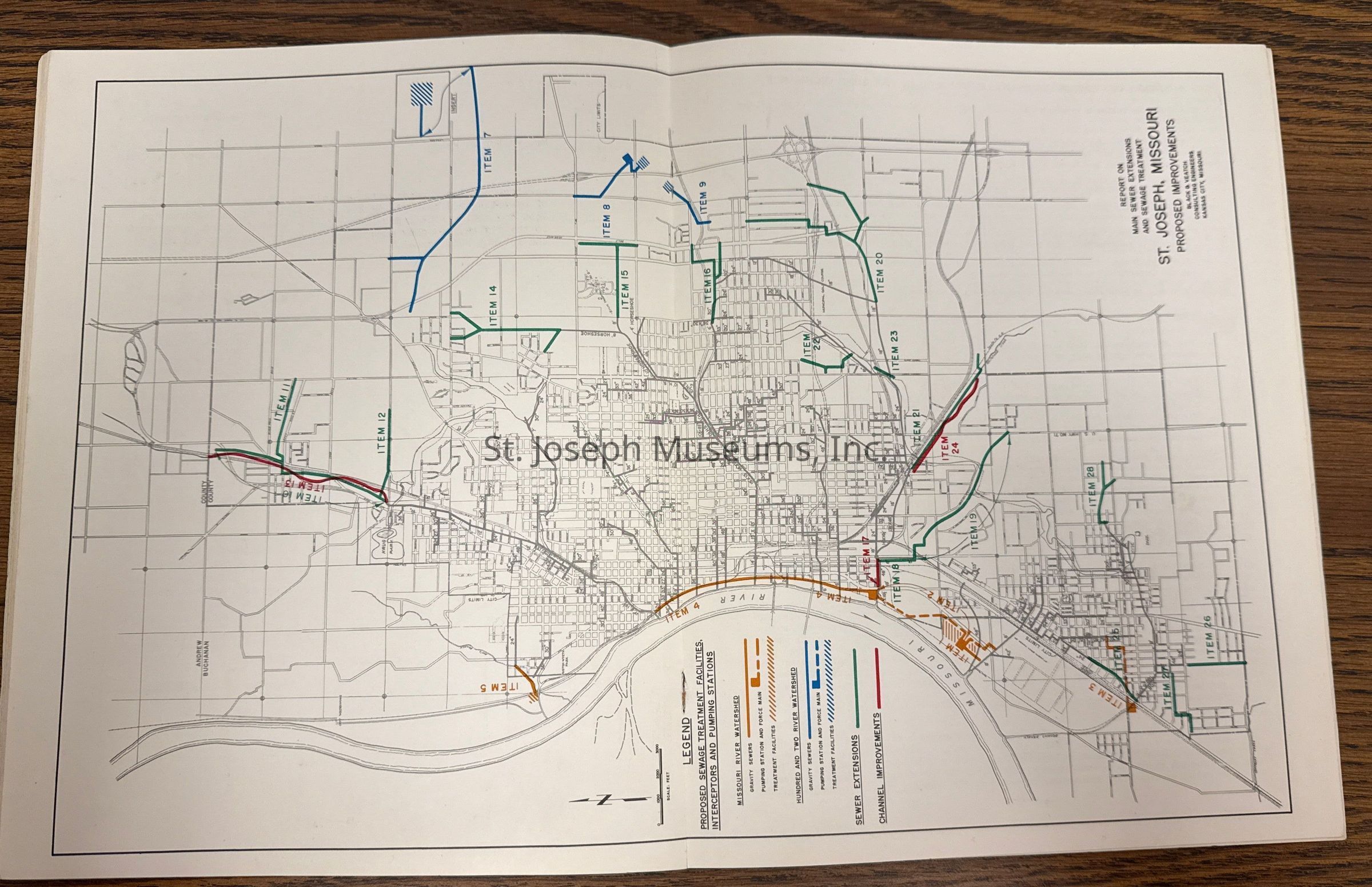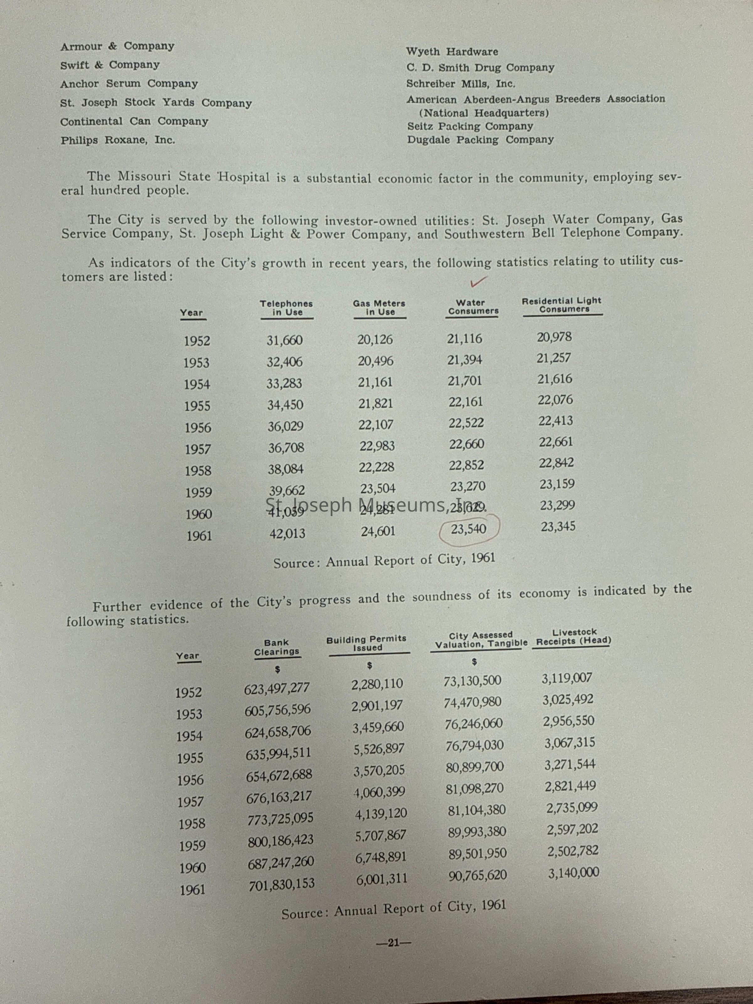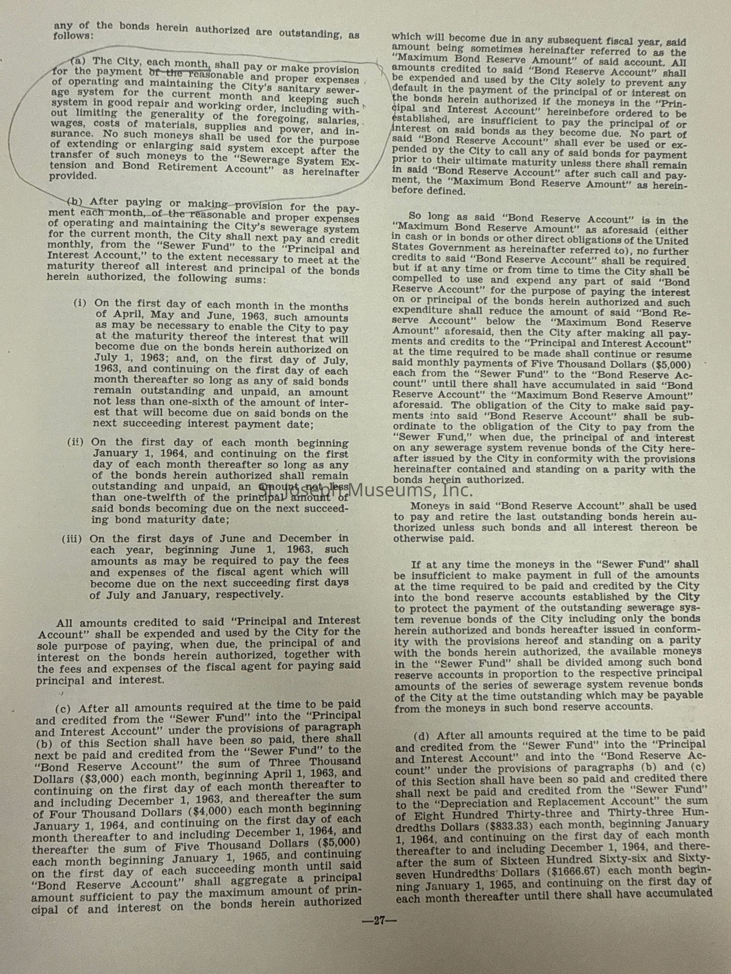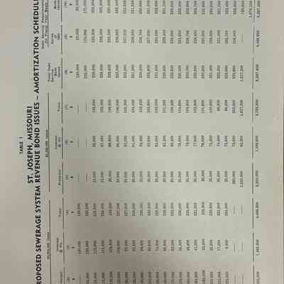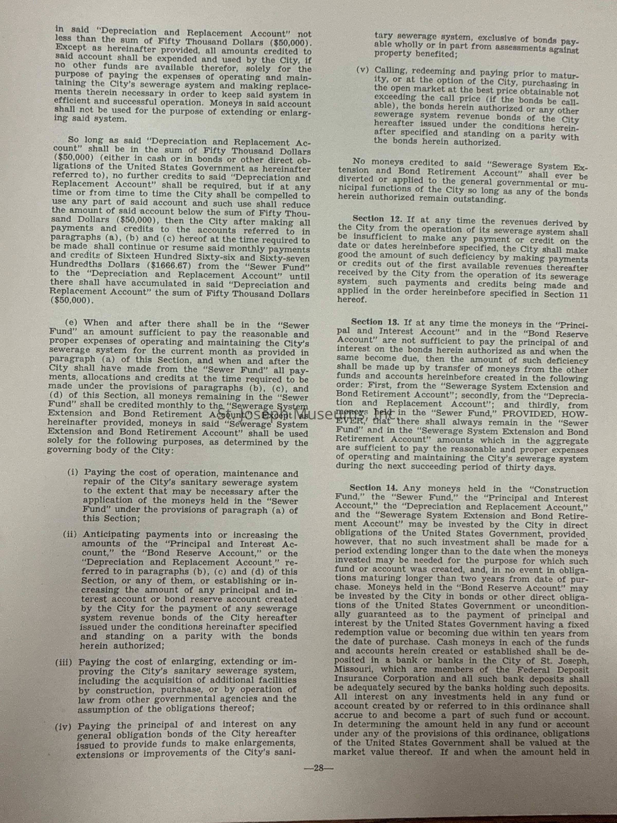 City of St. Joseph, Notice of Sale of Sewage Bonds, 1963. Booklet "Notice of Sale and Official Statement Relating to $3,000,000 City of St. Joseph, Missouri Sewage System Revenue Bonds, Series of 1963" Bids opened January 15, 1963. 31 pages. Handwritten notes throughout.