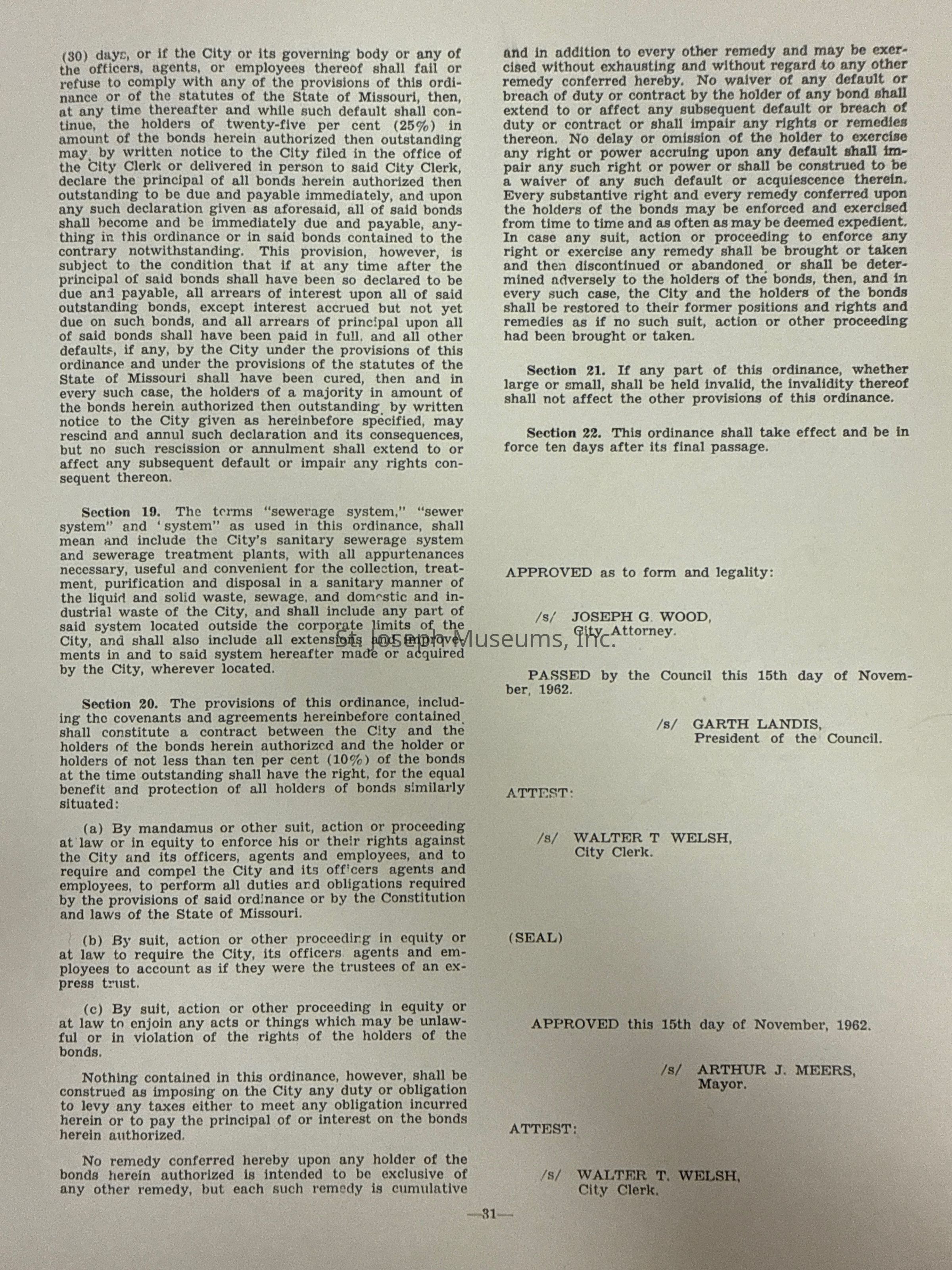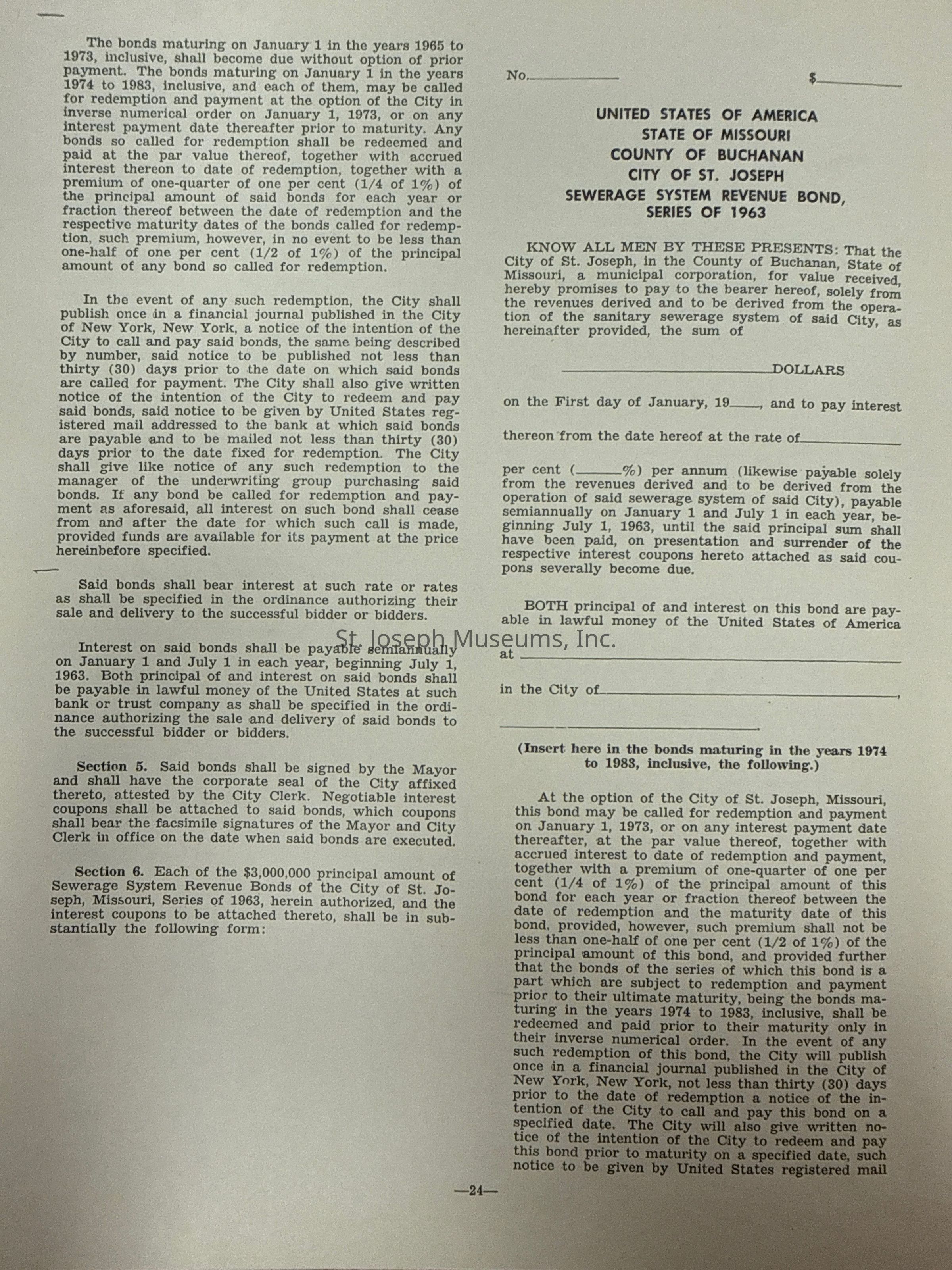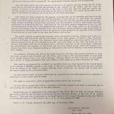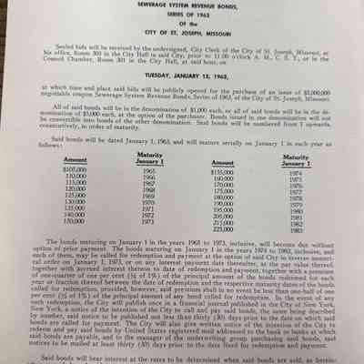 City of St. Joseph, Notice of Sale of Sewage Bonds, 1963Entry/Object ID